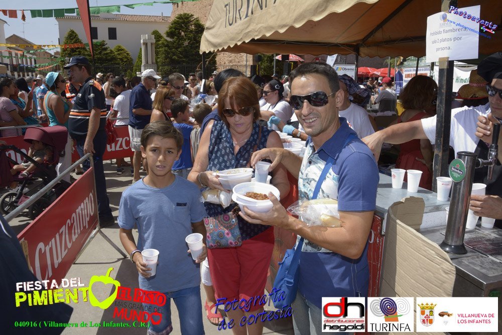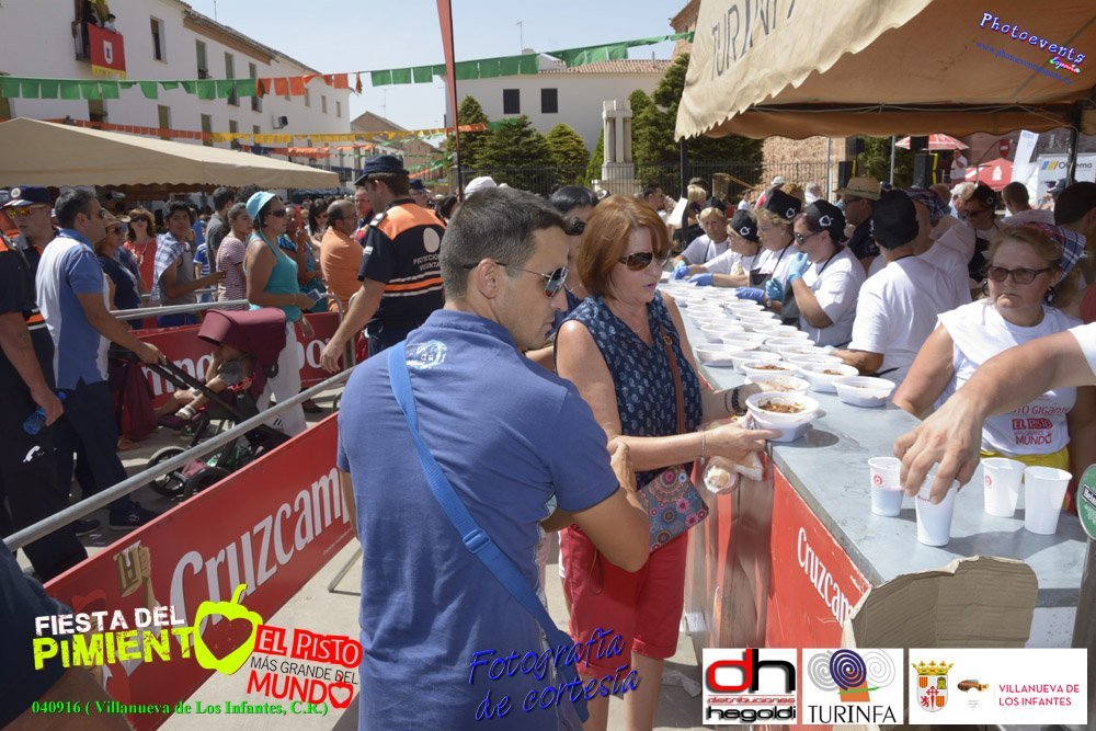 Fotografías realizadas durante el reparto a las personas (que desde primera hora llegaban a la plaza) del pisto mas grande del mundo, el cual ha sido certificado con el RECORD GUINNESS como el pisto mas grande del mundo, con un peso total de 1.254 kilos, superando de esta forma con creces los 563 kilos del popular plato francés, el "ratatouille", que ostentaba Disney. El pisto gigante se realizo el pasado día 4 de Septiembre y estaba enmarcado dentro de las fiestas del pimiento que anualmente a comienzos de Septiembre se celebra en la localidad de Vva. de los Infantes, (Ciudad Real-España).