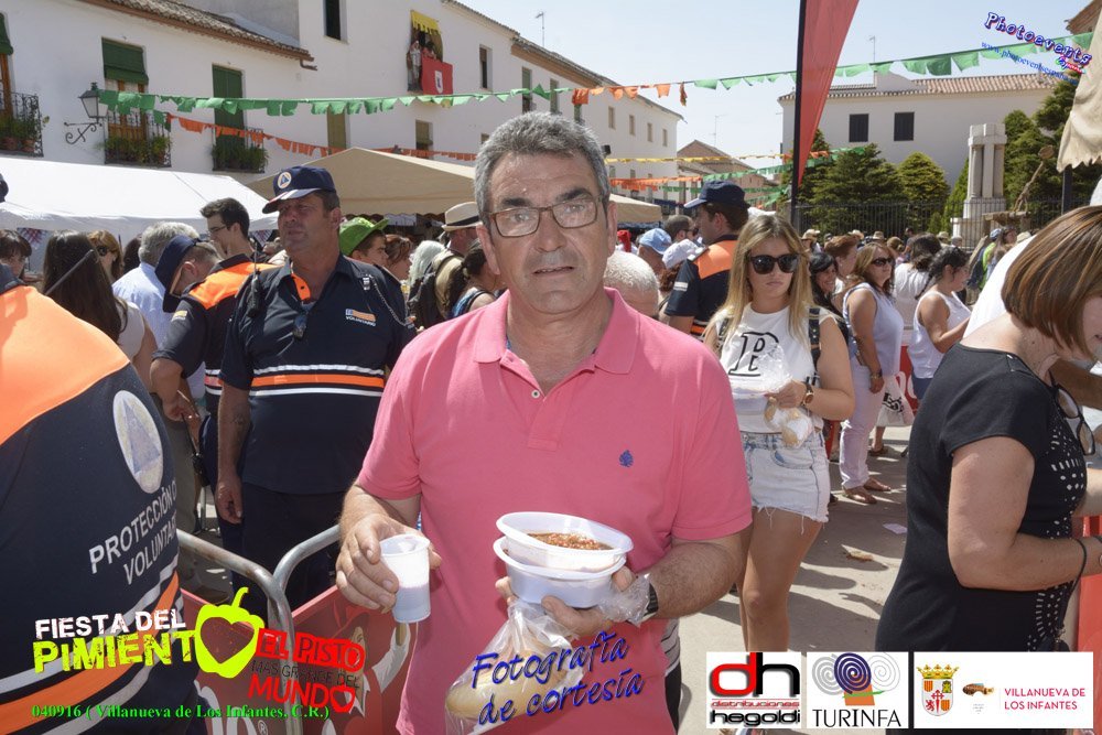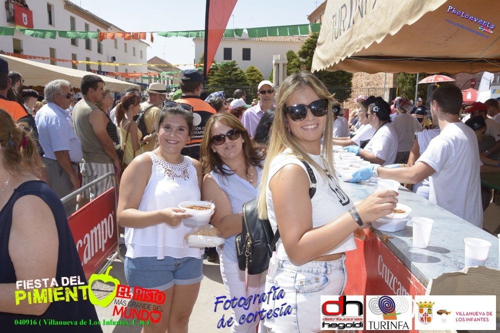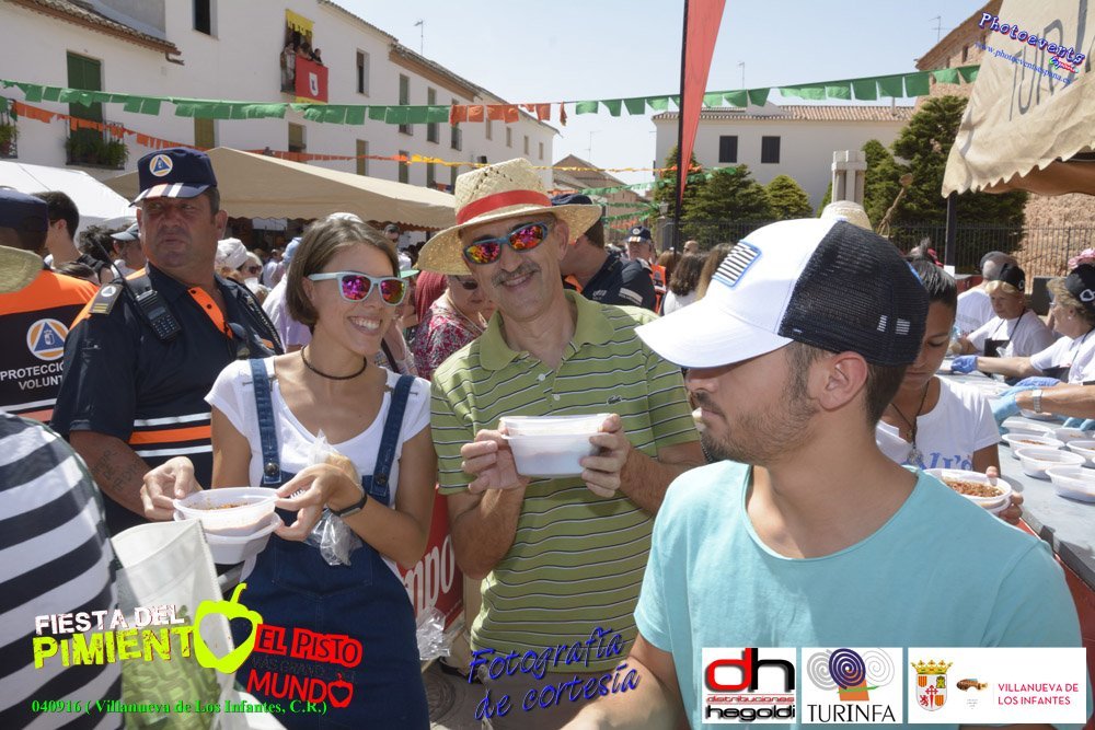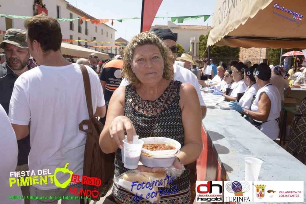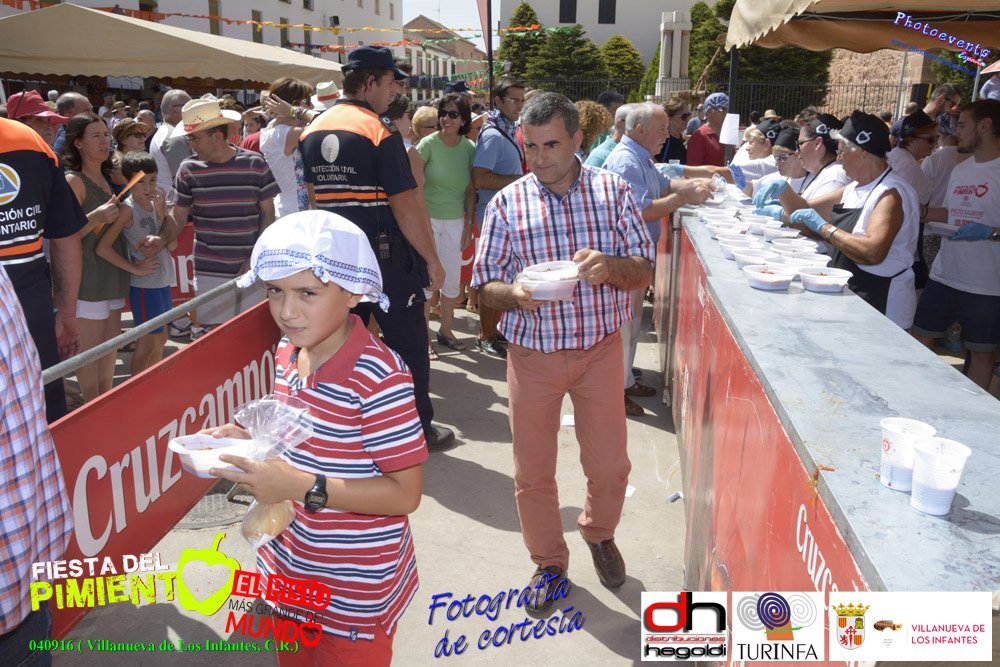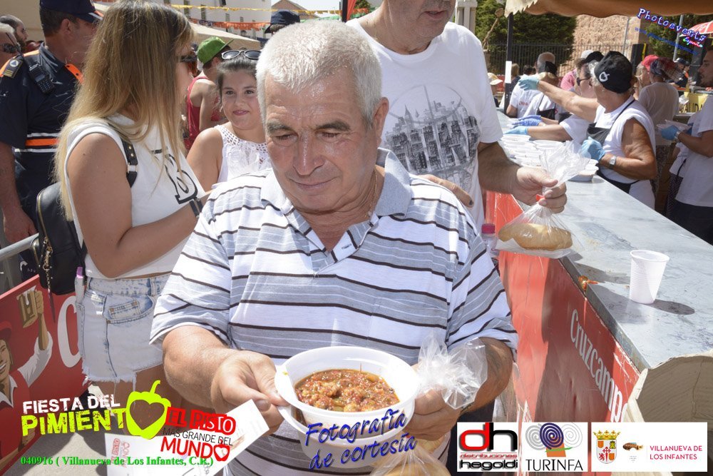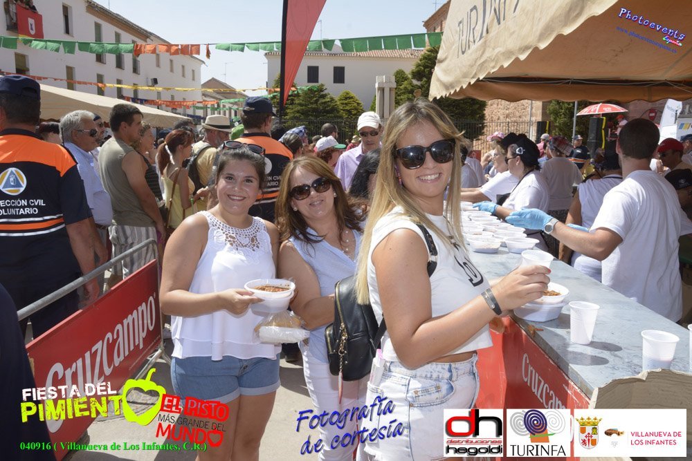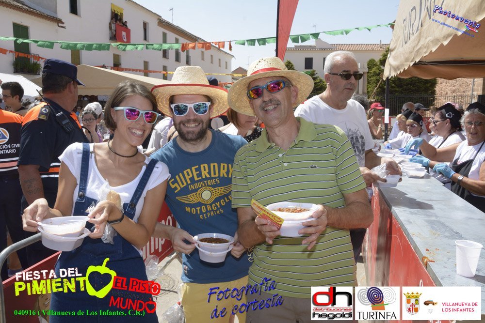 Fotografías realizadas durante el reparto a las personas (que desde primera hora llegaban a la plaza) del pisto mas grande del mundo, el cual ha sido certificado con el RECORD GUINNESS como el pisto mas grande del mundo, con un peso total de 1.254 kilos, superando de esta forma con creces los 563 kilos del popular plato francés, el "ratatouille", que ostentaba Disney. El pisto gigante se realizo el pasado día 4 de Septiembre y estaba enmarcado dentro de las fiestas del pimiento que anualmente a comienzos de Septiembre se celebra en la localidad de Vva. de los Infantes, (Ciudad Real-España).