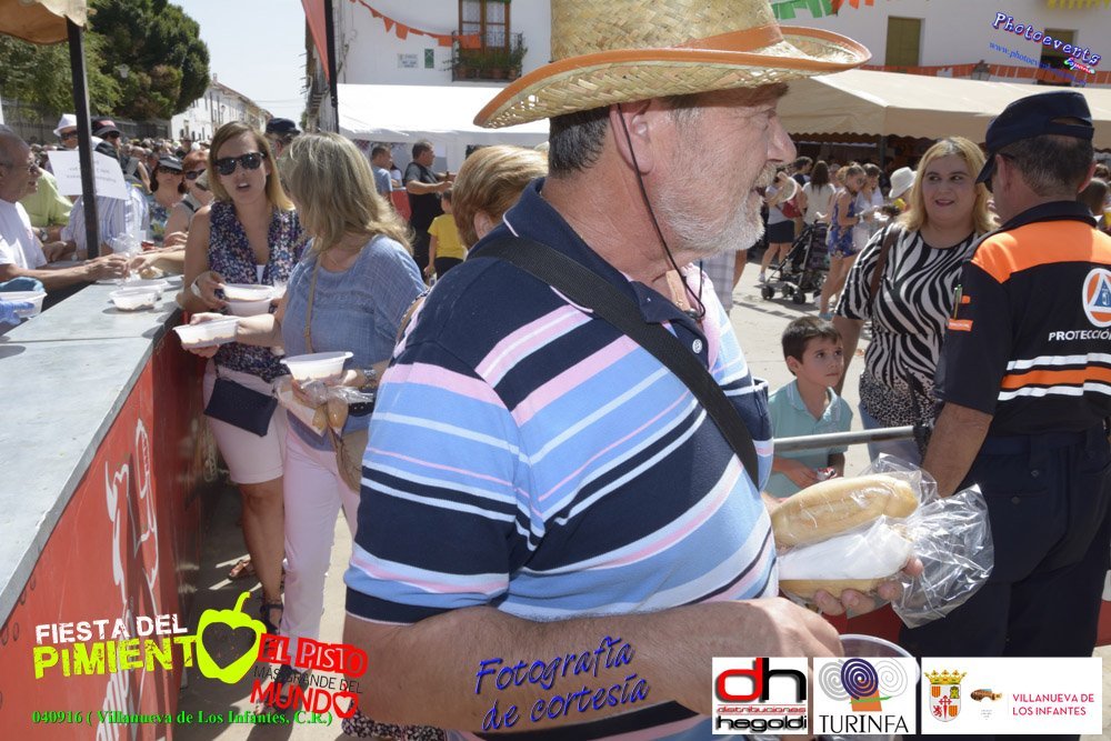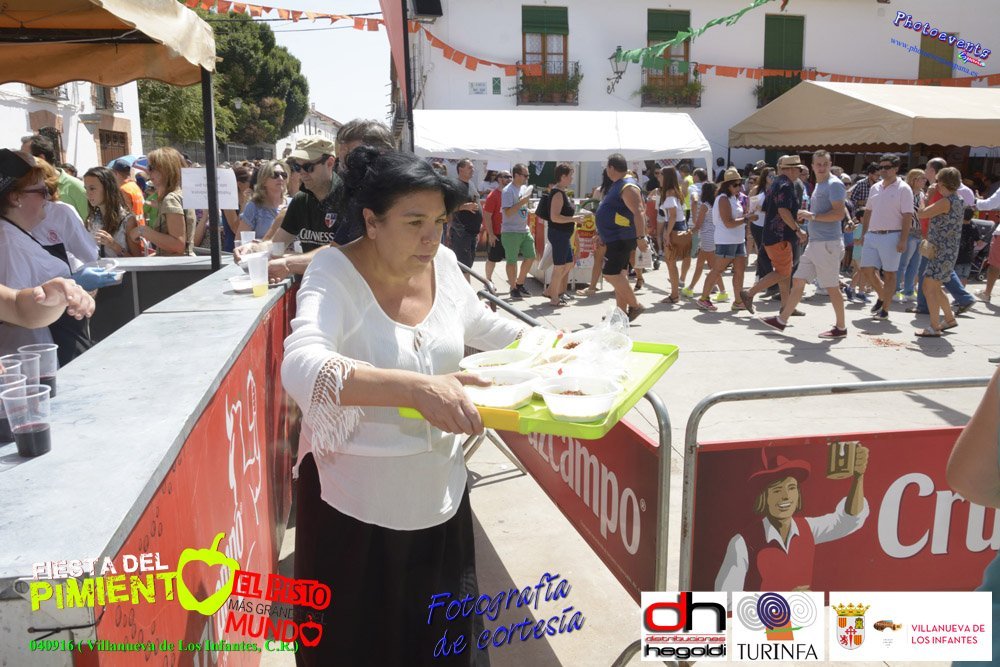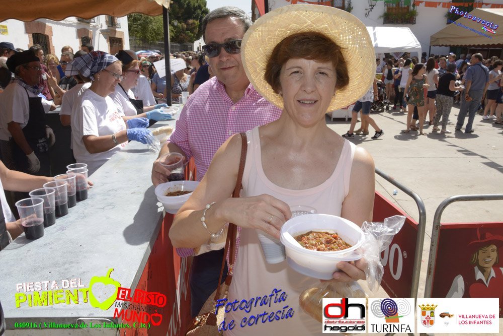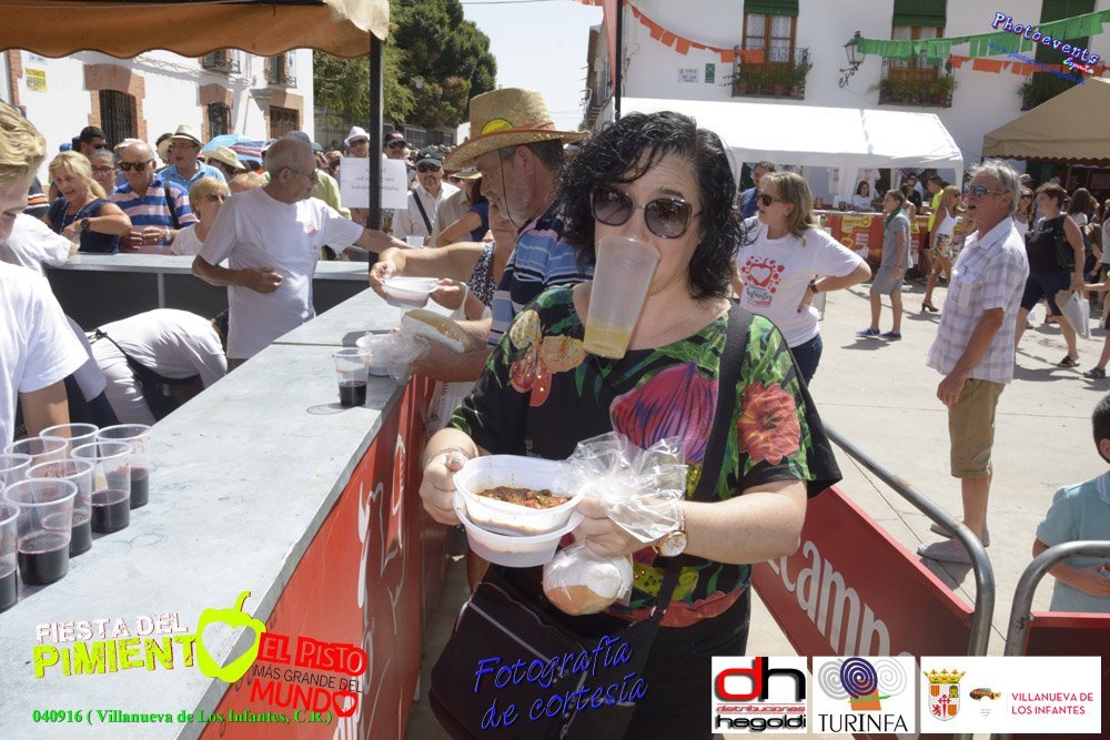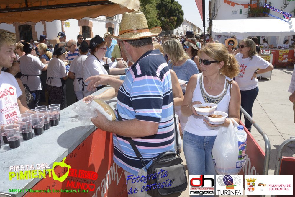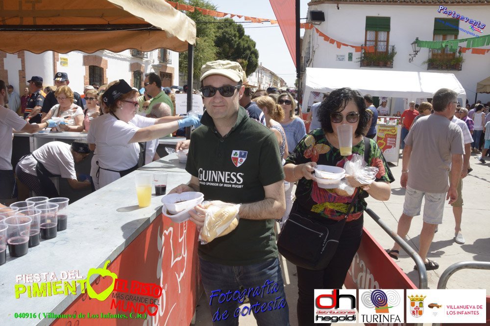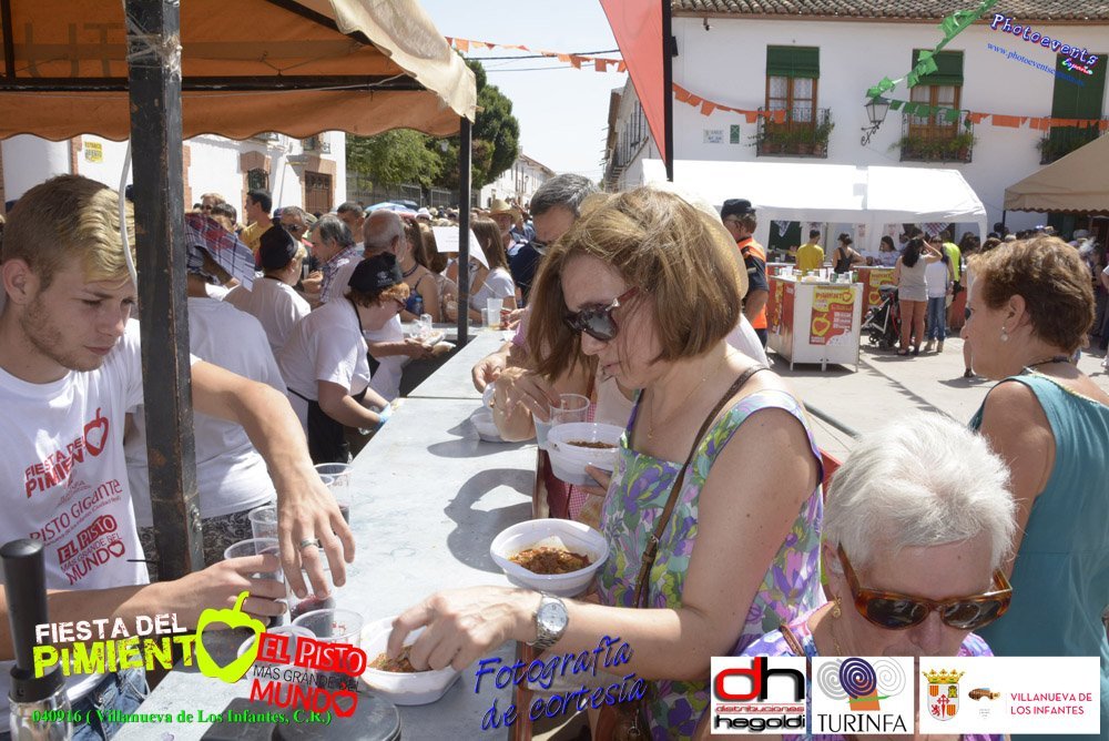 Fotografías realizadas durante el reparto a las personas (que desde primera hora llegaban a la plaza) del pisto mas grande del mundo, el cual ha sido certificado con el RECORD GUINNESS como el pisto mas grande del mundo, con un peso total de 1.254 kilos, superando de esta forma con creces los 563 kilos del popular plato francés, el "ratatouille", que ostentaba Disney. El pisto gigante se realizo el pasado día 4 de Septiembre y estaba enmarcado dentro de las fiestas del pimiento que anualmente a comienzos de Septiembre se celebra en la localidad de Vva. de los Infantes, (Ciudad Real-España).