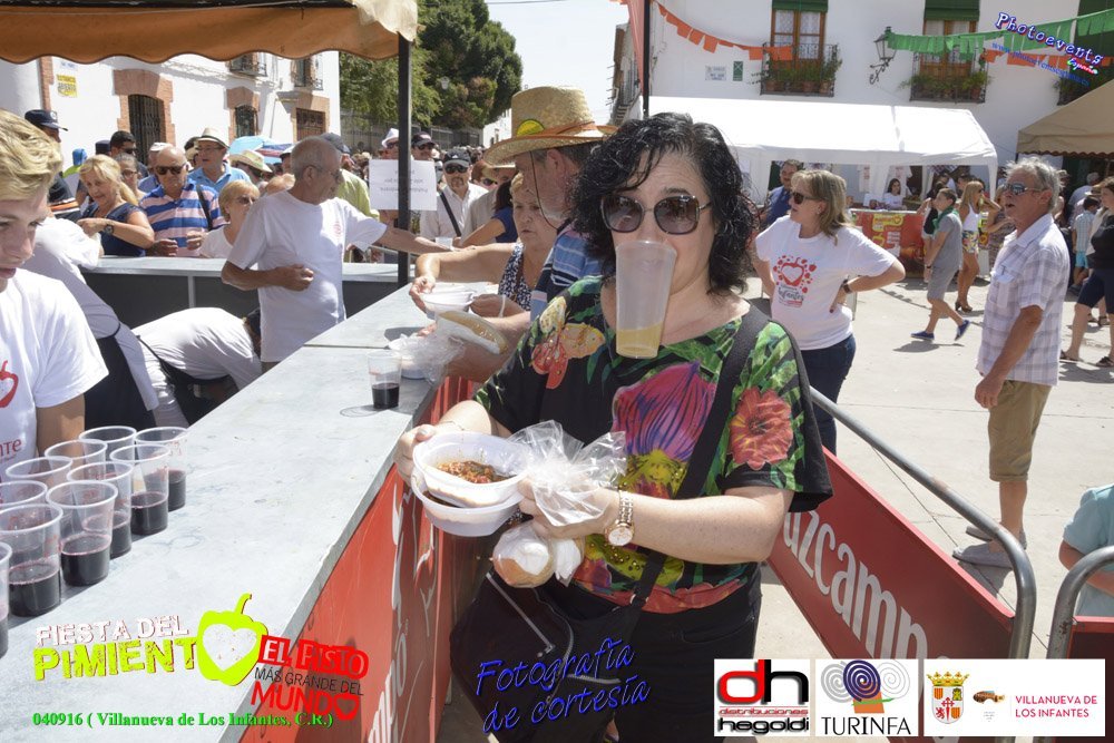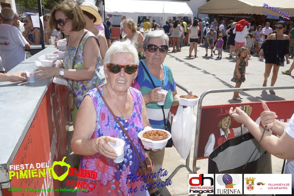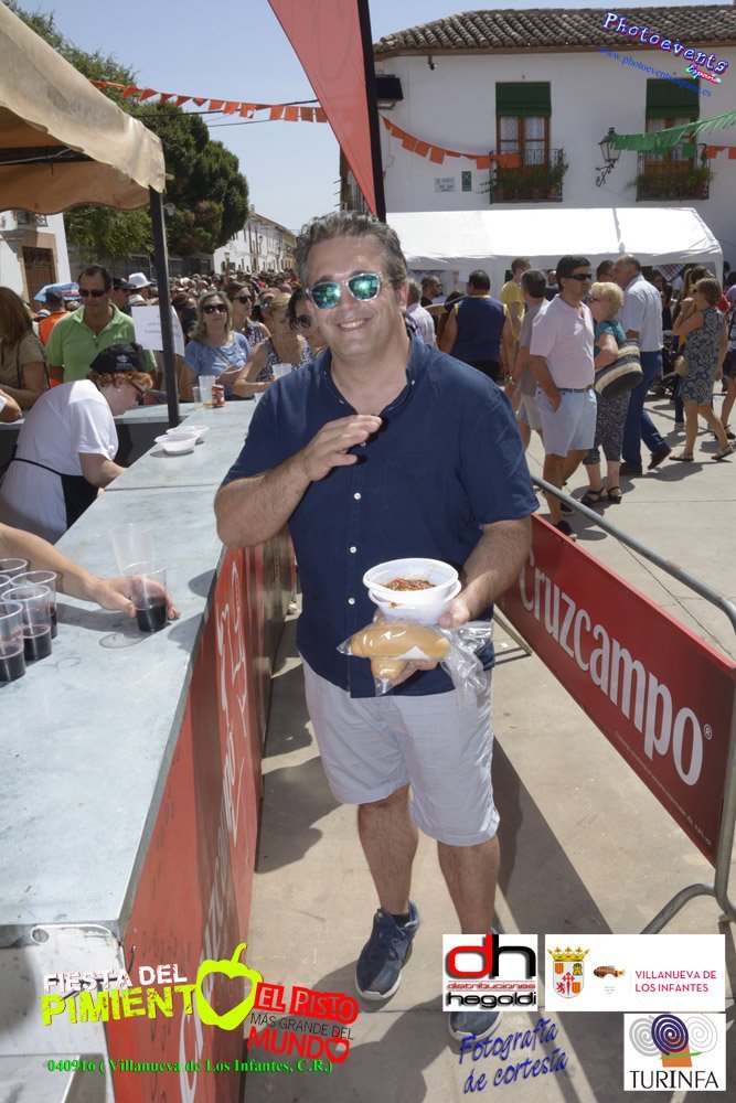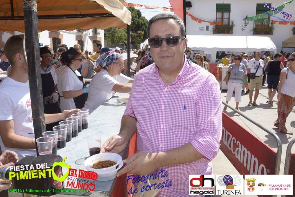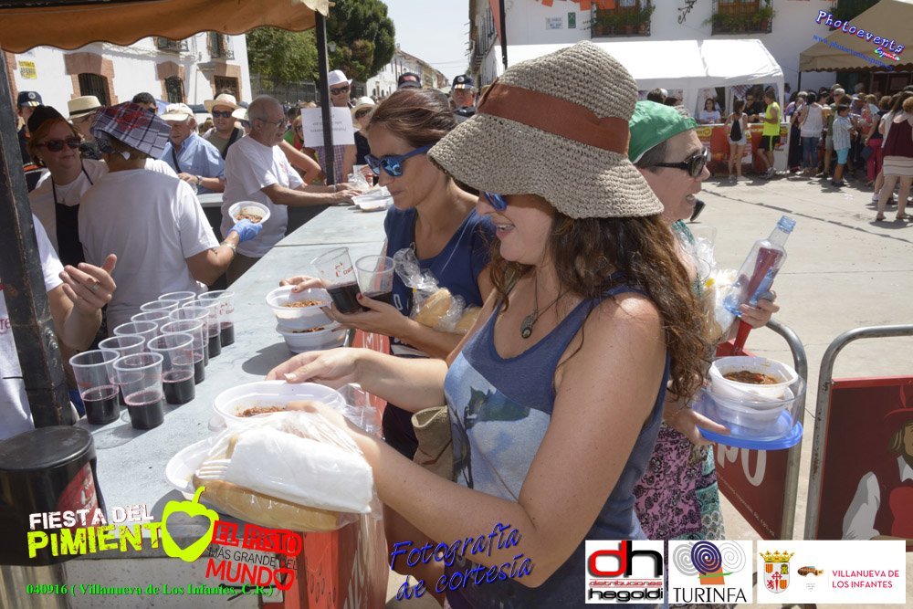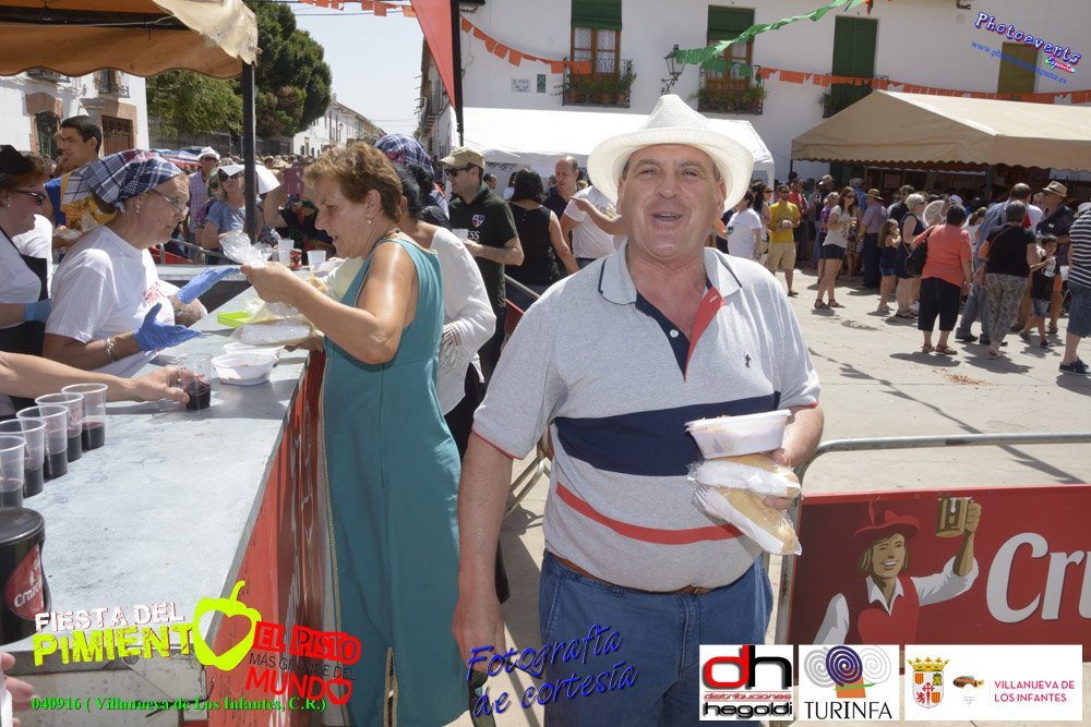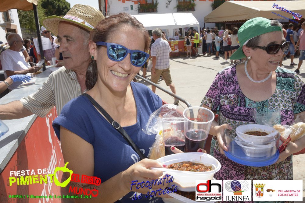 Fotografías realizadas durante el reparto a las personas (que desde primera hora llegaban a la plaza) del pisto mas grande del mundo, el cual ha sido certificado con el RECORD GUINNESS como el pisto mas grande del mundo, con un peso total de 1.254 kilos, superando de esta forma con creces los 563 kilos del popular plato francés, el "ratatouille", que ostentaba Disney. El pisto gigante se realizo el pasado día 4 de Septiembre y estaba enmarcado dentro de las fiestas del pimiento que anualmente a comienzos de Septiembre se celebra en la localidad de Vva. de los Infantes, (Ciudad Real-España).