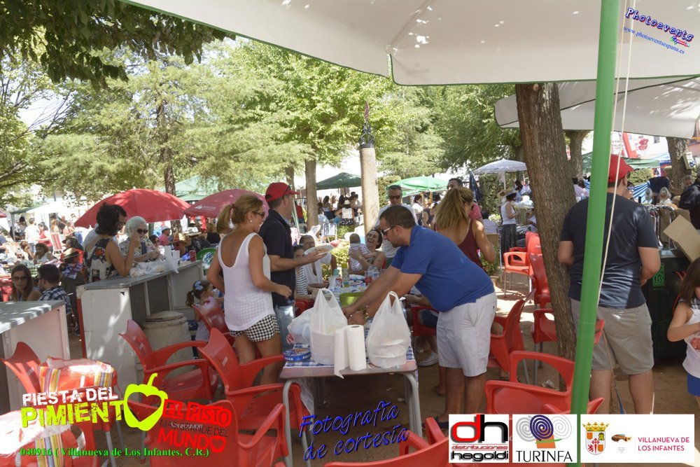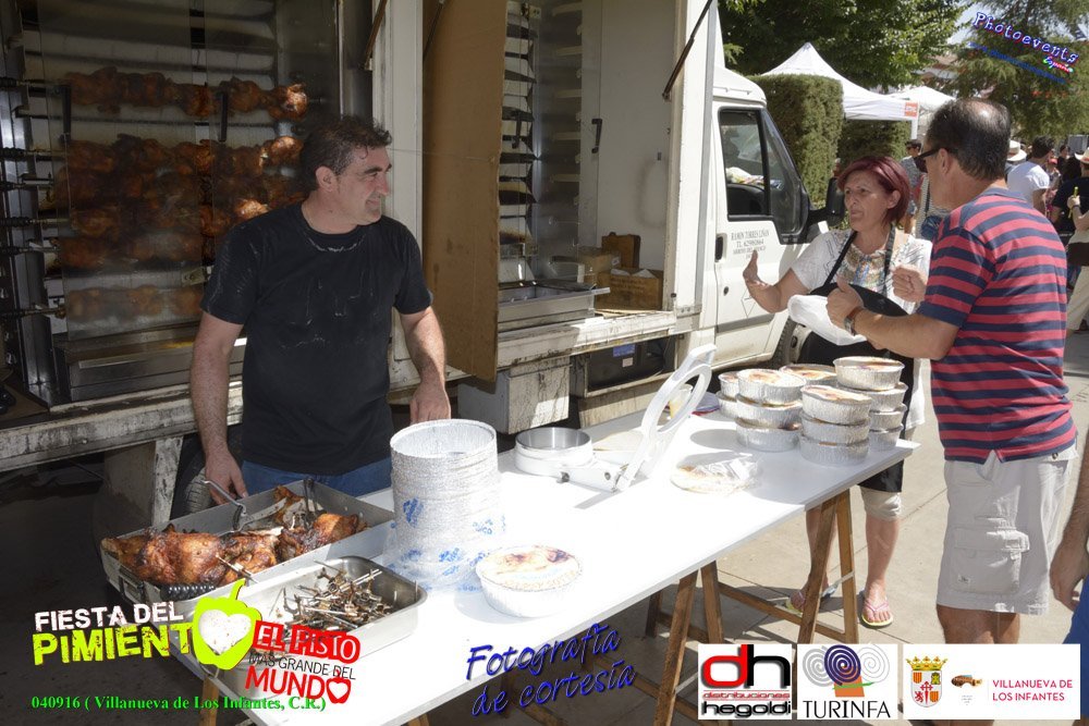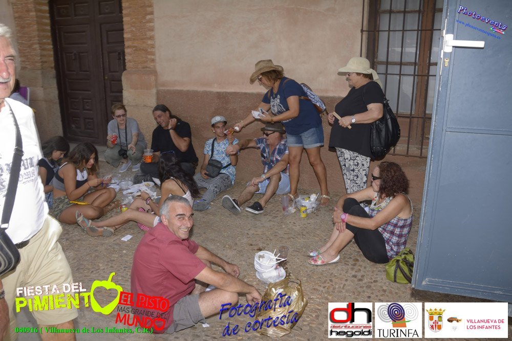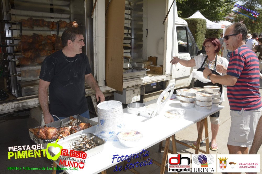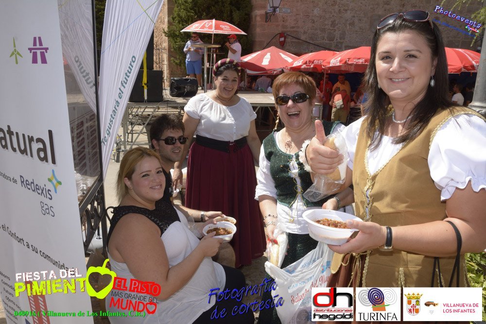 Fotografías realizadas durante el reparto a las personas (que desde primera hora llegaban a la plaza) del pisto mas grande del mundo, el cual ha sido certificado con el RECORD GUINNESS como el pisto mas grande del mundo, con un peso total de 1.254 kilos, superando de esta forma con creces los 563 kilos del popular plato francés, el "ratatouille", que ostentaba Disney. El pisto gigante se realizo el pasado día 4 de Septiembre y estaba enmarcado dentro de las fiestas del pimiento que anualmente a comienzos de Septiembre se celebra en la localidad de Vva. de los Infantes, (Ciudad Real-España).
