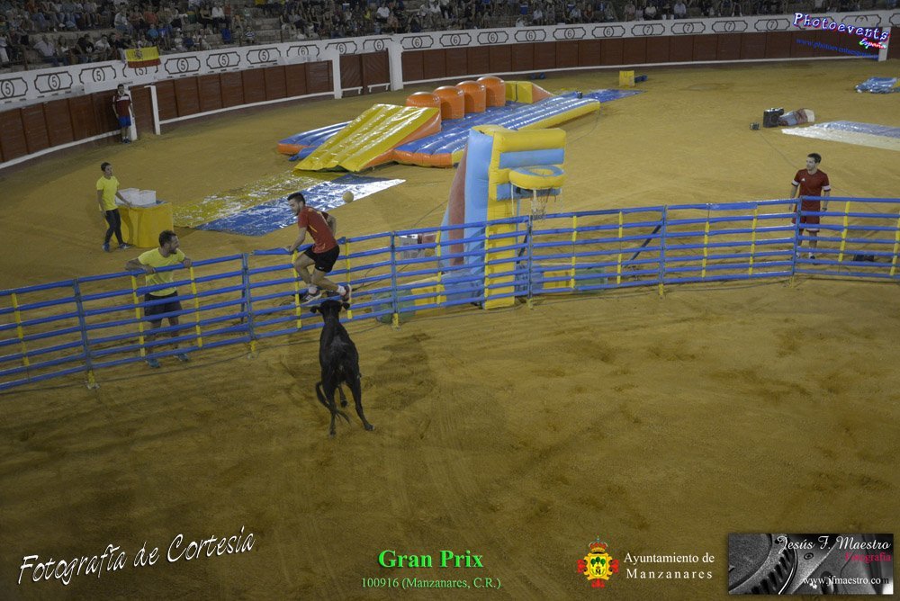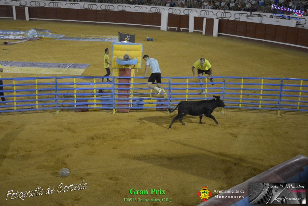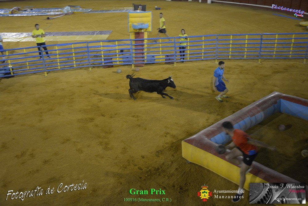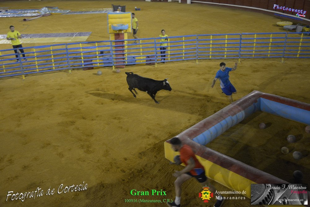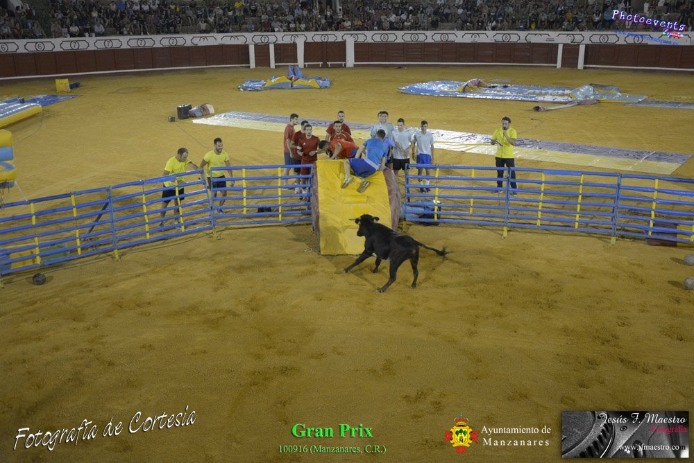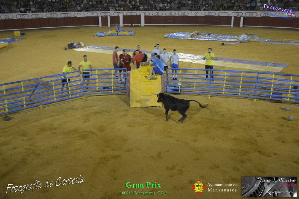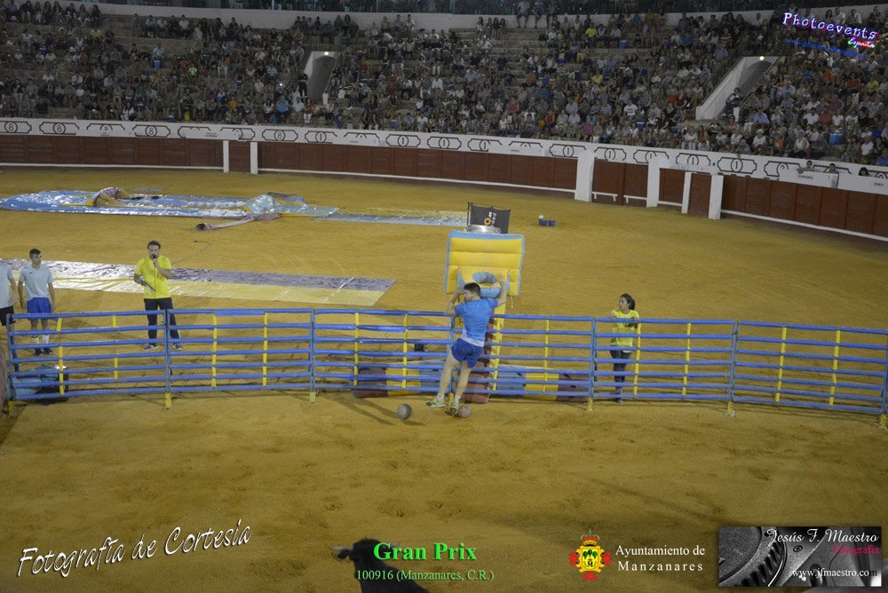 Fotografías realizadas durante el espectáculo de juego y diversión del Gran Prix, con gran variedad de juegos hinchables y 2 vaquillas con mucha experiencia, realizado el pasado día 100916 con motivo de las fiestas patronales Nuestro Padre Jesús del Perdón de Manzanares, Ciudad Real.