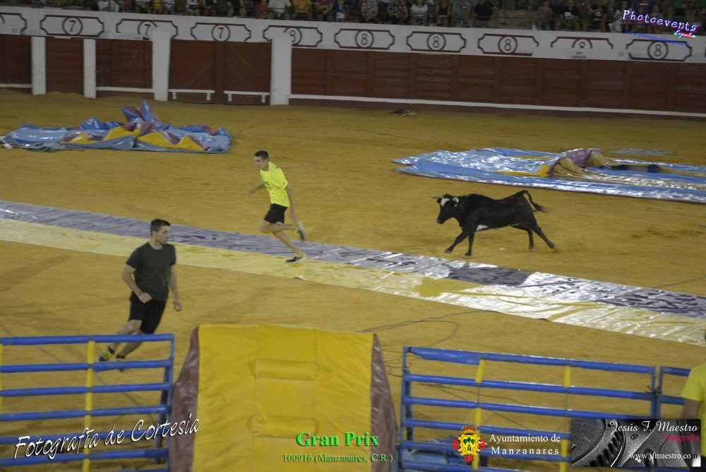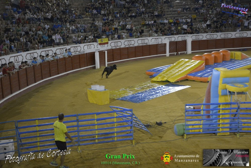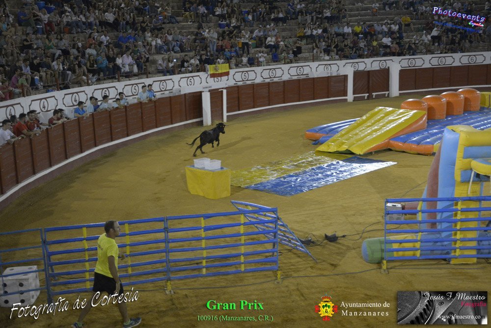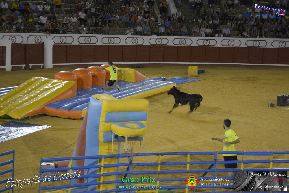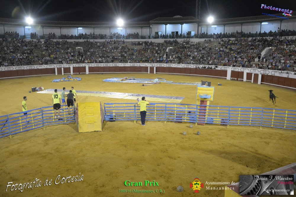 Fotografías realizadas durante el espectáculo de juego y diversión del Gran Prix, con gran variedad de juegos hinchables y 2 vaquillas con mucha experiencia, realizado el pasado día 100916 con motivo de las fiestas patronales Nuestro Padre Jesús del Perdón de Manzanares, Ciudad Real.