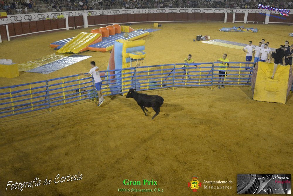 Fotografías realizadas durante el espectáculo de juego y diversión del Gran Prix, con gran variedad de juegos hinchables y 2 vaquillas con mucha experiencia, realizado el pasado día 100916 con motivo de las fiestas patronales Nuestro Padre Jesús del Perdón de Manzanares, Ciudad Real.