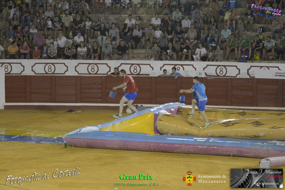 Fotografías realizadas durante el espectáculo de juego y diversión del Gran Prix, con gran variedad de juegos hinchables y 2 vaquillas con mucha experiencia, realizado el pasado día 100916 con motivo de las fiestas patronales Nuestro Padre Jesús del Perdón de Manzanares, Ciudad Real.
