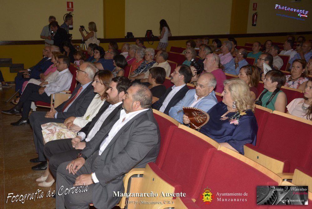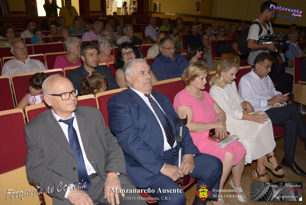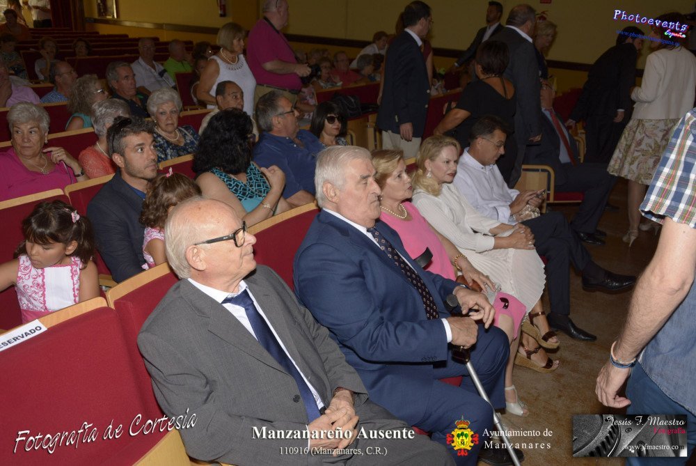 Fotografías realizadas durante el nombramiento de Manzanareño ausente, dicho reconocimiento ha recaido este alo en Pedro Márquez Álvarez, Tomasa Almodóvar Sánchez-Migallón, Eugenia Ballesteros Guijarro, Pedro Fernández-Luengo Morales y Marcos Maroto Maeso, los cuales han sido selelccionados por las distintas asociaciones vecinales. La Gala se celebra anualmente y tenía lugar el pasado día 110916 aprovechando las fiestas patronales Nuestro Padre Jesús del Perdón de Manzanares, Ciudad Real.