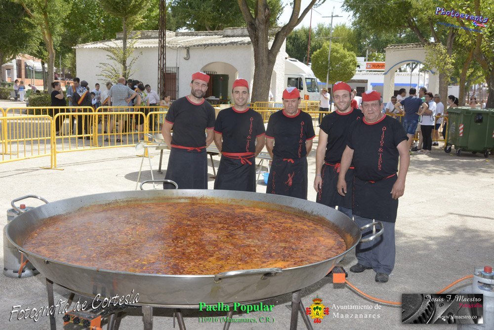 Fotografías realizadas durante la realización y posterior degustación de una paella gigante para 1.500 personas, acompañada con su correspondiente zurra, refrescos o cerveza, que como cada año realiza la Hermandad del Cristo, y que tenía lugar el pasado día 110916 aprovechando las fiestas patronales Nuestro Padre Jesús del Perdón de Manzanares, Ciudad Real.