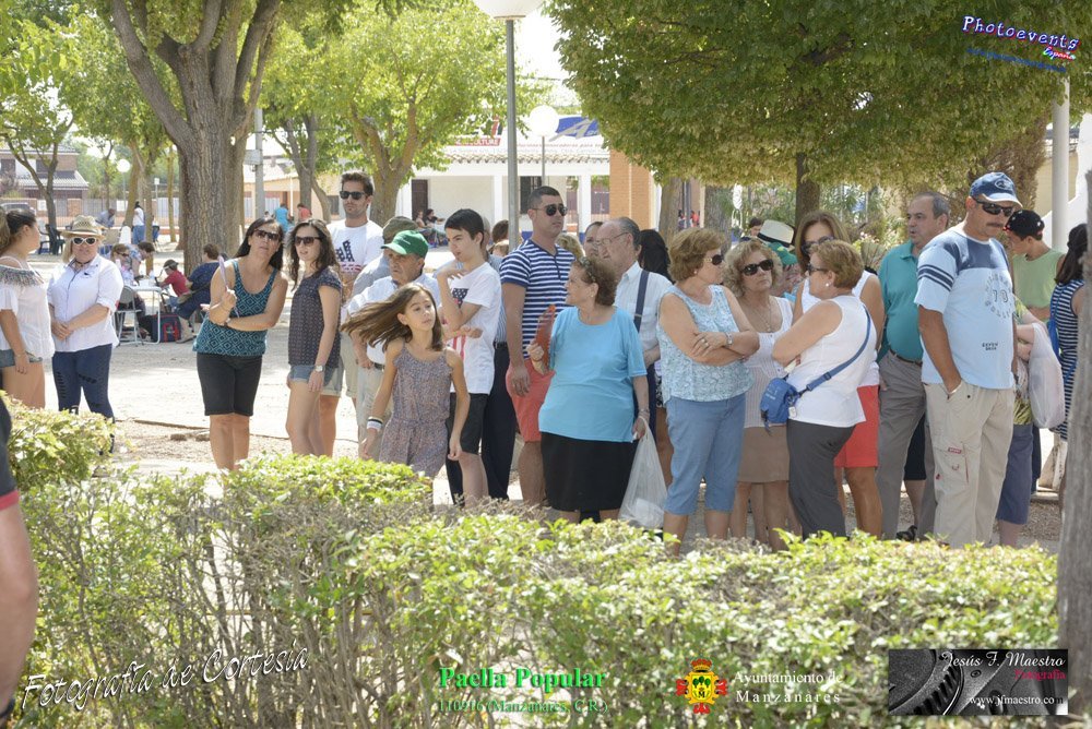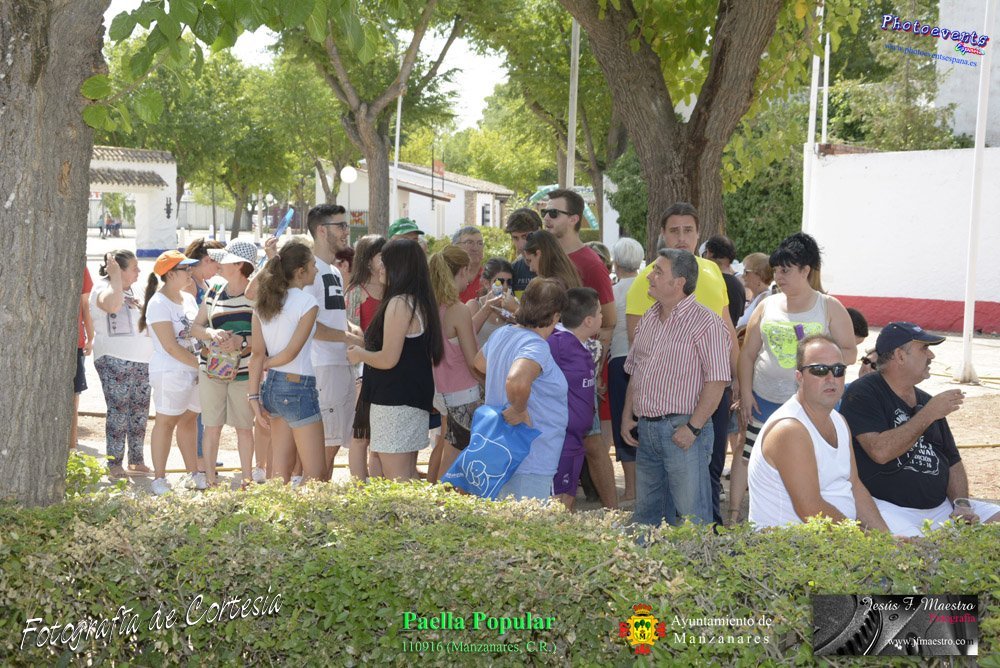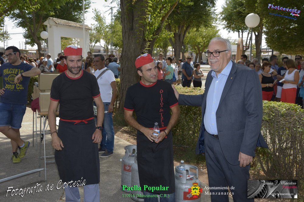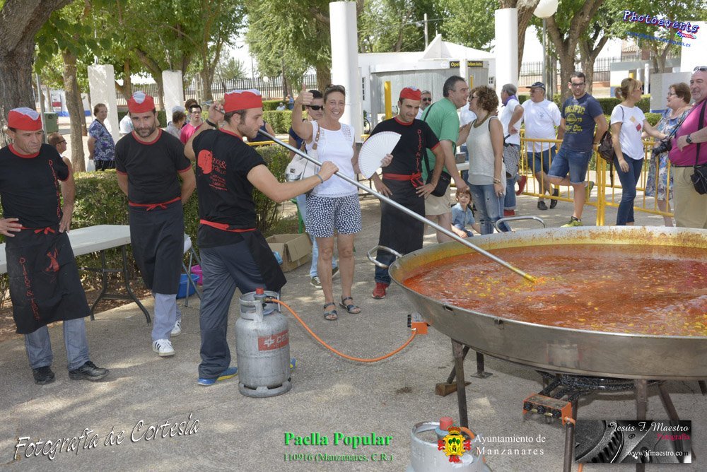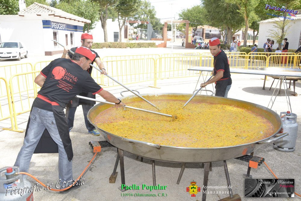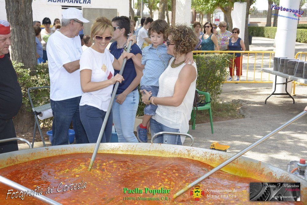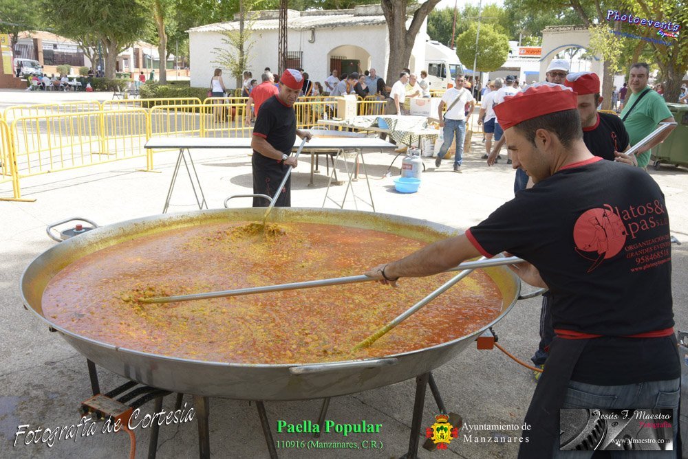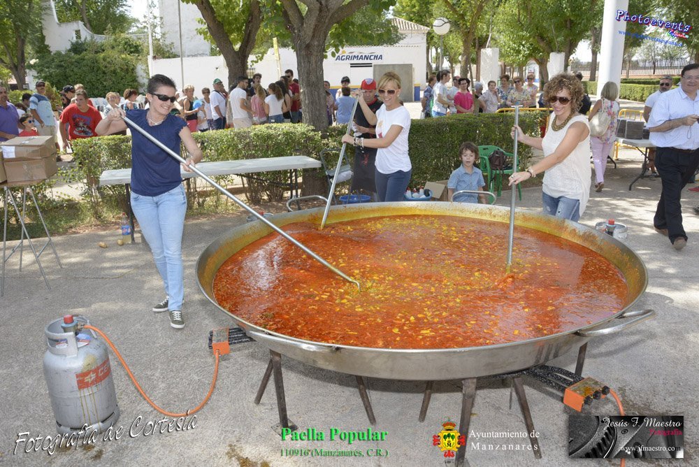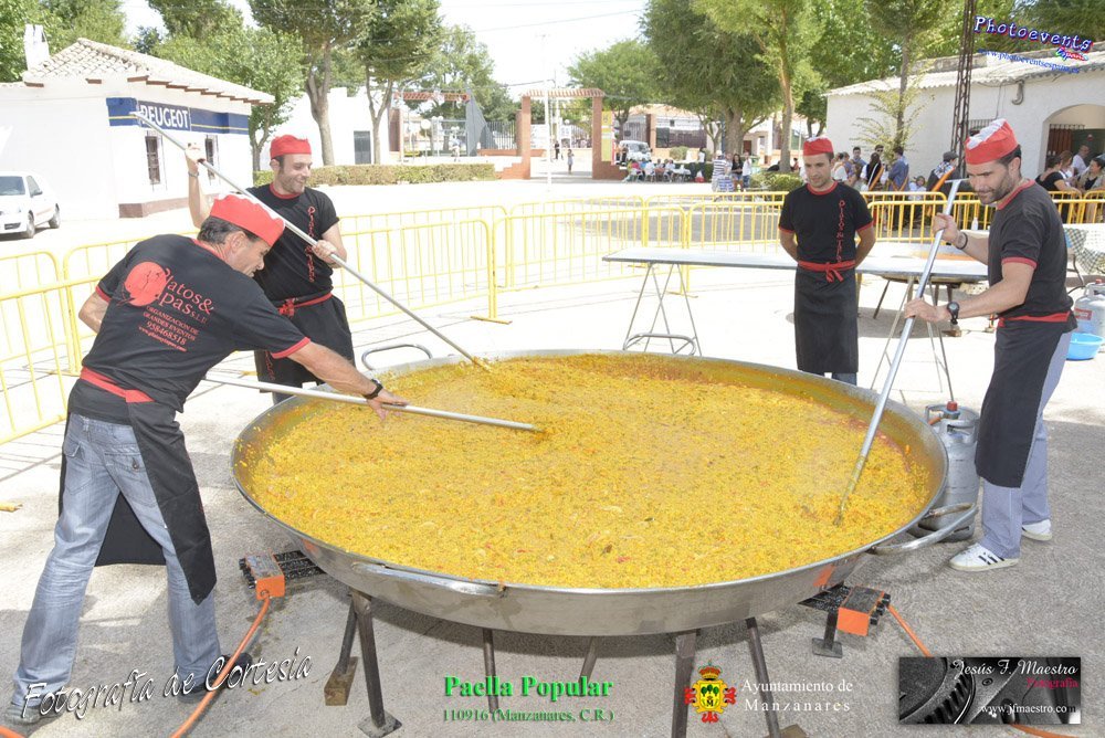 Fotografías realizadas durante la realización y posterior degustación de una paella gigante para 1.500 personas, acompañada con su correspondiente zurra, refrescos o cerveza, que como cada año realiza la Hermandad del Cristo, y que tenía lugar el pasado día 110916 aprovechando las fiestas patronales Nuestro Padre Jesús del Perdón de Manzanares, Ciudad Real.