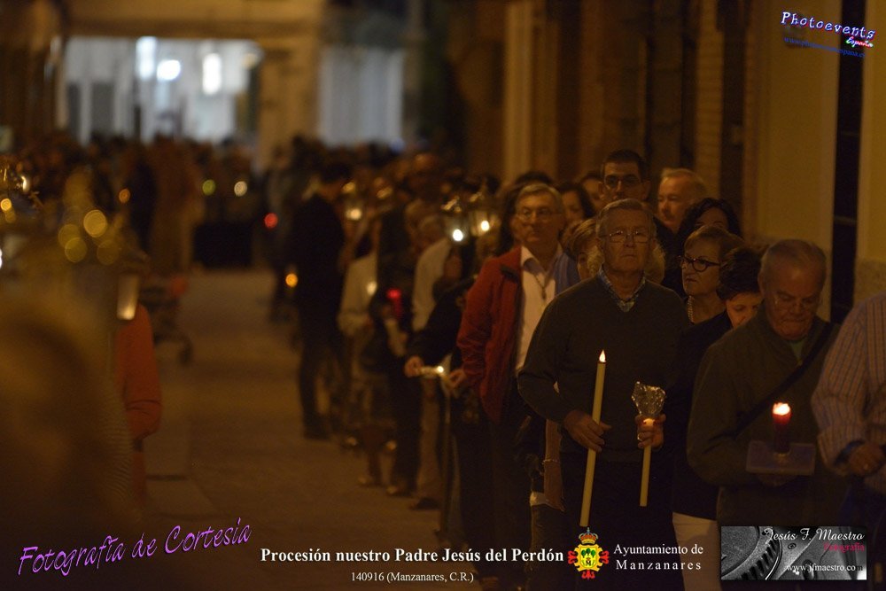 Fotografías realizadas durante la procesión de nuestro padre Jesús del Perdón, acompañado por la parte delantera de la imagen de todos los fieles y hermanos de la cofradía que lleva el mismo nombre, con motivo de las fiestas patronales Nuestro Padre Jesús del Perdón de Manzanares, Ciudad Real.