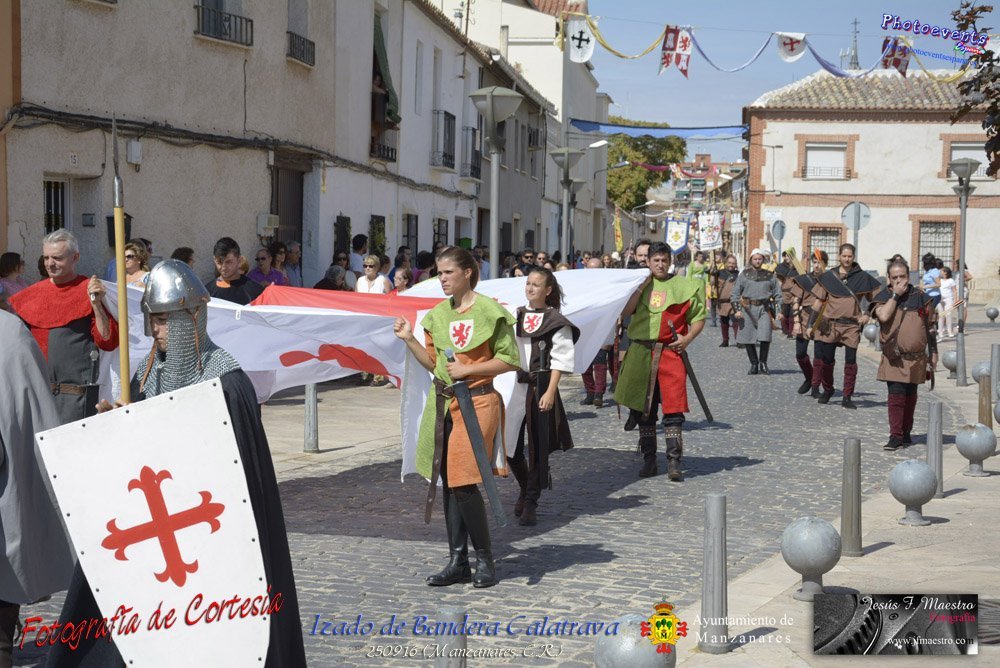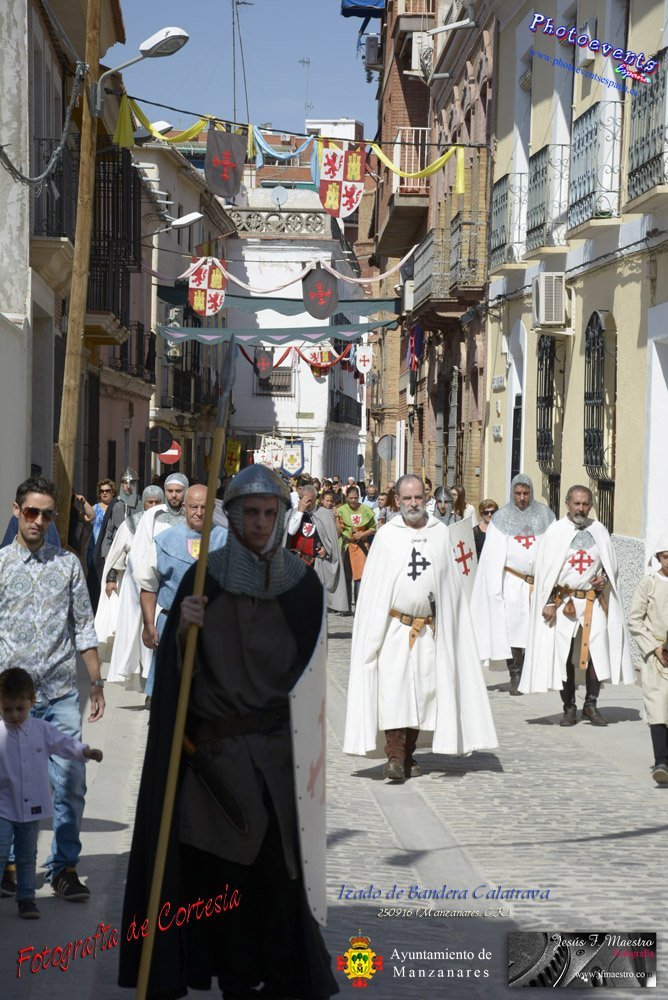 Fotografías realizadas durante el desfile y posterior izada de la Bandera Calatrava que ondeará en el Castillo de Pilas Bonas con motivo de las V Jornadas Histórico Turísticas, que se celebran hasta el próximo domingo 2 de Octubre en la localidad de Manzanares, Ciudad Real.