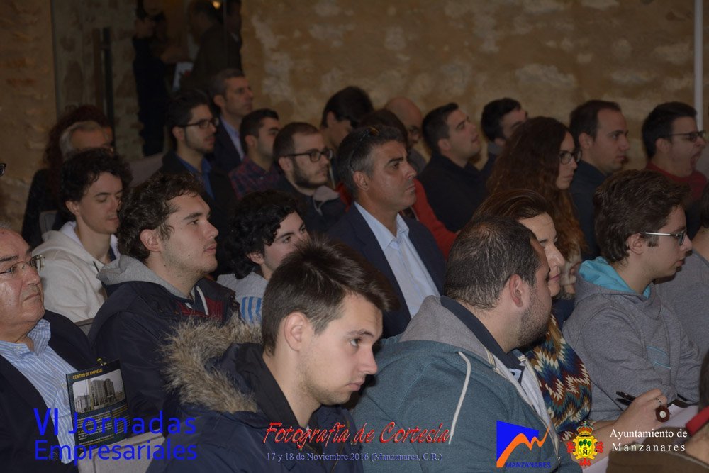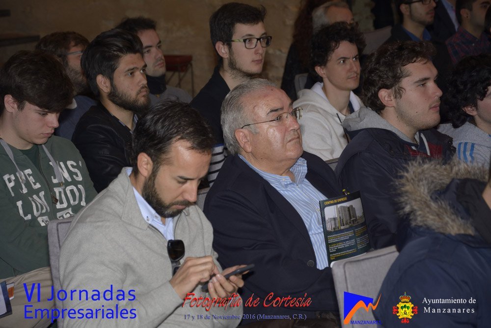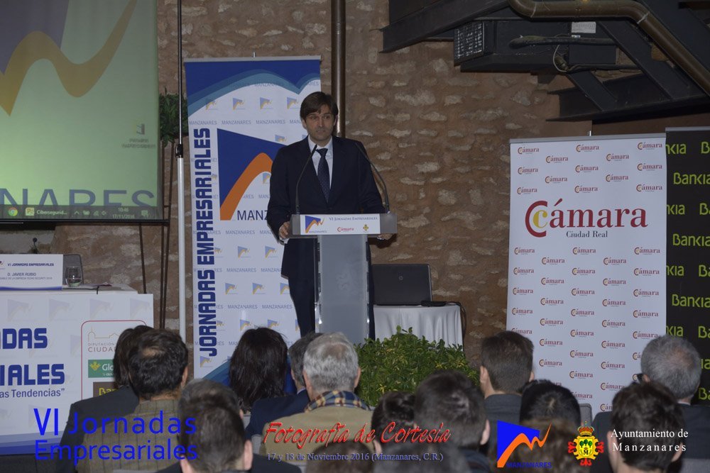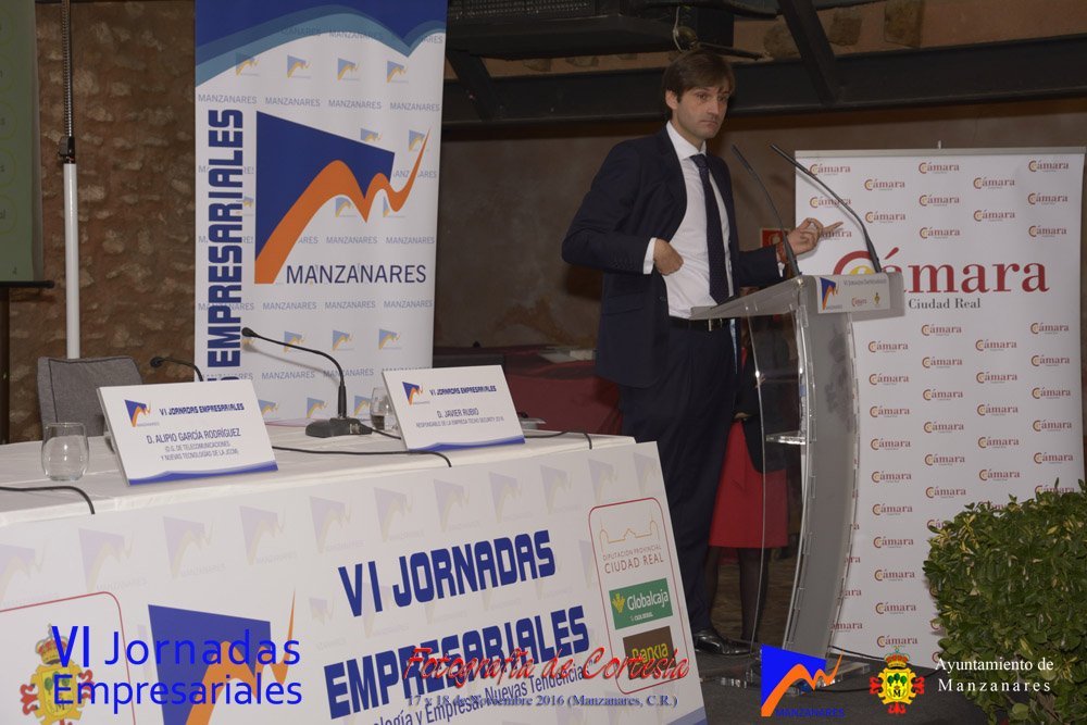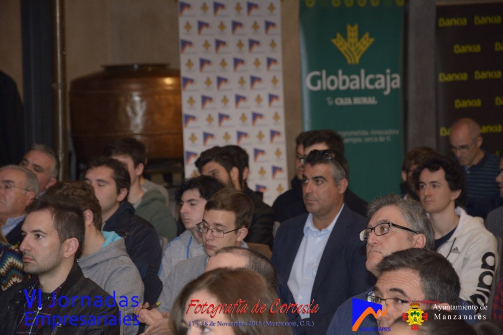 Fotografías realizadas durante la mañana del día 17, en la que se inauguran las VI Jornadas Empresariales de Manzanares, intervienen D. Julián Nieva (Alcalde de Manzanares), Dña. Patricia Franco (Consejera de economía CLM), Mariano León (Presidente de la Cámara de Comercio de Ciudad Real). Posteriormente dieron comienzo las ponencias de Javier Rubio (Techco Security), Pedro Jesús Rodríguez González (Coordinador de Áreas TIC en la Consejería de Fomento de CLM), Javier Sánchez (Director de Innovación en Layuout tecnológico de Bankia), Pepe Moral (profesor de la EOI) y Javier Aroca (Analista Político).