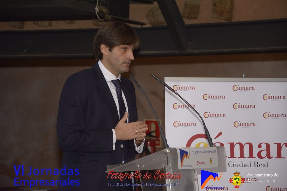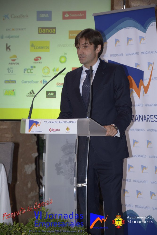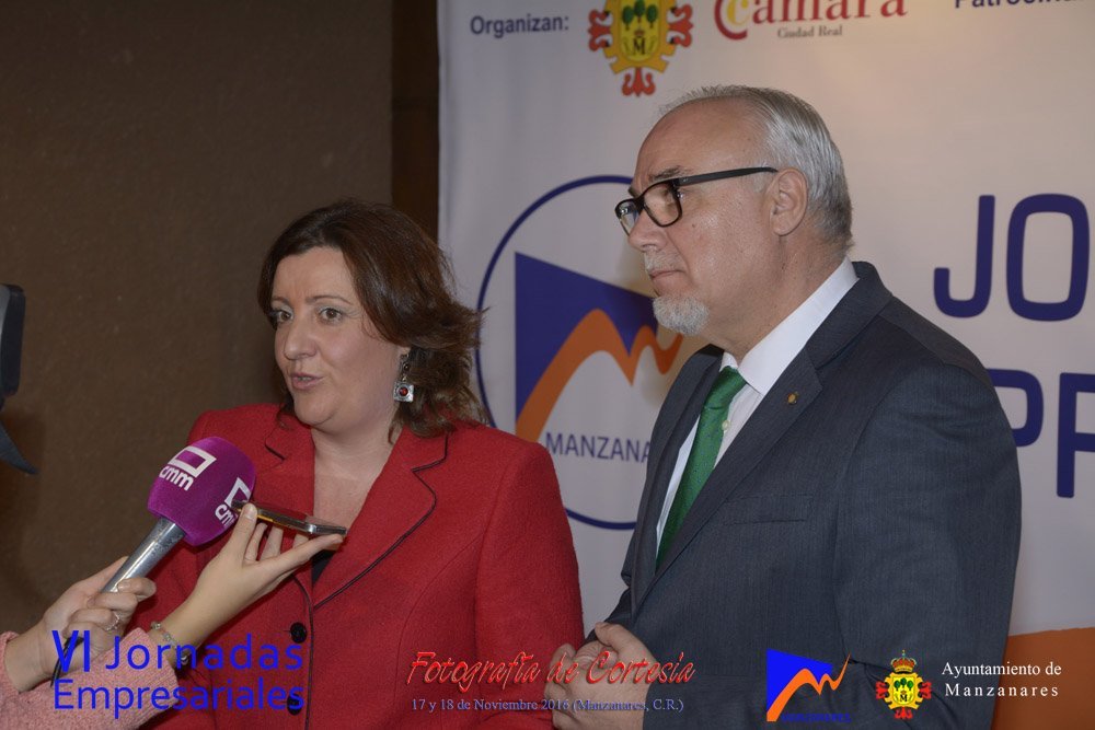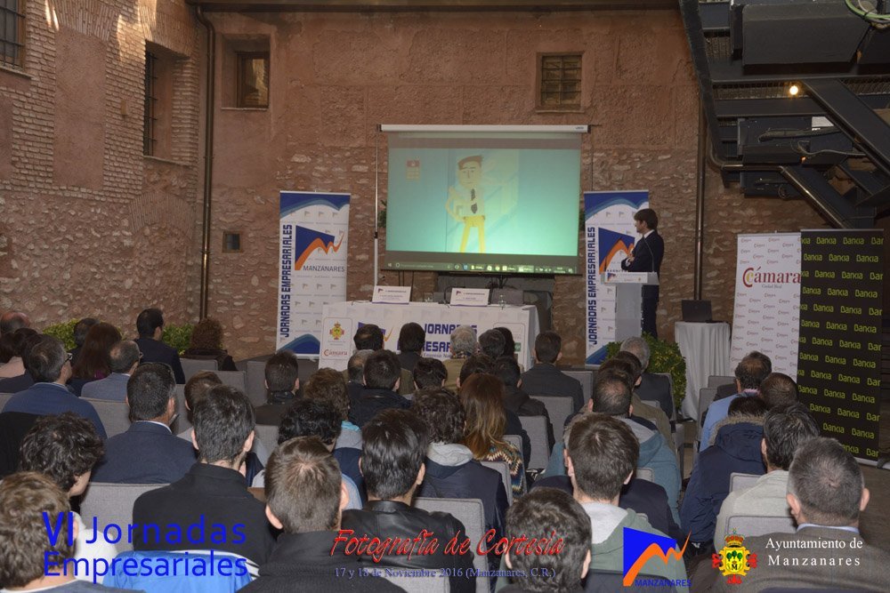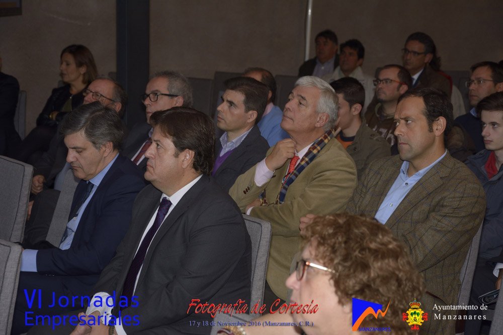 Fotografías realizadas durante la mañana del día 17, en la que se inauguran las VI Jornadas Empresariales de Manzanares, intervienen D. Julián Nieva (Alcalde de Manzanares), Dña. Patricia Franco (Consejera de economía CLM), Mariano León (Presidente de la Cámara de Comercio de Ciudad Real). Posteriormente dieron comienzo las ponencias de Javier Rubio (Techco Security), Pedro Jesús Rodríguez González (Coordinador de Áreas TIC en la Consejería de Fomento de CLM), Javier Sánchez (Director de Innovación en Layuout tecnológico de Bankia), Pepe Moral (profesor de la EOI) y Javier Aroca (Analista Político).
