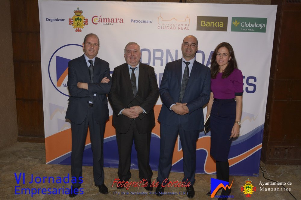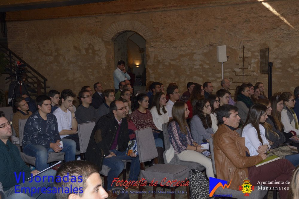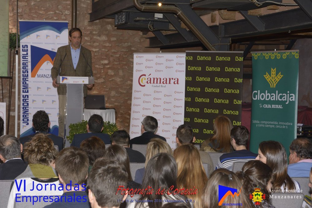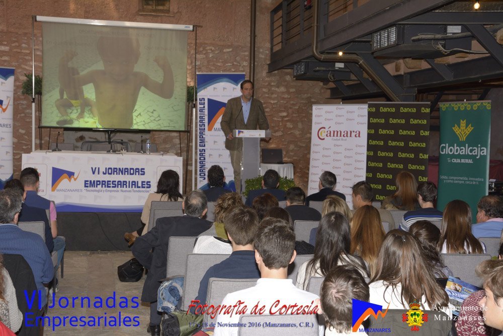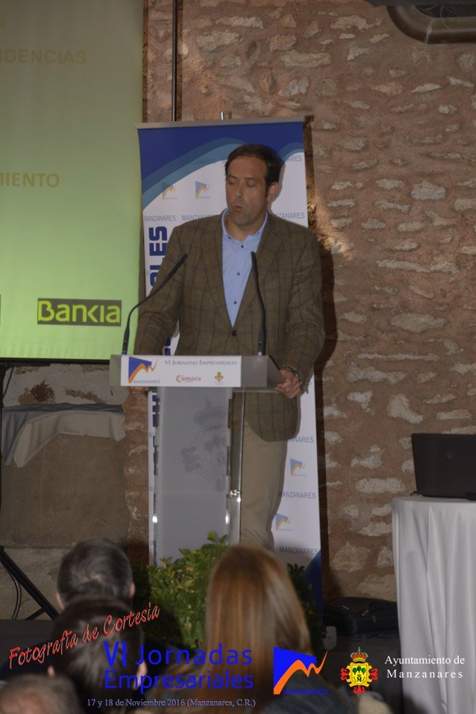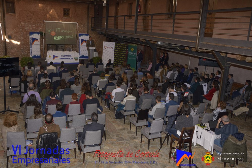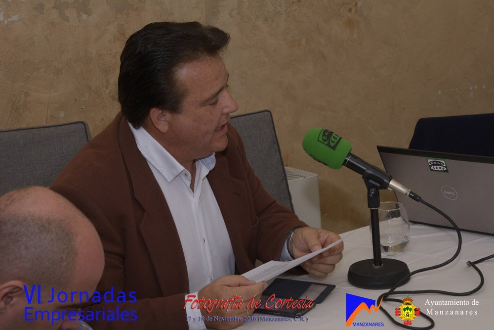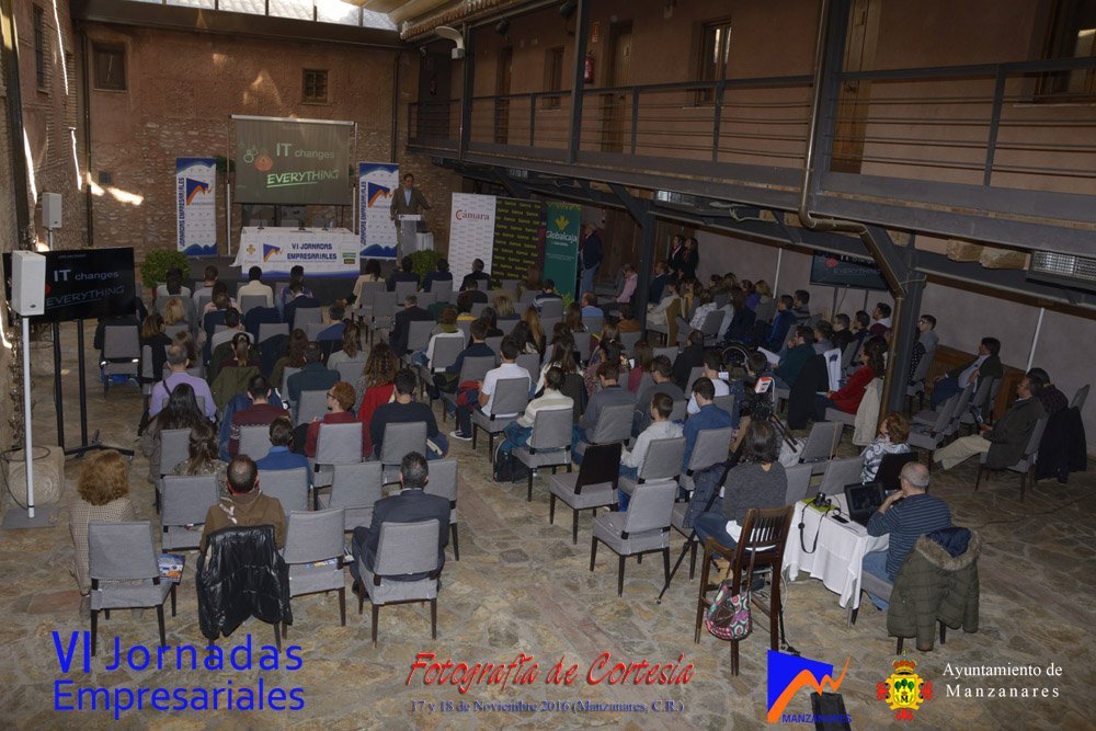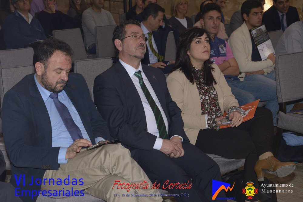 Fotografías realizadas durante la mañana del día 17, en la que se inauguran las VI Jornadas Empresariales de Manzanares, intervienen D. Julián Nieva (Alcalde de Manzanares), Dña. Patricia Franco (Consejera de economía CLM), Mariano León (Presidente de la Cámara de Comercio de Ciudad Real). Posteriormente dieron comienzo las ponencias de Javier Rubio (Techco Security), Pedro Jesús Rodríguez González (Coordinador de Áreas TIC en la Consejería de Fomento de CLM), Javier Sánchez (Director de Innovación en Layuout tecnológico de Bankia), Pepe Moral (profesor de la EOI) y Javier Aroca (Analista Político).