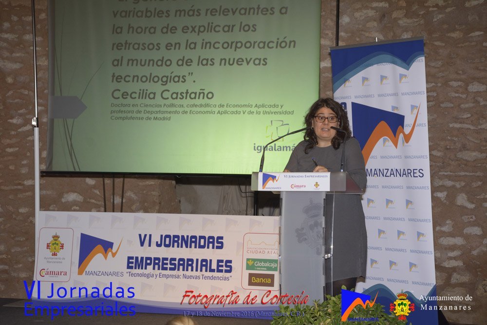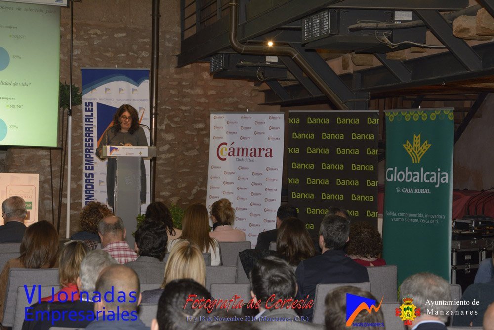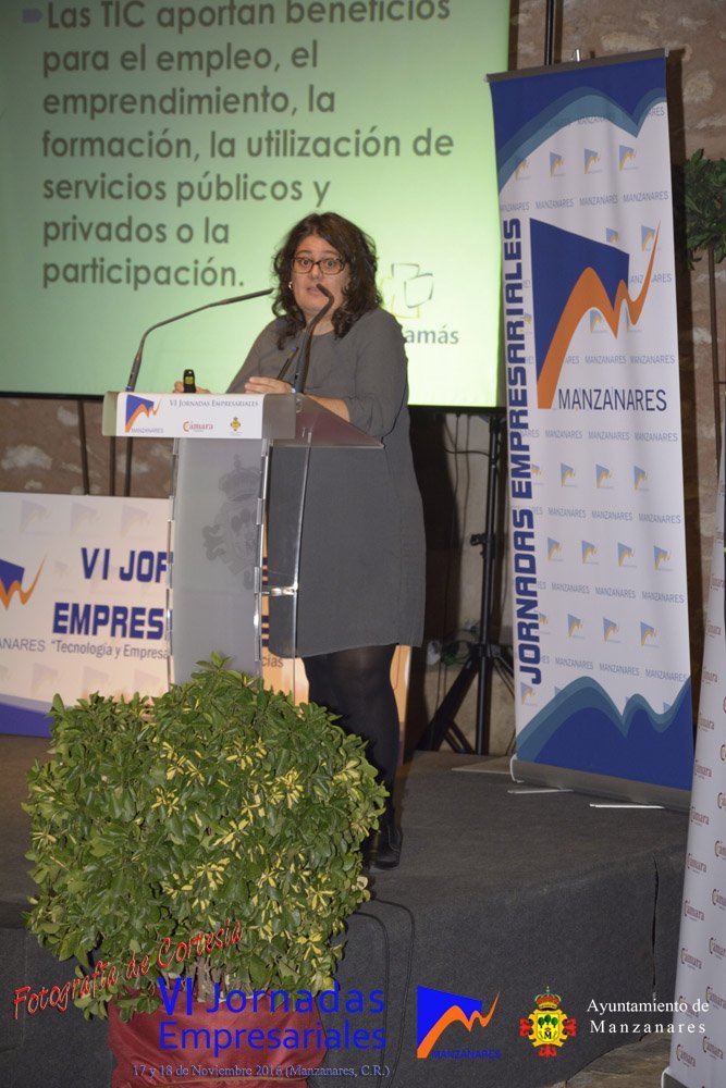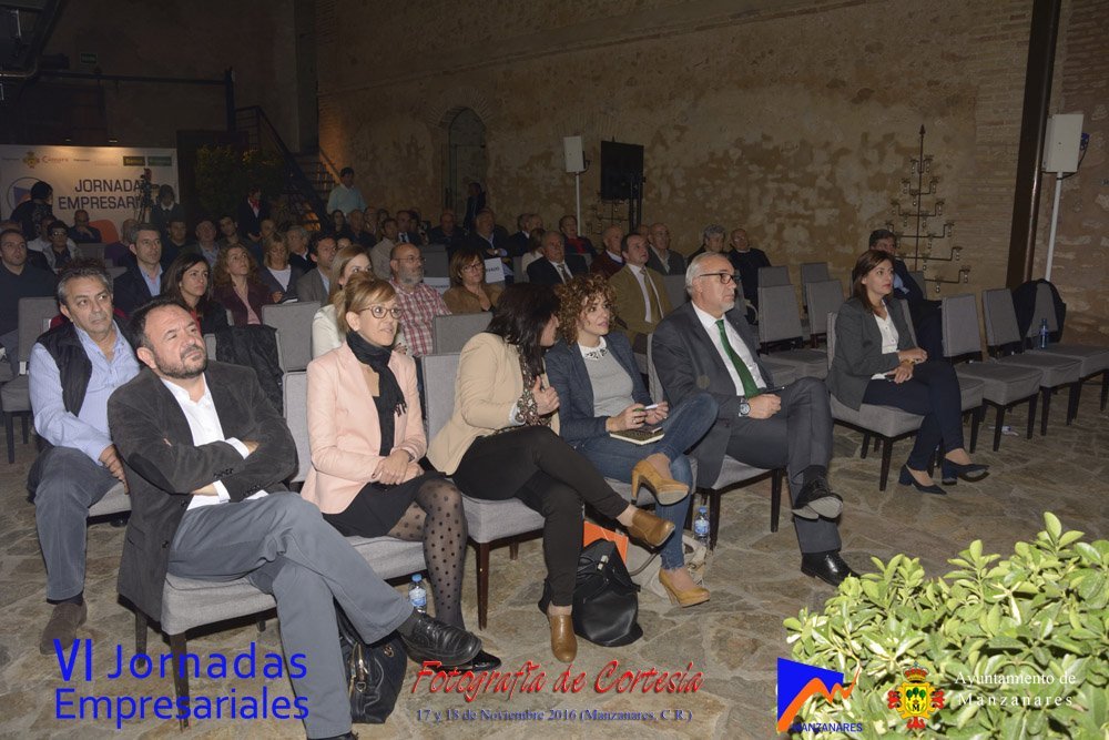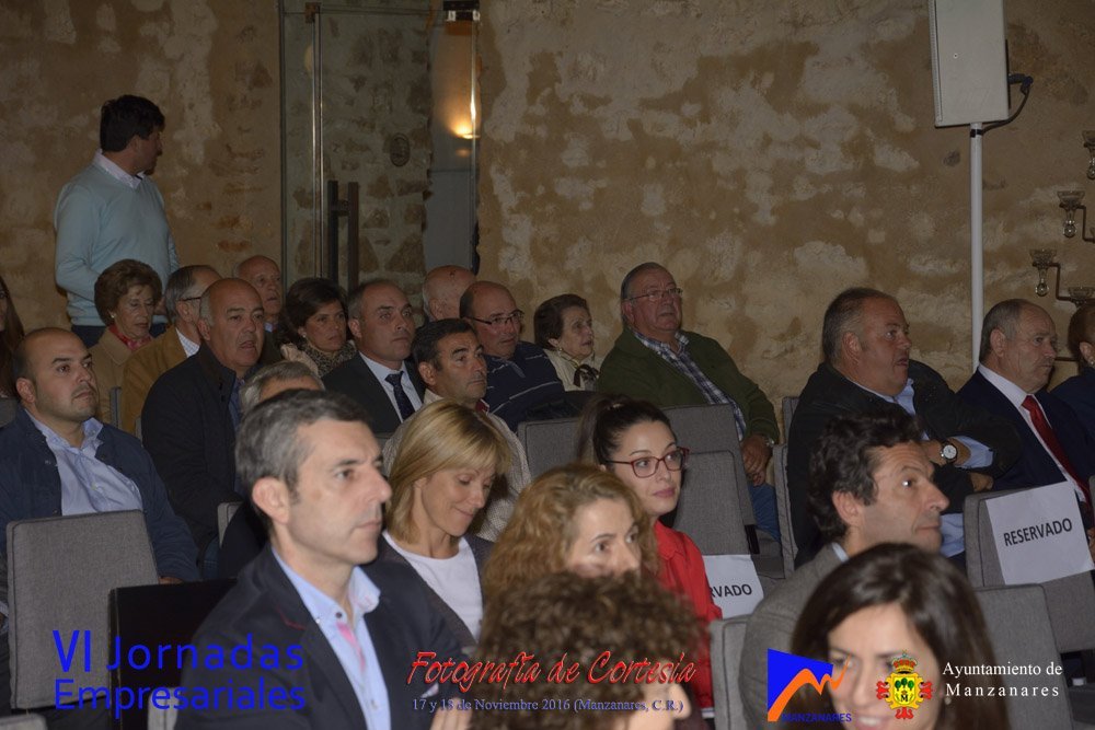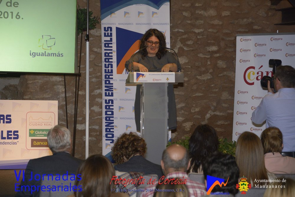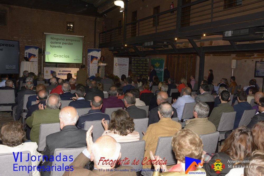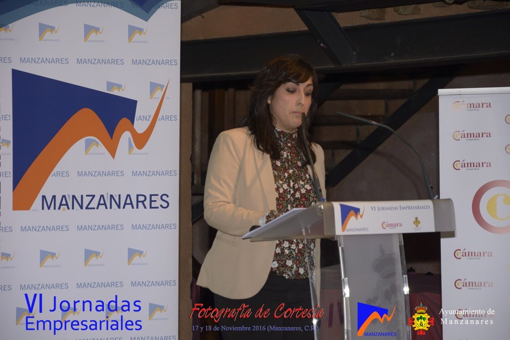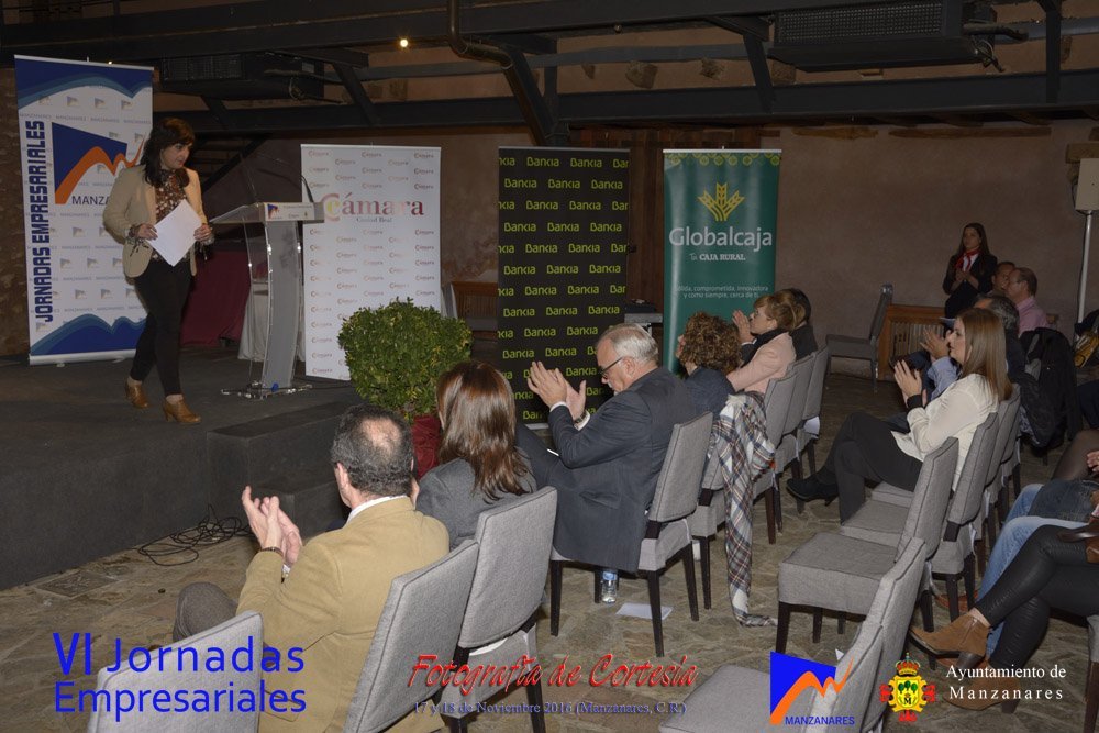 Fotografías realizadas durante la tarde del día 17, en la que intervienen abriendo el programa Gemma de la Fuente (Concejala de Desarrollo Empresarial del Ayuntamiento de Manzanares) y Cristina Cancho (Socióloga). Posteriormente se realiza la entrega de premios de estas VI Jornadas, reconociendo la trayectoria empresarial a Bodegas Yuntero y reconocimiento de la innovación a Enopassión. Los premios del concurso emprende son 1º Aeterna Producciones, 2º Dulceidea, 3º Local Marketing.