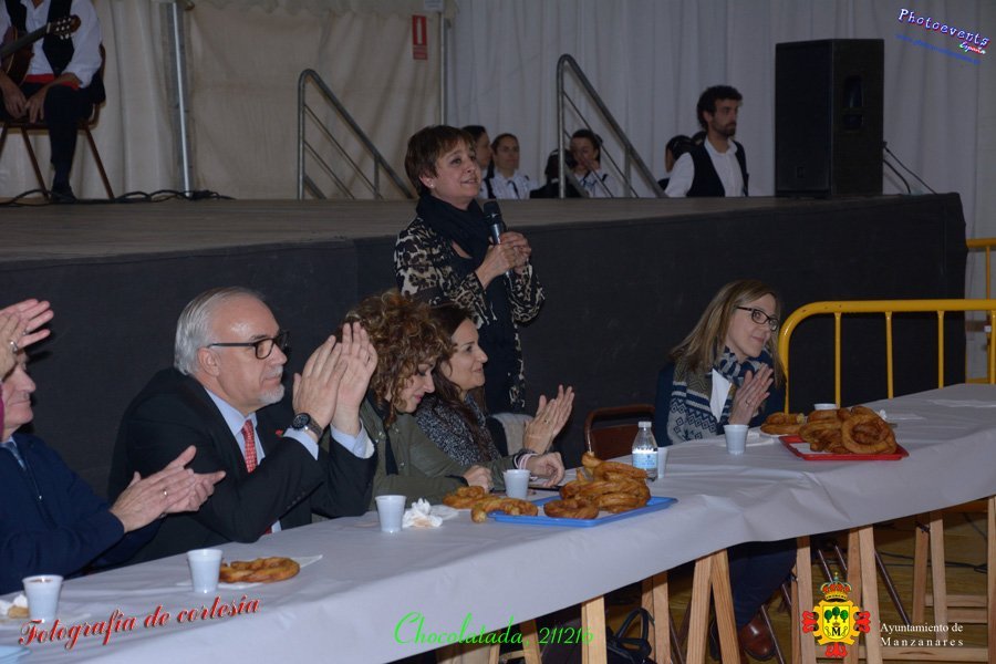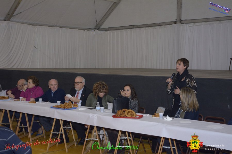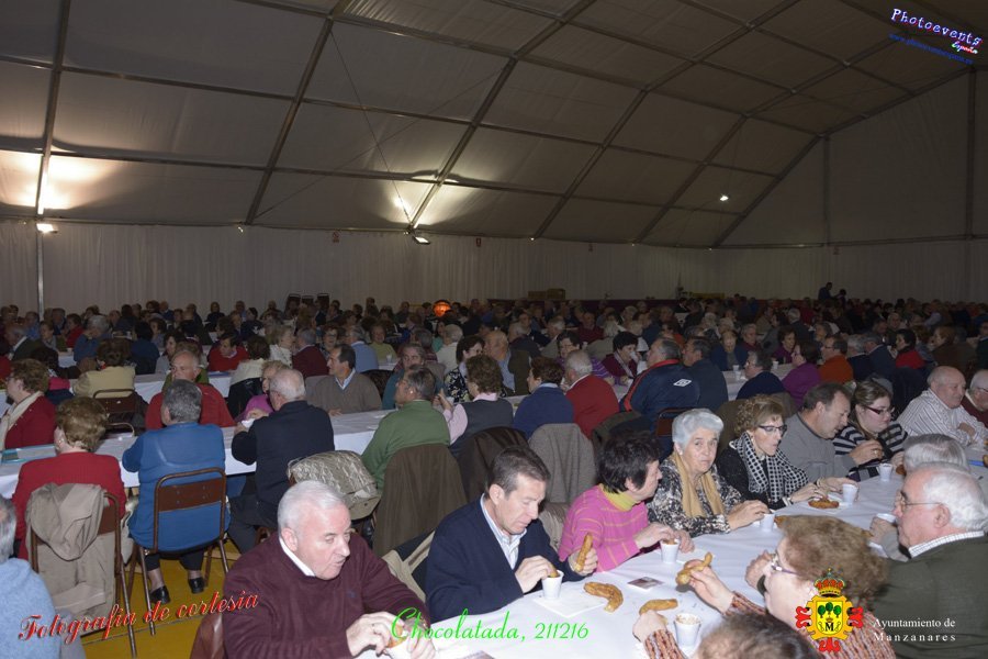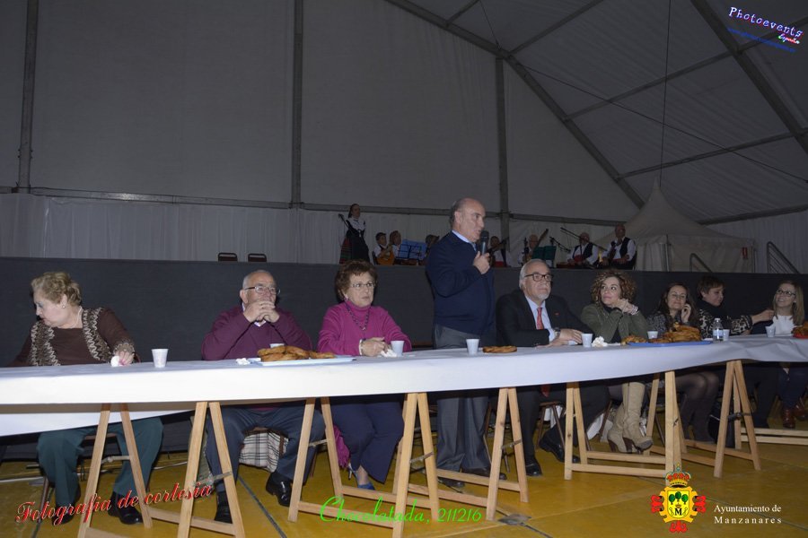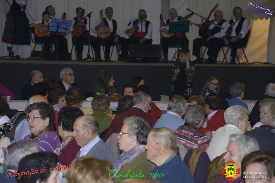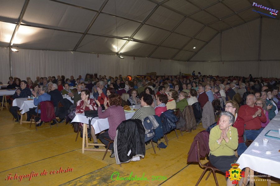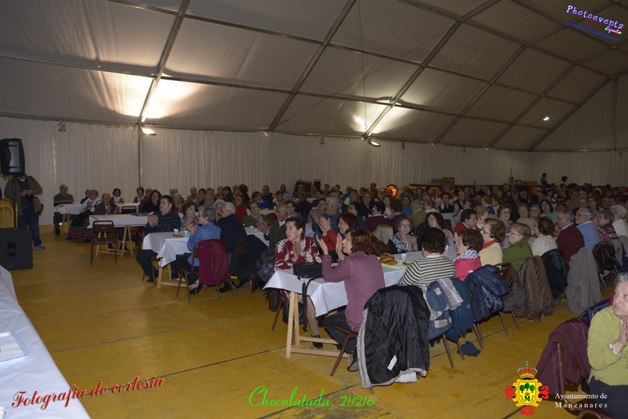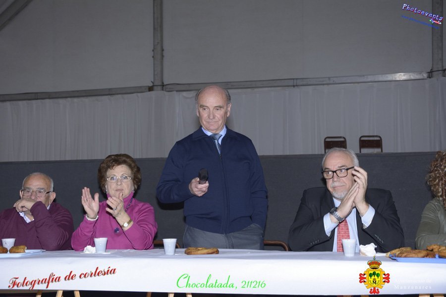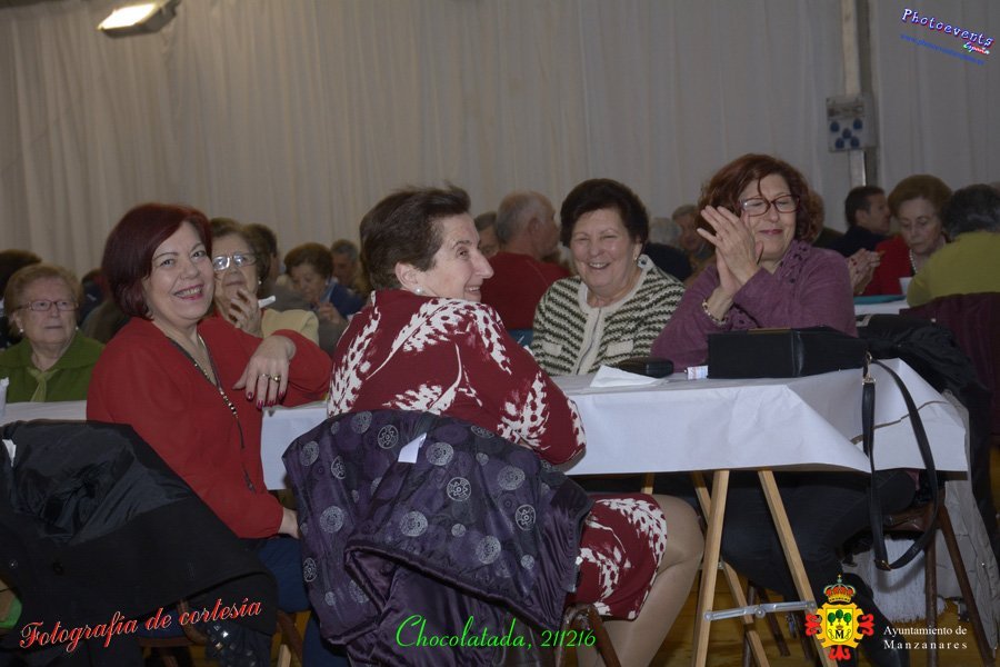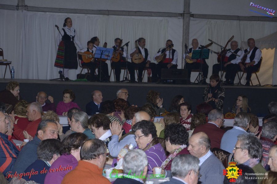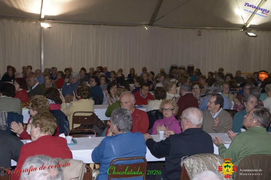 Fotografías realizadas durante la chocolatada y el espectáculo para los mayores de la Manzanares, dicho acto fue presidido por Julíán Nieva Delgado (Alcalde de Manzanares), Beatriz Labian (Concejala de Servicios Sociales) y Prado Zúñiga (Directora provincial de Bienestar Social), los cuales estuvieron acompañados por la directora y trabajadora social del centro de día de Mayores en la localidad. Se aprovecho el momento para realizar públicamente la entrega de premios de los distintos concursos realizados en pasados días, tales como Petanca y Tute por parejas, Parchís, Chinchón, Cinquillo y Ajedrez. El acto estuvo amenizado en todo momento por el grupo de Folklore local Manuel de Falla, el cual se despedía con unos villancicos y dando paso a un poco de baile con pasodobles, donde pudieron bailar los más atrevidos. El acto tuvo lugar el pasado día 21 de Diciembre en la localidad de Manzanares, Ciudad Real.