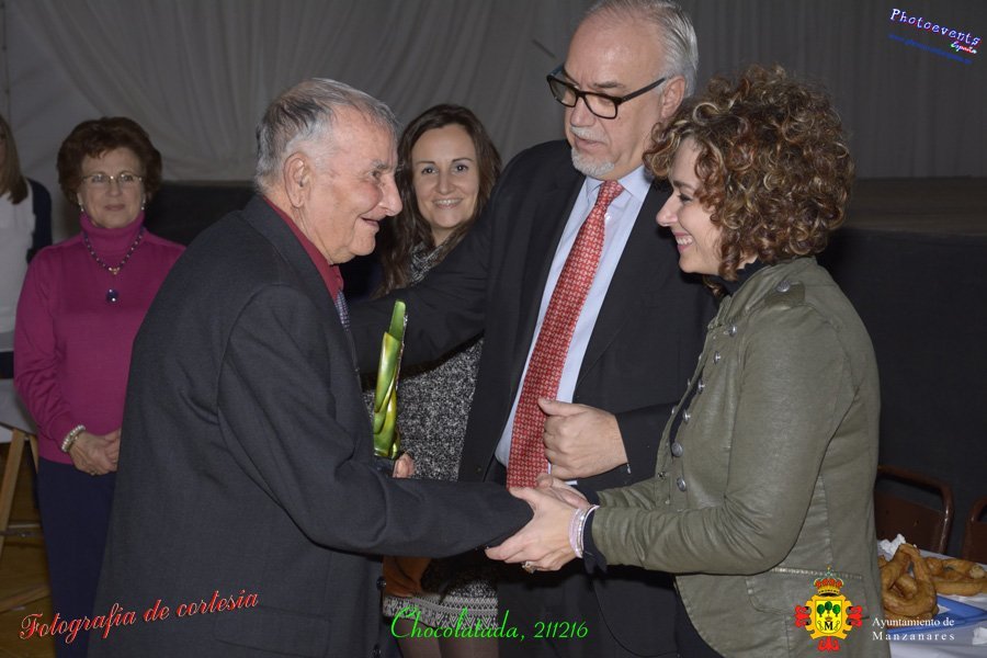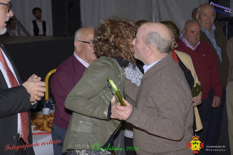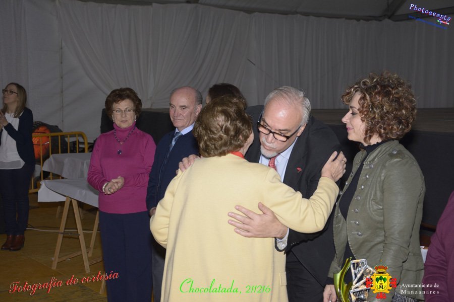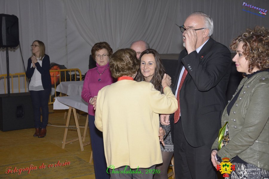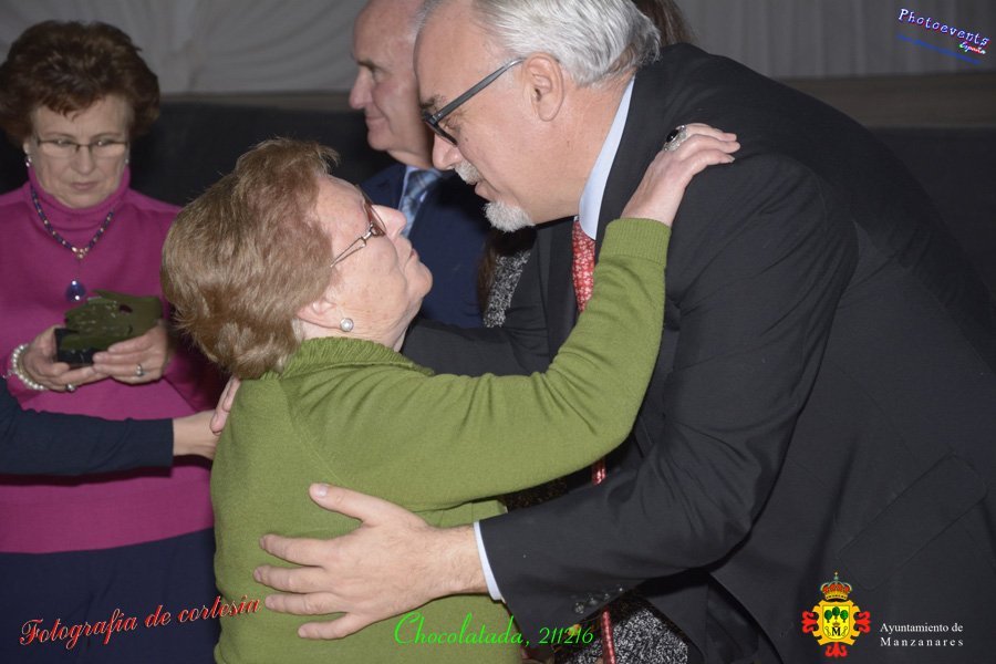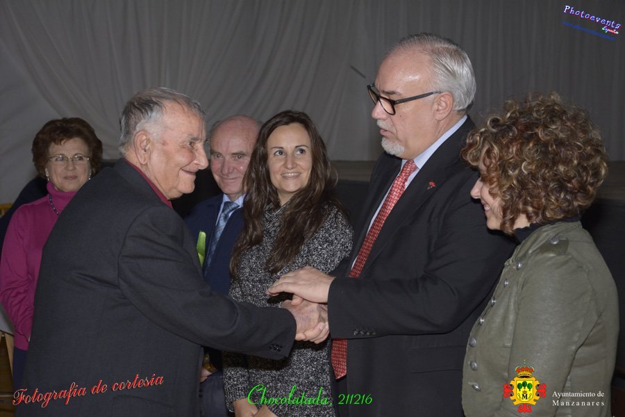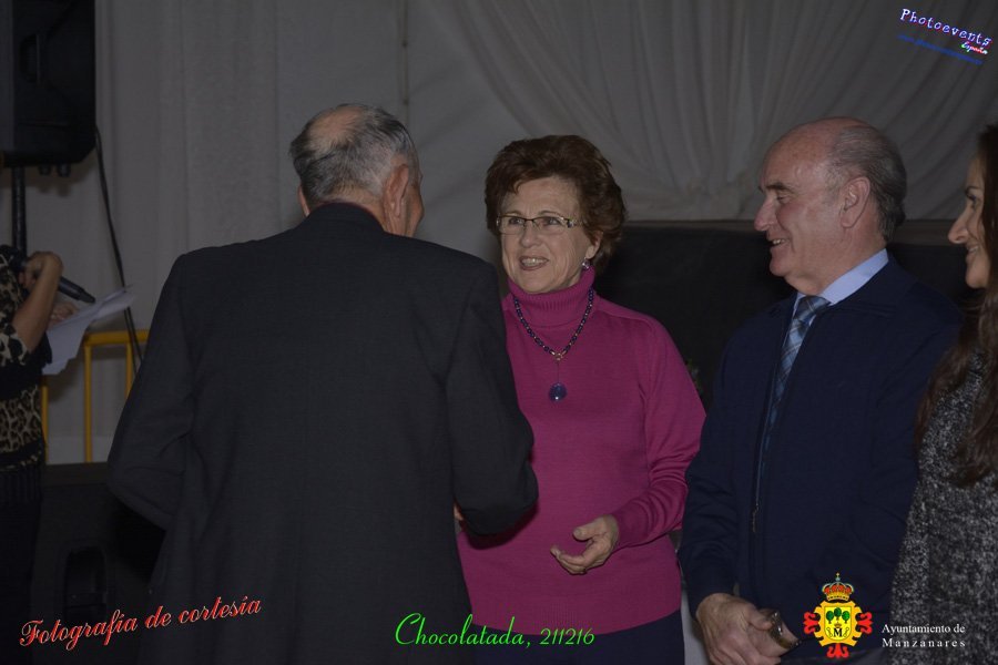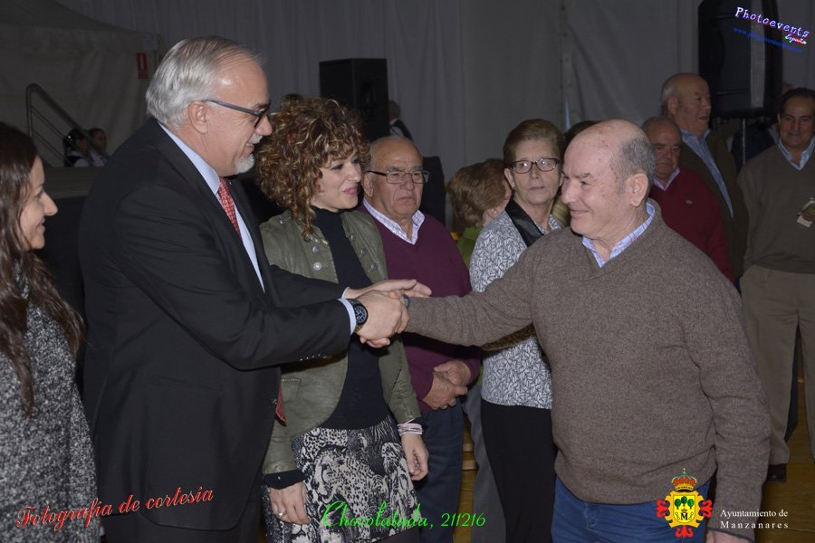 Fotografías realizadas durante la chocolatada y el espectáculo para los mayores de la Manzanares, dicho acto fue presidido por Julíán Nieva Delgado (Alcalde de Manzanares), Beatriz Labian (Concejala de Servicios Sociales) y Prado Zúñiga (Directora provincial de Bienestar Social), los cuales estuvieron acompañados por la directora y trabajadora social del centro de día de Mayores en la localidad. Se aprovecho el momento para realizar públicamente la entrega de premios de los distintos concursos realizados en pasados días, tales como Petanca y Tute por parejas, Parchís, Chinchón, Cinquillo y Ajedrez. El acto estuvo amenizado en todo momento por el grupo de Folklore local Manuel de Falla, el cual se despedía con unos villancicos y dando paso a un poco de baile con pasodobles, donde pudieron bailar los más atrevidos. El acto tuvo lugar el pasado día 21 de Diciembre en la localidad de Manzanares, Ciudad Real.