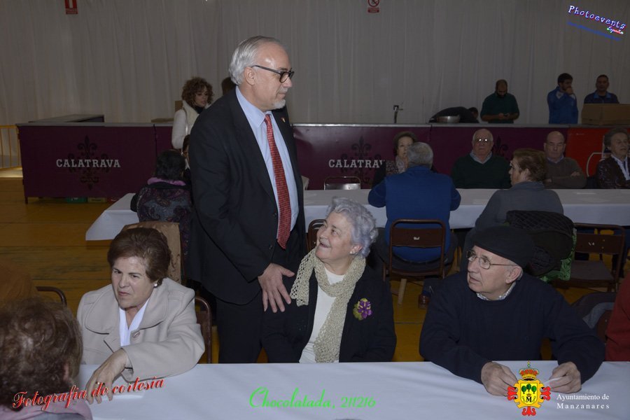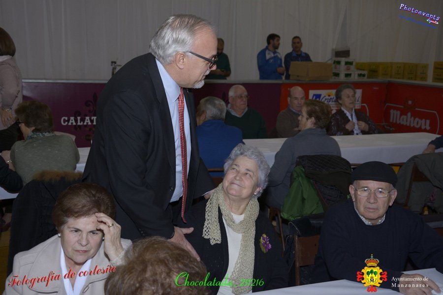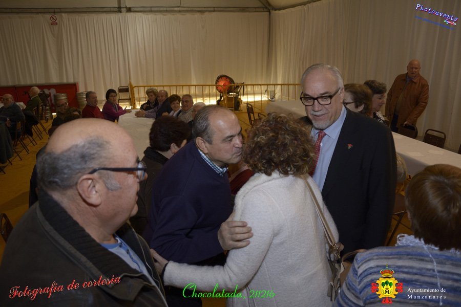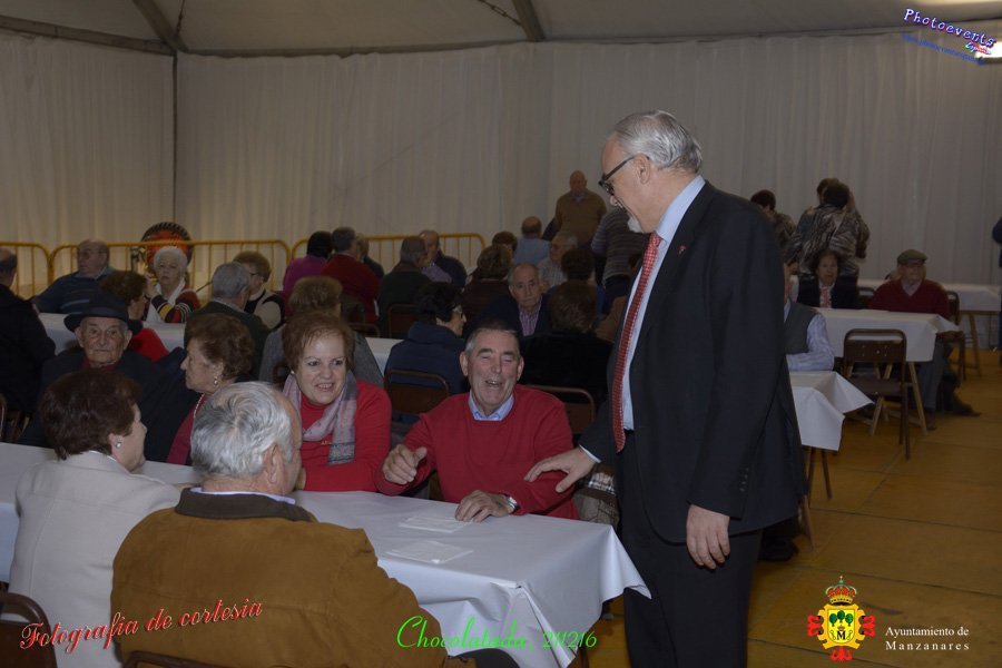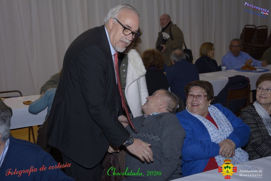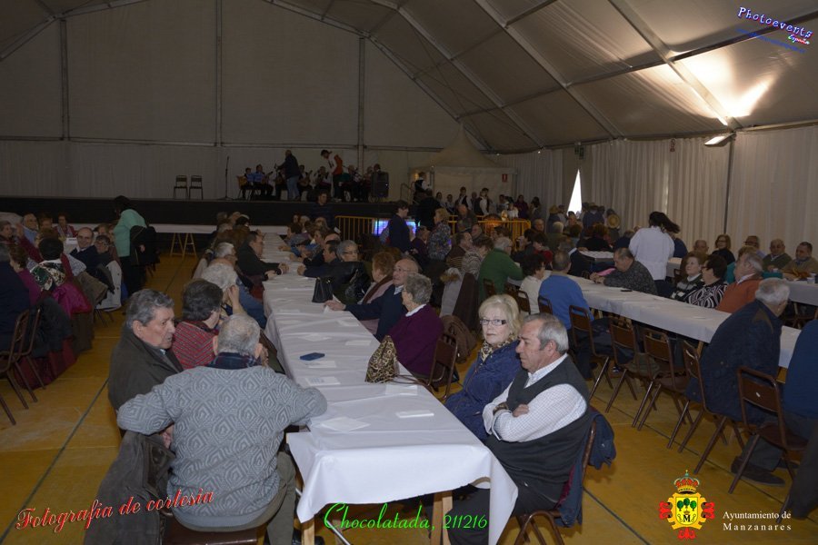Fotografías realizadas durante la chocolatada y el espectáculo para los mayores de la Manzanares, dicho acto fue presidido por Julíán Nieva Delgado (Alcalde de Manzanares), Beatriz Labian (Concejala de Servicios Sociales) y Prado Zúñiga (Directora provincial de Bienestar Social), los cuales estuvieron acompañados por la directora y trabajadora social del centro de día de Mayores en la localidad. Se aprovecho el momento para realizar públicamente la entrega de premios de los distintos concursos realizados en pasados días, tales como Petanca y Tute por parejas, Parchís, Chinchón, Cinquillo y Ajedrez. El acto estuvo amenizado en todo momento por el grupo de Folklore local Manuel de Falla, el cual se despedía con unos villancicos y dando paso a un poco de baile con pasodobles, donde pudieron bailar los más atrevidos. El acto tuvo lugar el pasado día 21 de Diciembre en la localidad de Manzanares, Ciudad Real.