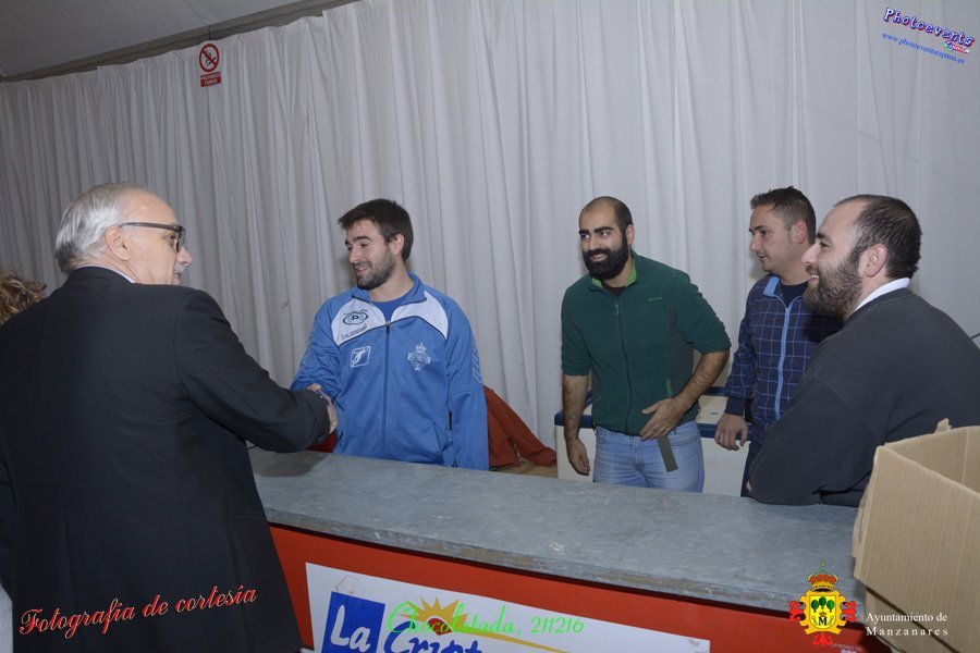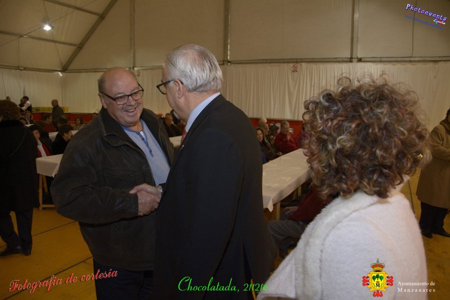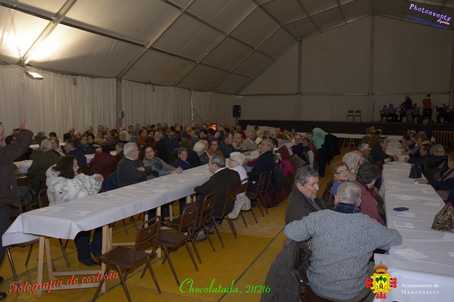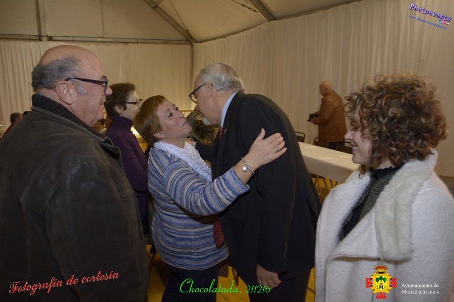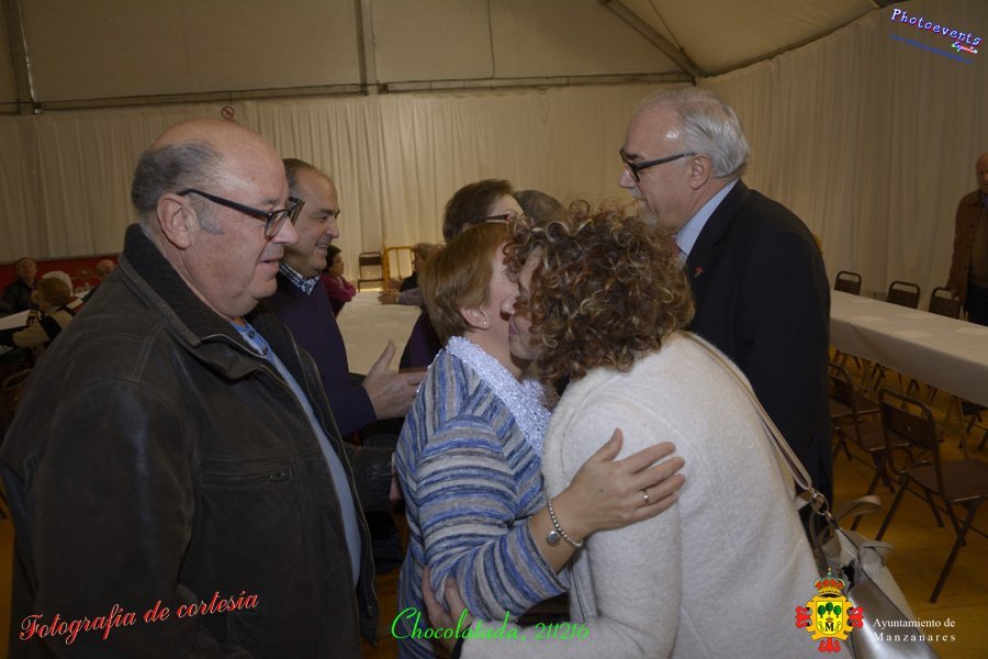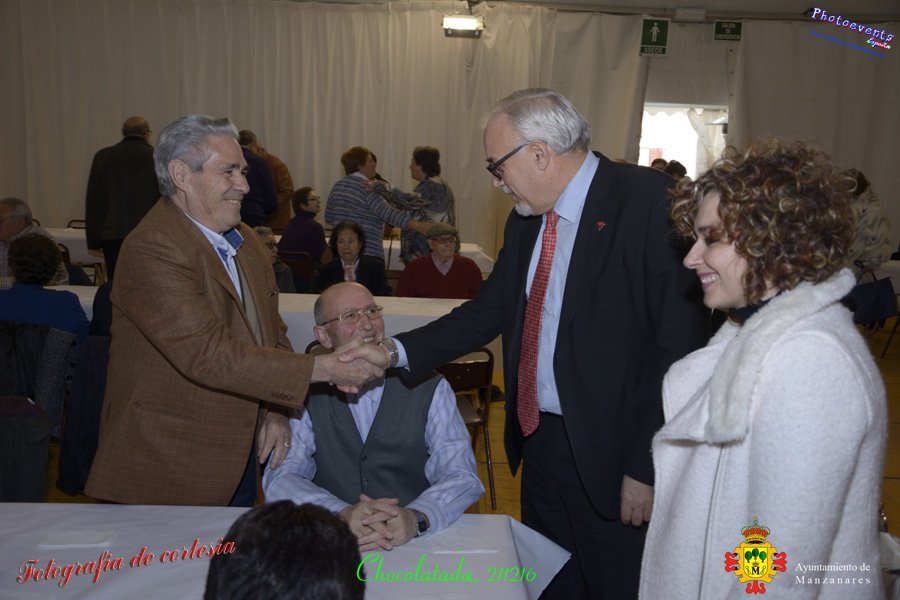 Fotografías realizadas durante la chocolatada y el espectáculo para los mayores de la Manzanares, dicho acto fue presidido por Julíán Nieva Delgado (Alcalde de Manzanares), Beatriz Labian (Concejala de Servicios Sociales) y Prado Zúñiga (Directora provincial de Bienestar Social), los cuales estuvieron acompañados por la directora y trabajadora social del centro de día de Mayores en la localidad. Se aprovecho el momento para realizar públicamente la entrega de premios de los distintos concursos realizados en pasados días, tales como Petanca y Tute por parejas, Parchís, Chinchón, Cinquillo y Ajedrez. El acto estuvo amenizado en todo momento por el grupo de Folklore local Manuel de Falla, el cual se despedía con unos villancicos y dando paso a un poco de baile con pasodobles, donde pudieron bailar los más atrevidos. El acto tuvo lugar el pasado día 21 de Diciembre en la localidad de Manzanares, Ciudad Real.