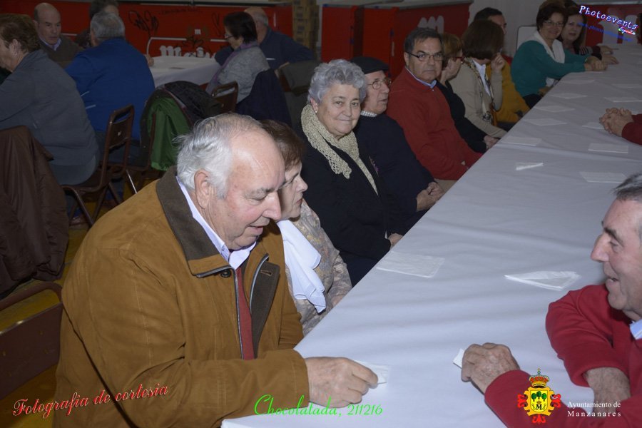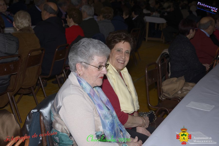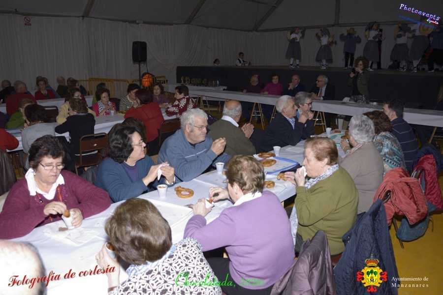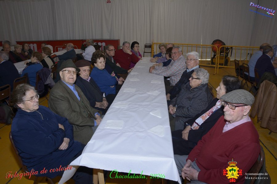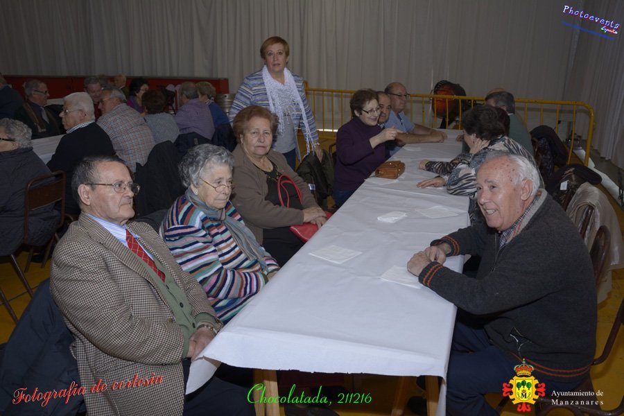 Fotografías realizadas durante la chocolatada y el espectáculo para los mayores de la Manzanares, dicho acto fue presidido por Julíán Nieva Delgado (Alcalde de Manzanares), Beatriz Labian (Concejala de Servicios Sociales) y Prado Zúñiga (Directora provincial de Bienestar Social), los cuales estuvieron acompañados por la directora y trabajadora social del centro de día de Mayores en la localidad. Se aprovecho el momento para realizar públicamente la entrega de premios de los distintos concursos realizados en pasados días, tales como Petanca y Tute por parejas, Parchís, Chinchón, Cinquillo y Ajedrez. El acto estuvo amenizado en todo momento por el grupo de Folklore local Manuel de Falla, el cual se despedía con unos villancicos y dando paso a un poco de baile con pasodobles, donde pudieron bailar los más atrevidos. El acto tuvo lugar el pasado día 21 de Diciembre en la localidad de Manzanares, Ciudad Real.