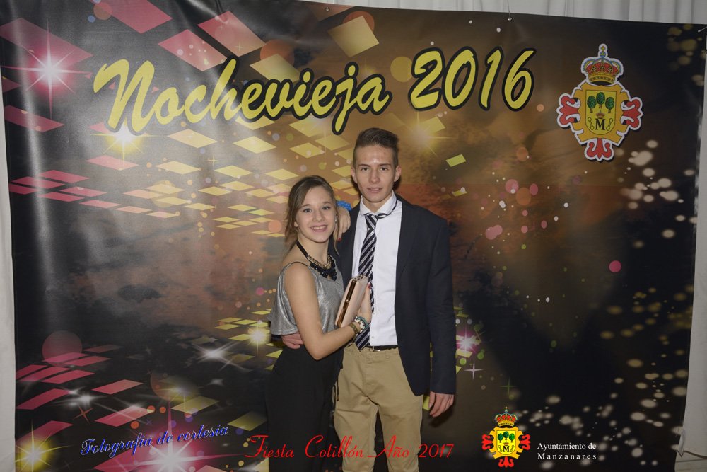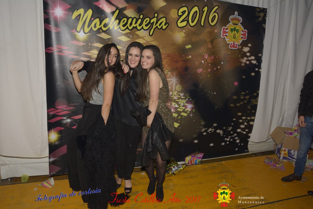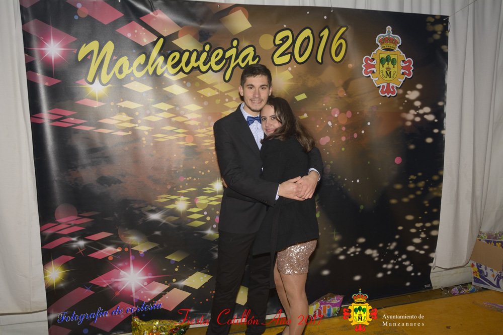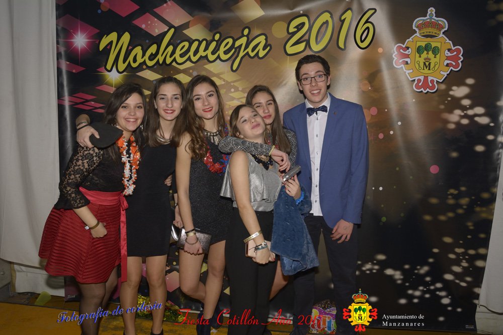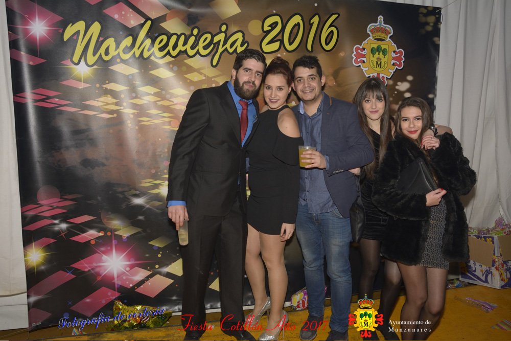 Fotografías realizadas durante la fiesta cotillón para recibir el nuevo año bailando a ritmo de discomovil, en la Pergola durante la madrugada del 1 de Enero, con motivo de las fiestas Navideñas 2016 de la localidad de Manzanares, Ciudad Real.