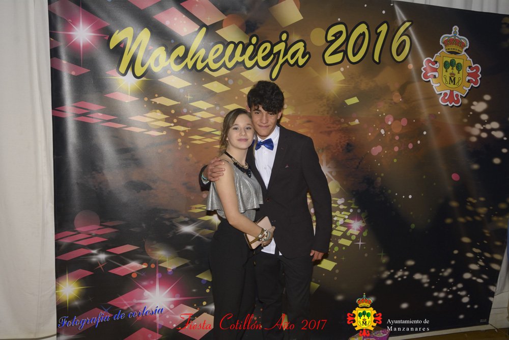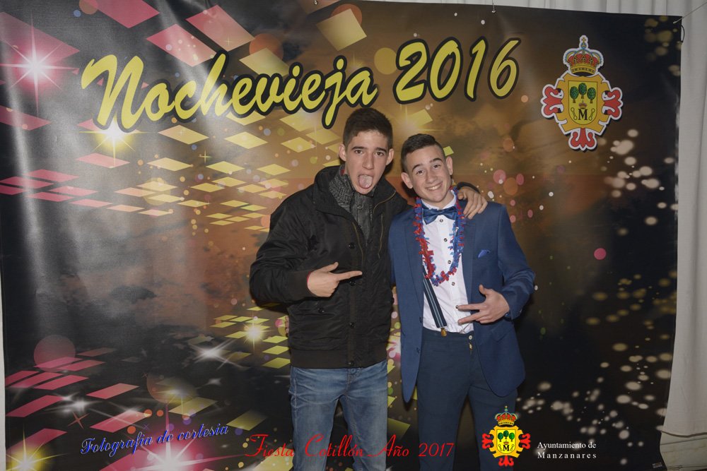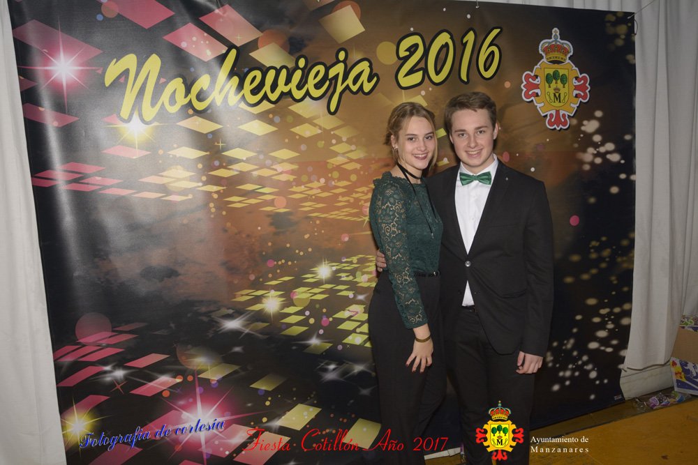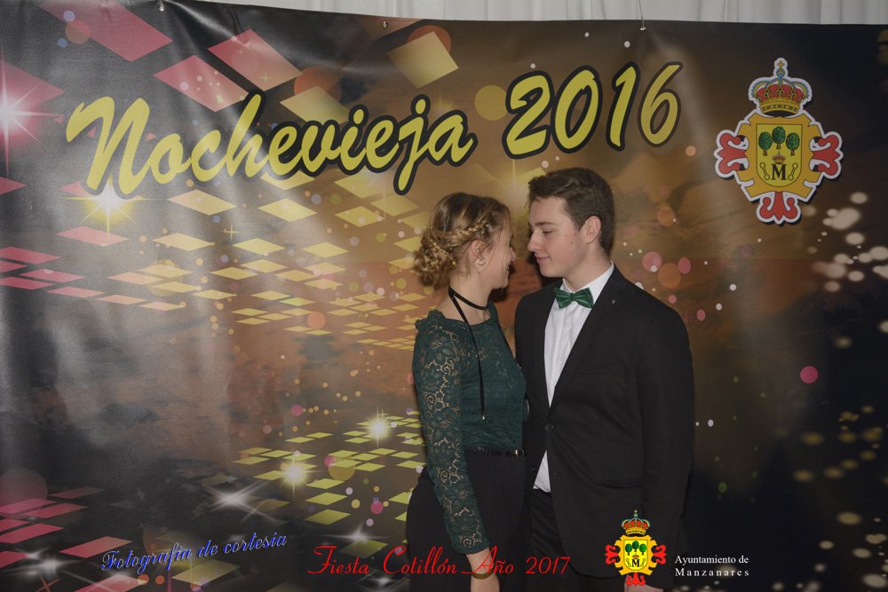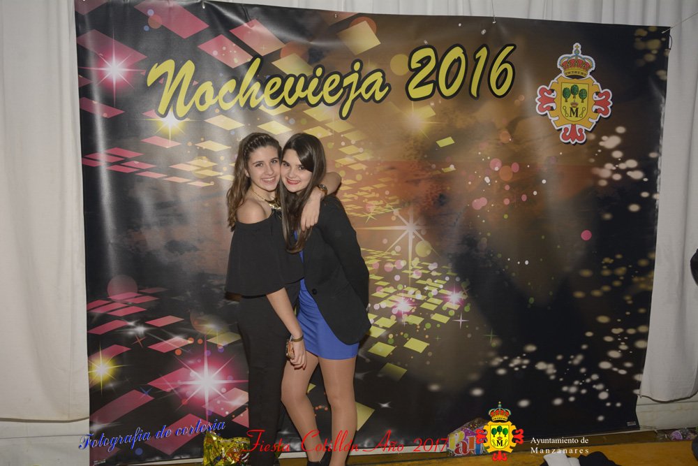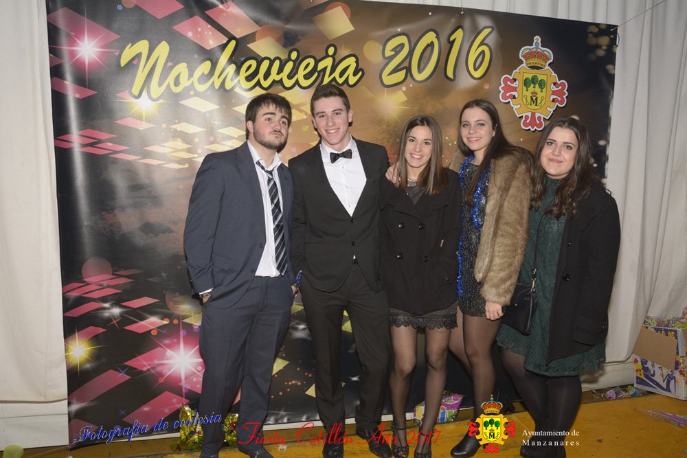 Fotografías realizadas durante la fiesta cotillón para recibir el nuevo año bailando a ritmo de discomovil, en la Pergola durante la madrugada del 1 de Enero, con motivo de las fiestas Navideñas 2016 de la localidad de Manzanares, Ciudad Real.