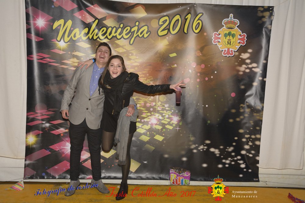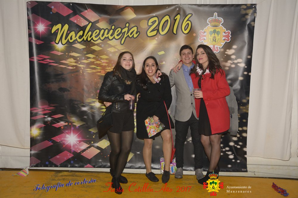 Fotografías realizadas durante la fiesta cotillón para recibir el nuevo año bailando a ritmo de discomovil, en la Pergola durante la madrugada del 1 de Enero, con motivo de las fiestas Navideñas 2016 de la localidad de Manzanares, Ciudad Real.