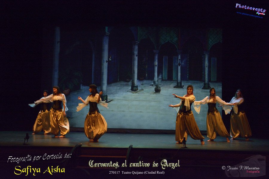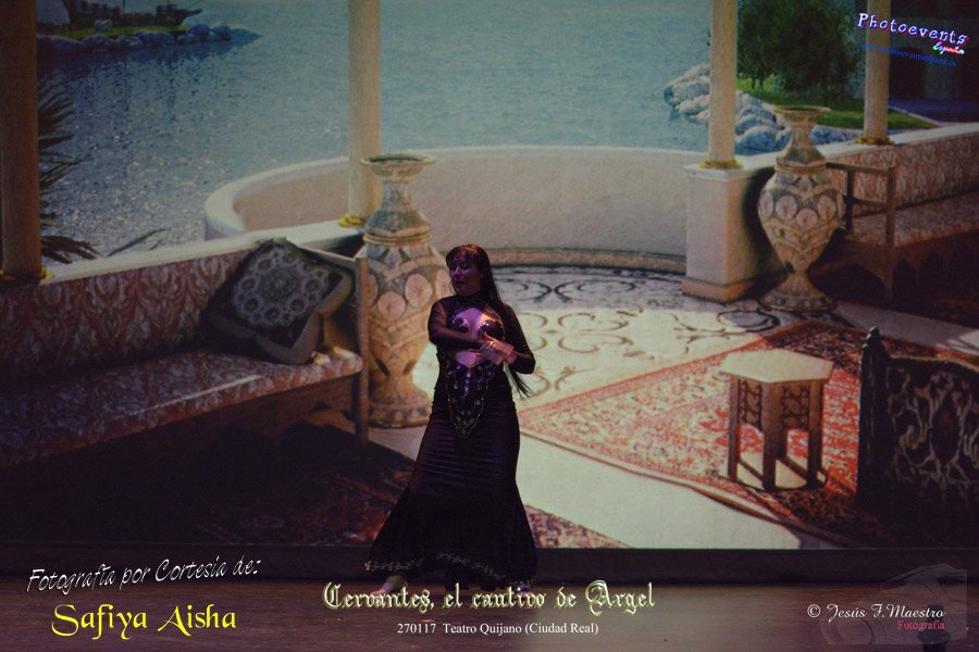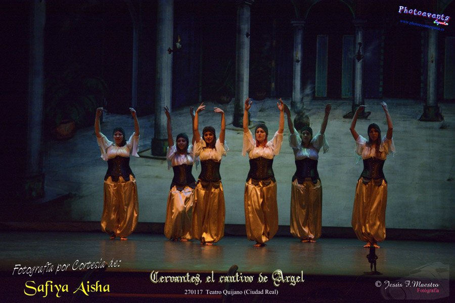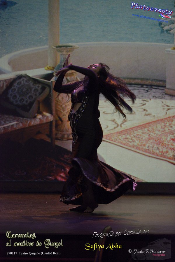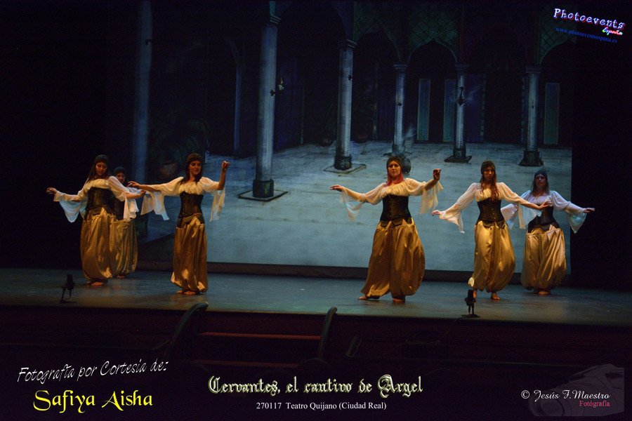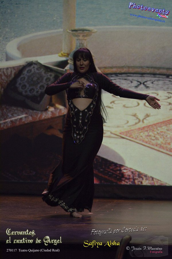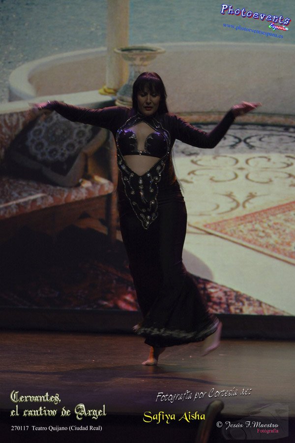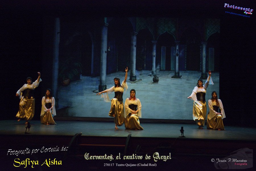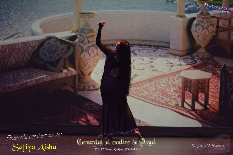 Fotografías del espectáculo "Cervantes, el cautivo de Argel", realizado por Safiya Aisha junto con la compañía de danza oriental Saisha Danza, habiendo sido reconocido y incluido en el programa oficial 400 Cervantes del Ministerio de Cultura. Con este espectáculo podemos decir que se pone el broce final al año de Cervantes, dicho espectáculo tuvo lugar el pasado día 27 de Enero en el teatro Quijano, (Ciudad Real)