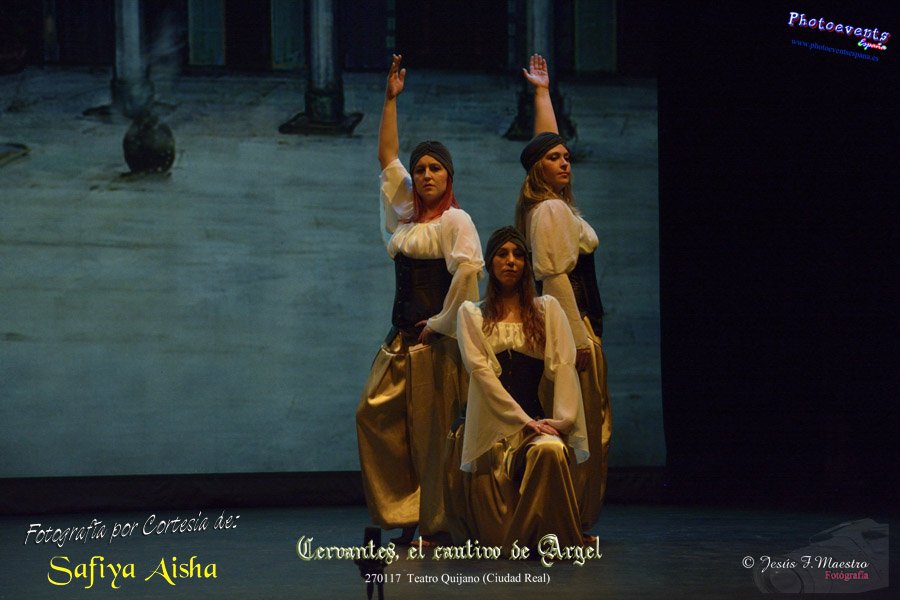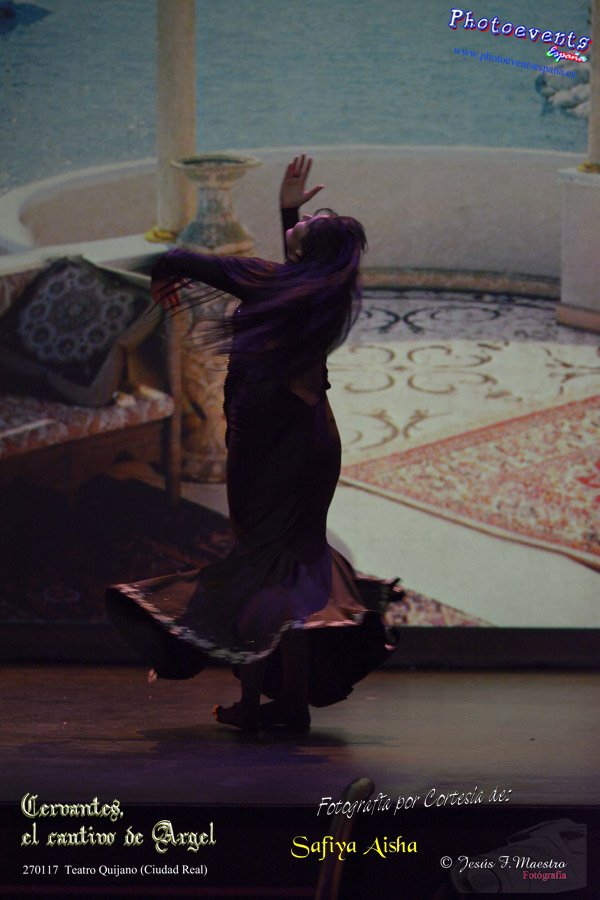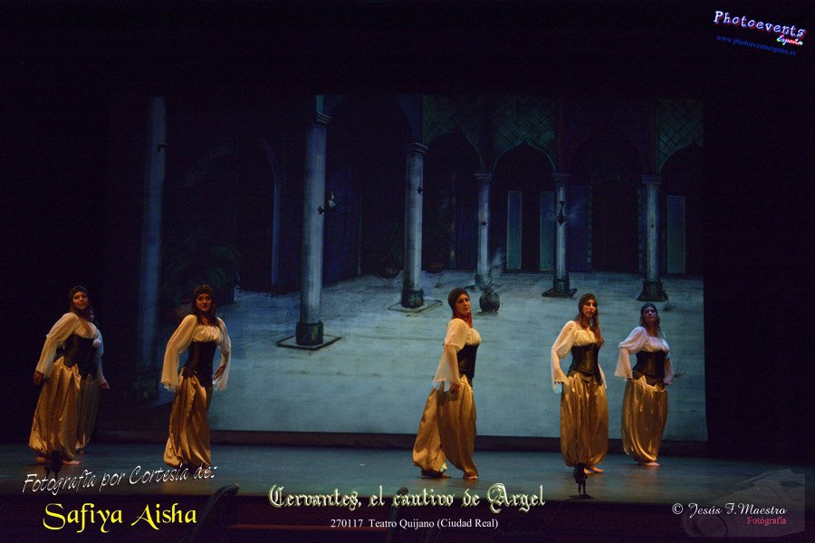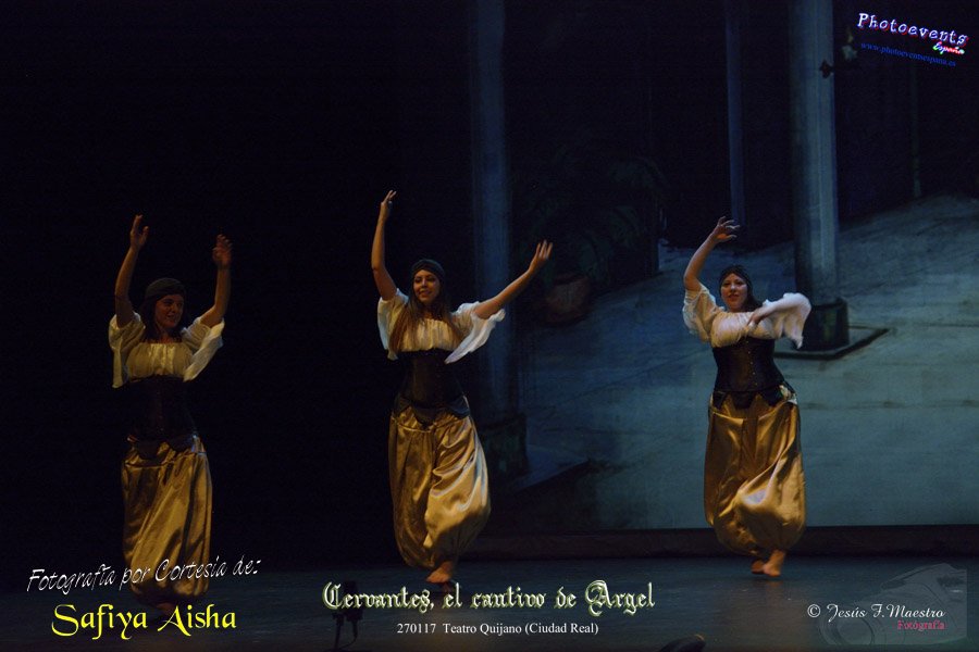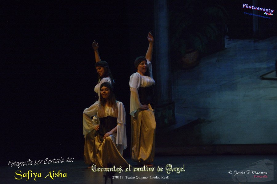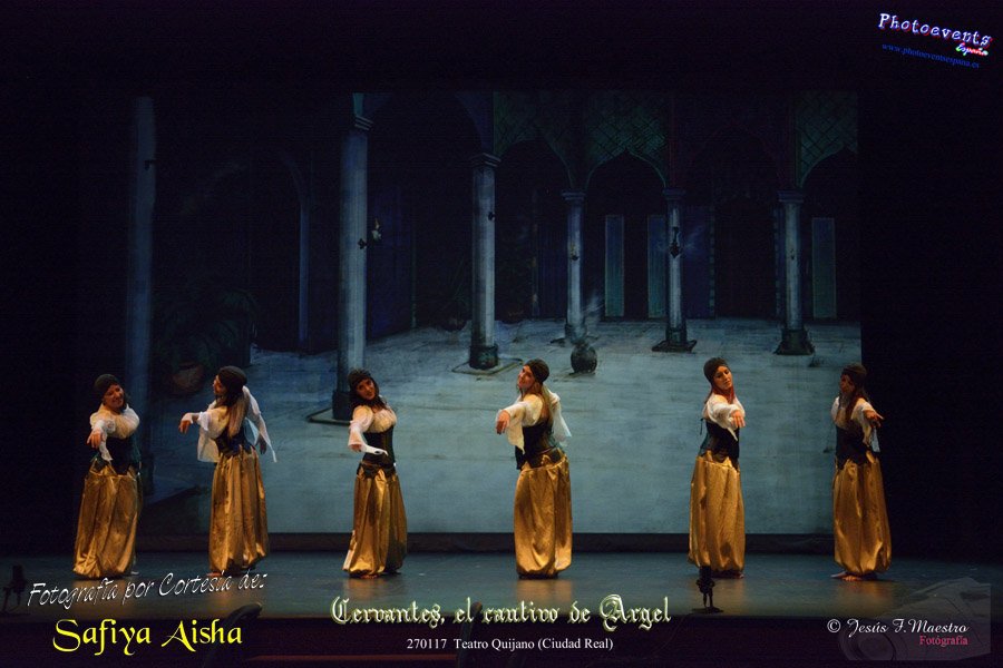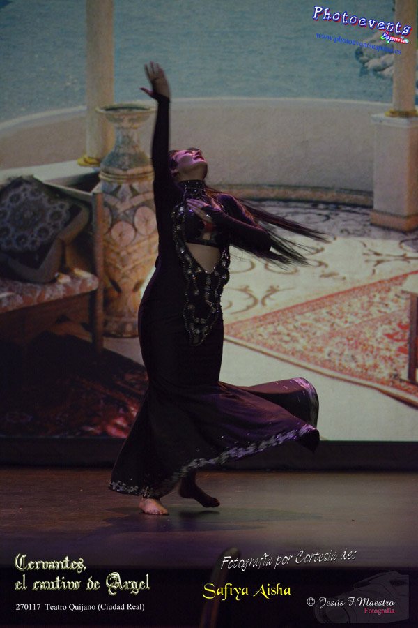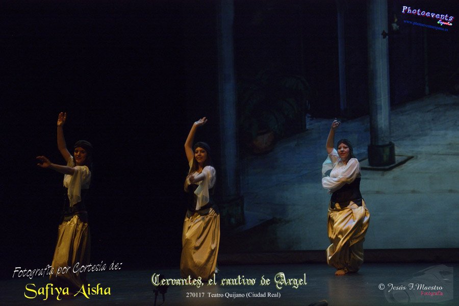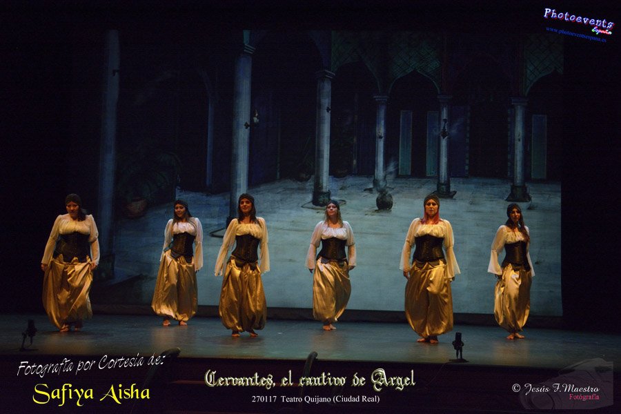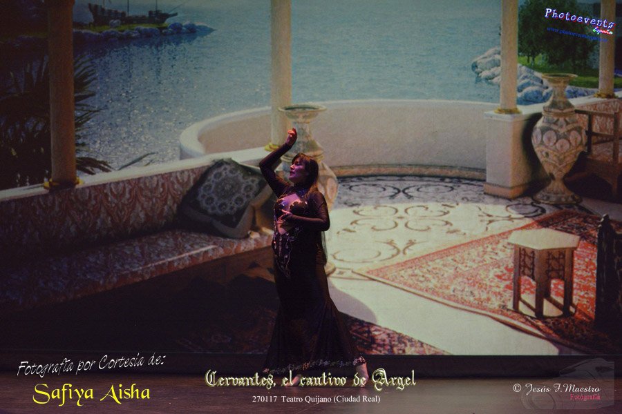 Fotografías del espectáculo "Cervantes, el cautivo de Argel", realizado por Safiya Aisha junto con la compañía de danza oriental Saisha Danza, habiendo sido reconocido y incluido en el programa oficial 400 Cervantes del Ministerio de Cultura. Con este espectáculo podemos decir que se pone el broce final al año de Cervantes, dicho espectáculo tuvo lugar el pasado día 27 de Enero en el teatro Quijano, (Ciudad Real)