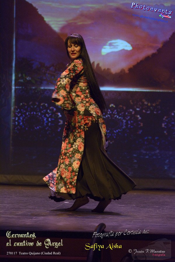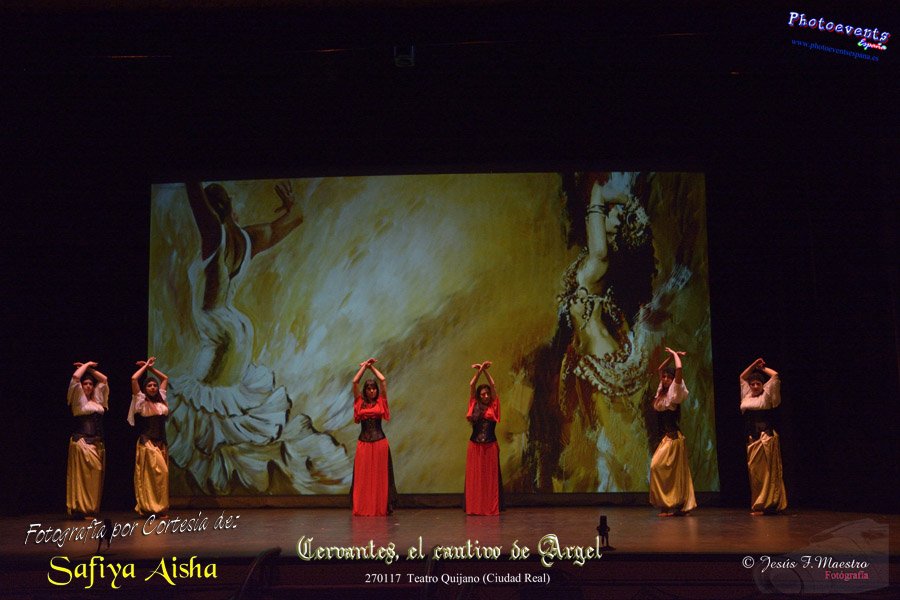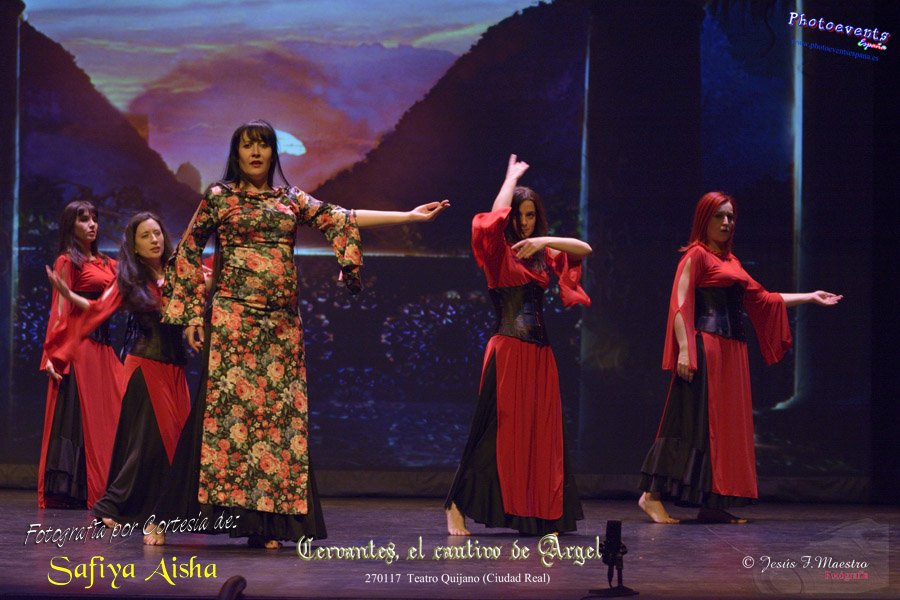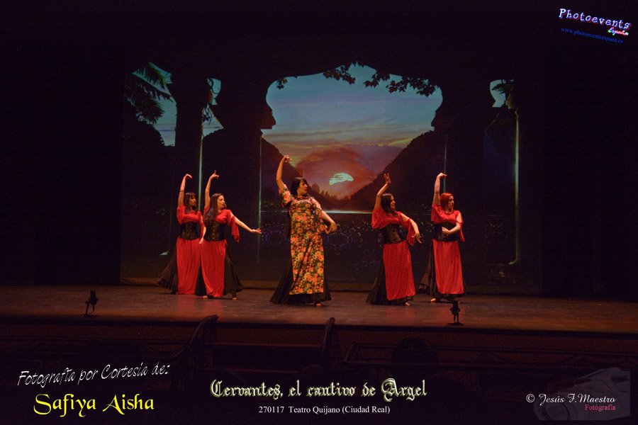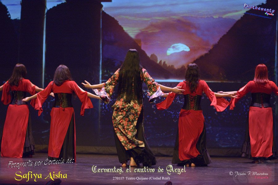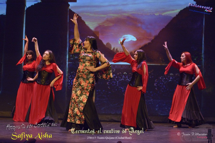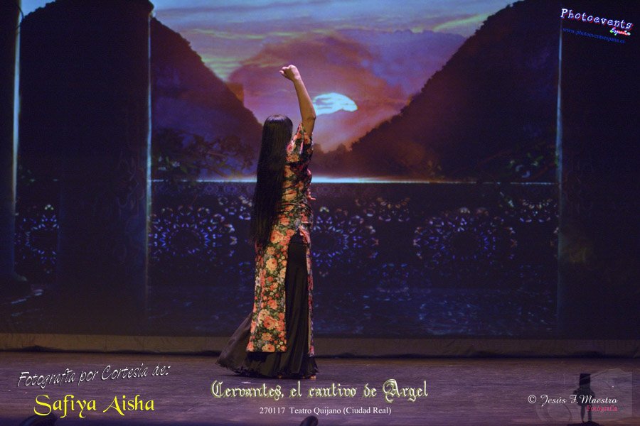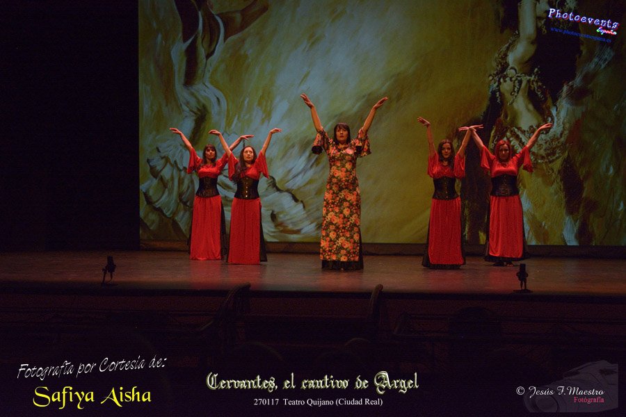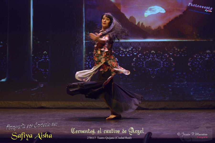 Fotografías del espectáculo "Cervantes, el cautivo de Argel", realizado por Safiya Aisha junto con la compañía de danza oriental Saisha Danza, habiendo sido reconocido y incluido en el programa oficial 400 Cervantes del Ministerio de Cultura. Con este espectáculo podemos decir que se pone el broce final al año de Cervantes, dicho espectáculo tuvo lugar el pasado día 27 de Enero en el teatro Quijano, (Ciudad Real)