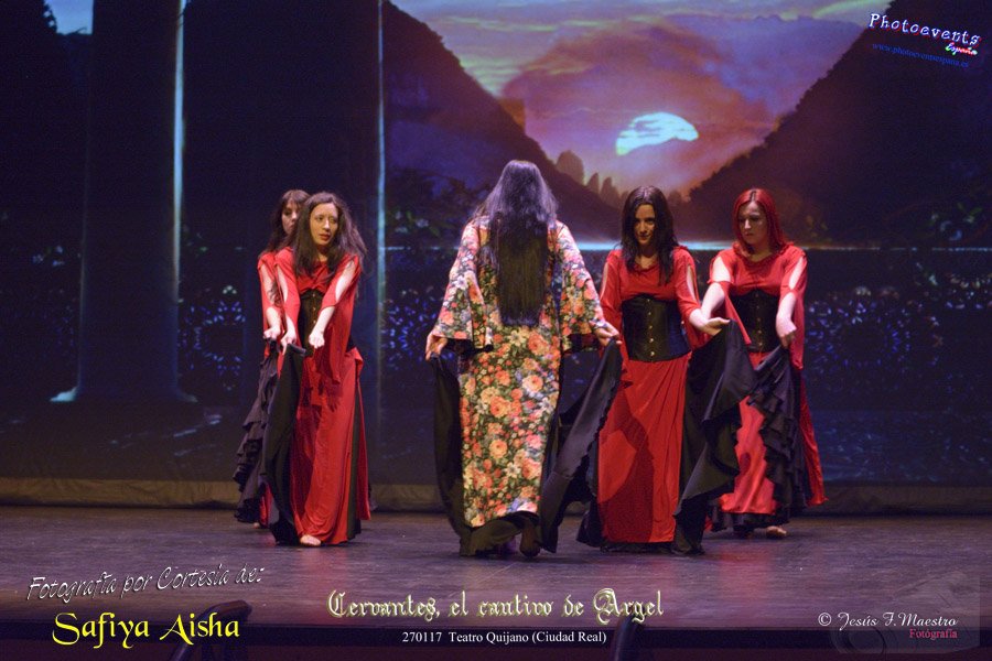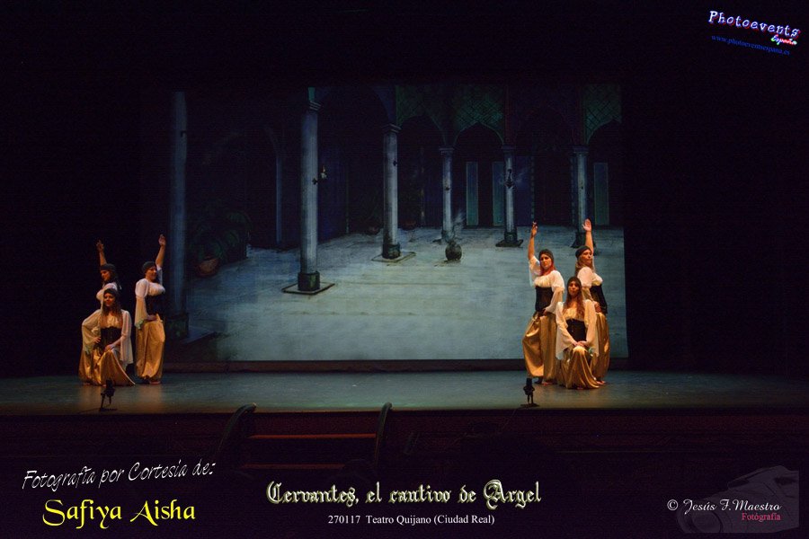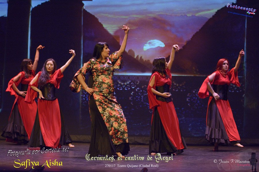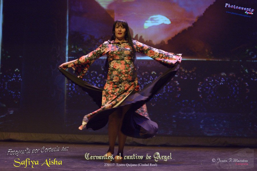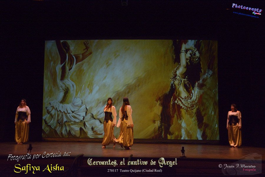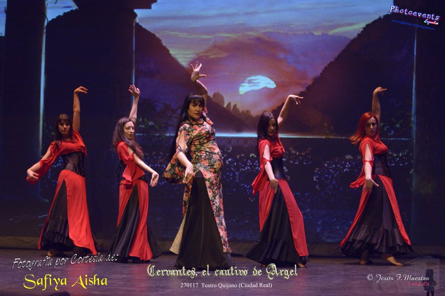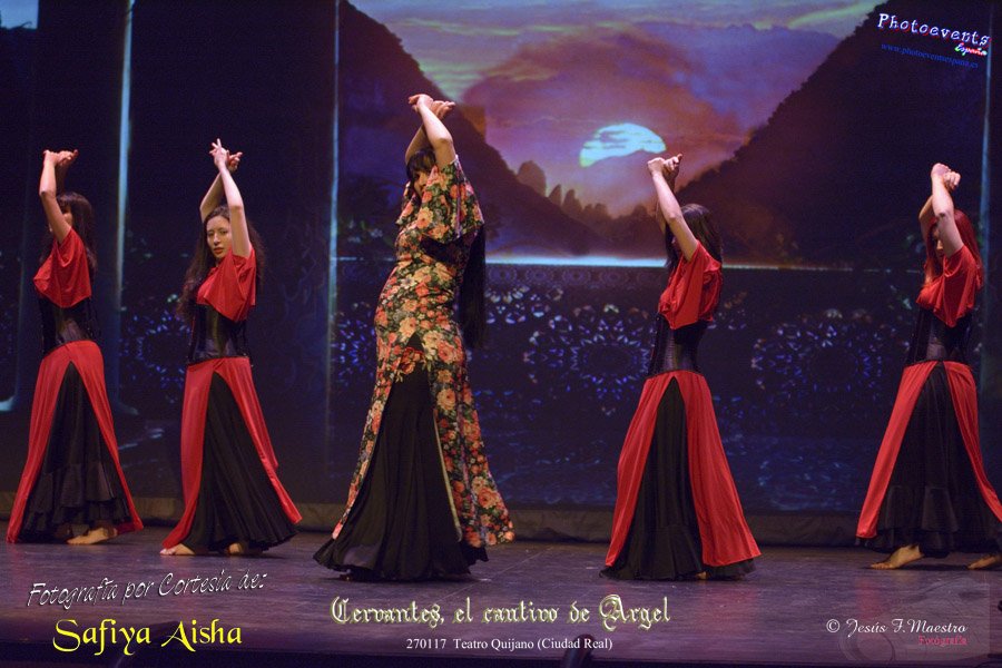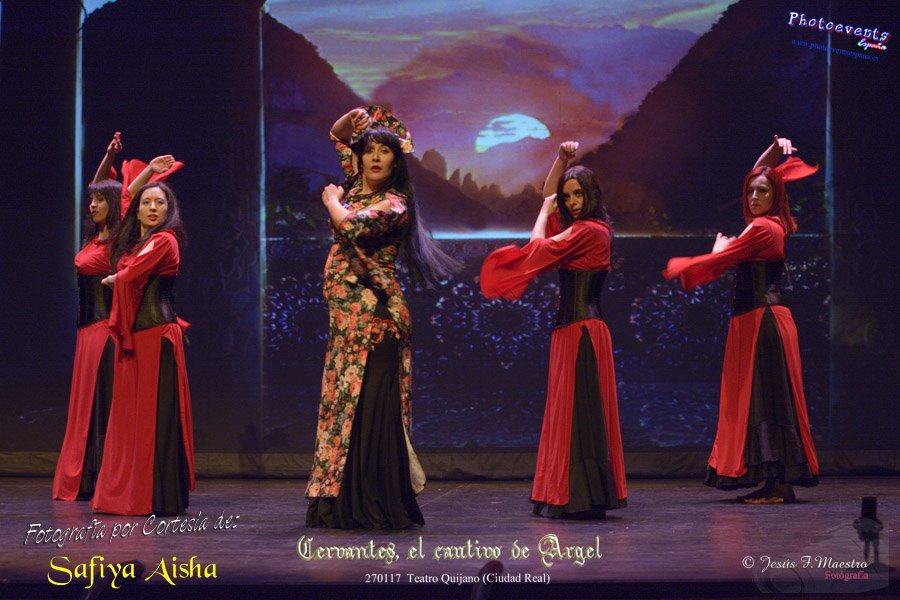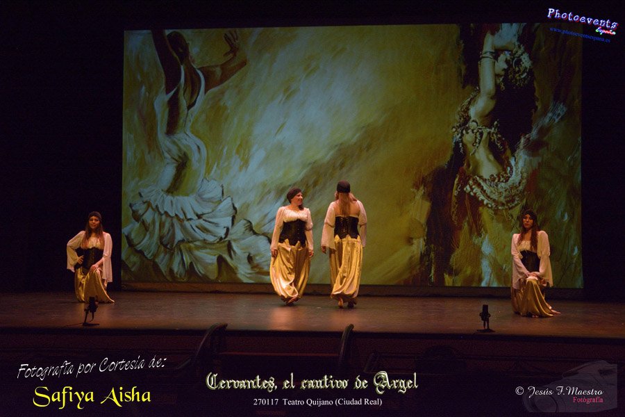 Fotografías del espectáculo "Cervantes, el cautivo de Argel", realizado por Safiya Aisha junto con la compañía de danza oriental Saisha Danza, habiendo sido reconocido y incluido en el programa oficial 400 Cervantes del Ministerio de Cultura. Con este espectáculo podemos decir que se pone el broce final al año de Cervantes, dicho espectáculo tuvo lugar el pasado día 27 de Enero en el teatro Quijano, (Ciudad Real)