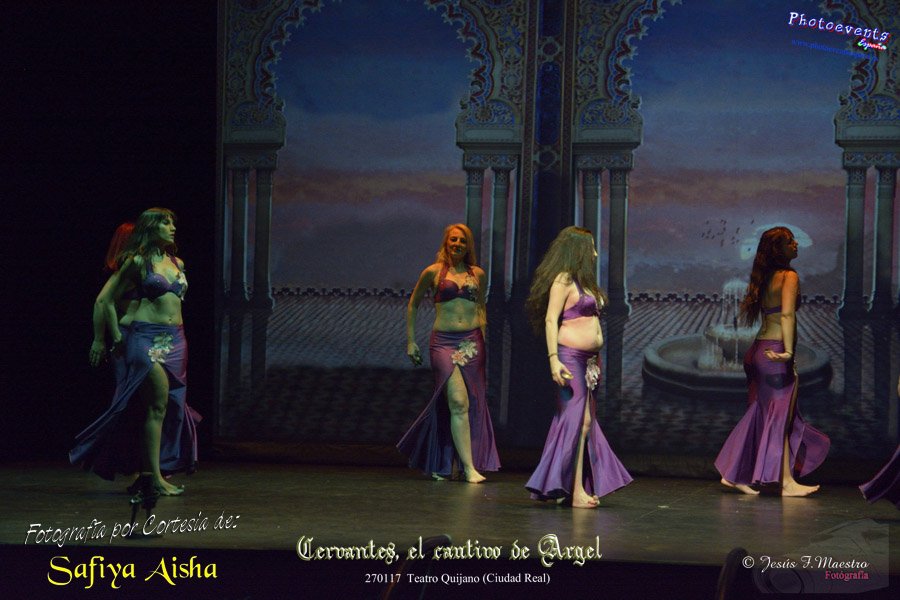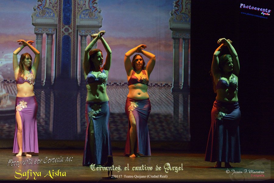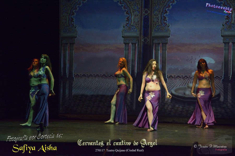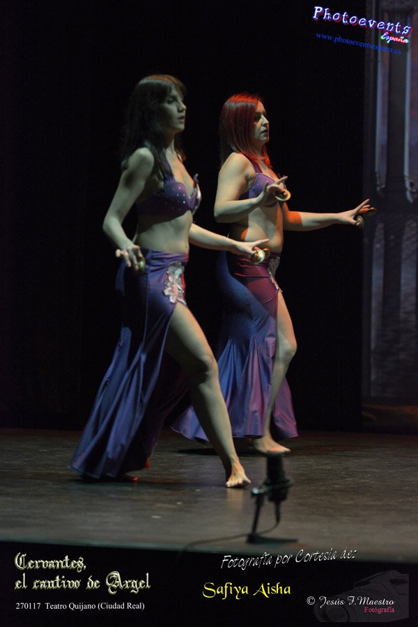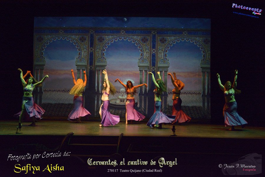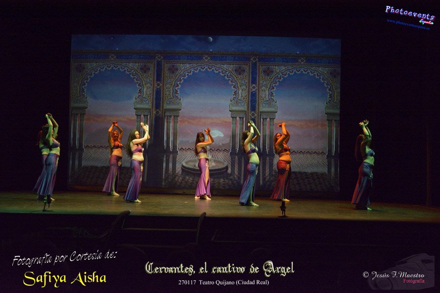 Fotografías del espectáculo "Cervantes, el cautivo de Argel", realizado por Safiya Aisha junto con la compañía de danza oriental Saisha Danza, habiendo sido reconocido y incluido en el programa oficial 400 Cervantes del Ministerio de Cultura. Con este espectáculo podemos decir que se pone el broce final al año de Cervantes, dicho espectáculo tuvo lugar el pasado día 27 de Enero en el teatro Quijano, (Ciudad Real)