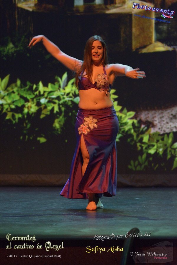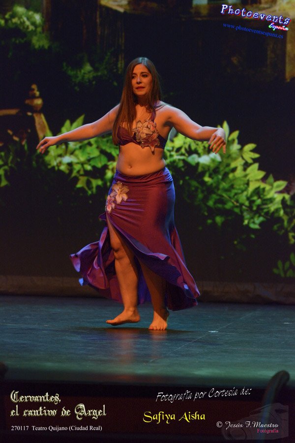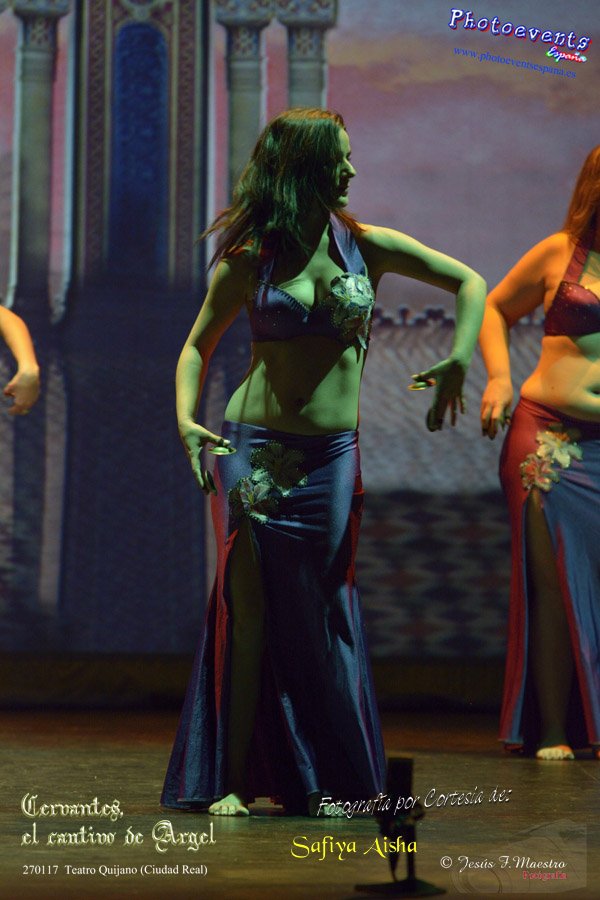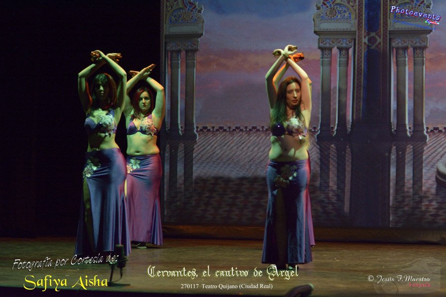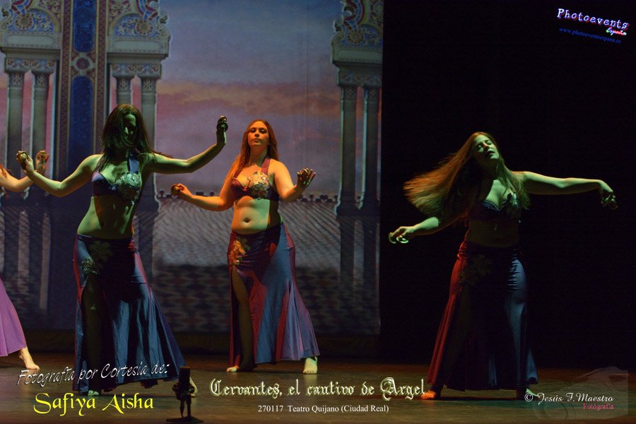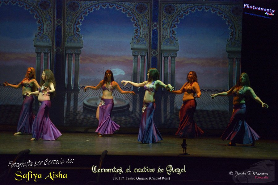 Fotografías del espectáculo "Cervantes, el cautivo de Argel", realizado por Safiya Aisha junto con la compañía de danza oriental Saisha Danza, habiendo sido reconocido y incluido en el programa oficial 400 Cervantes del Ministerio de Cultura. Con este espectáculo podemos decir que se pone el broce final al año de Cervantes, dicho espectáculo tuvo lugar el pasado día 27 de Enero en el teatro Quijano, (Ciudad Real)