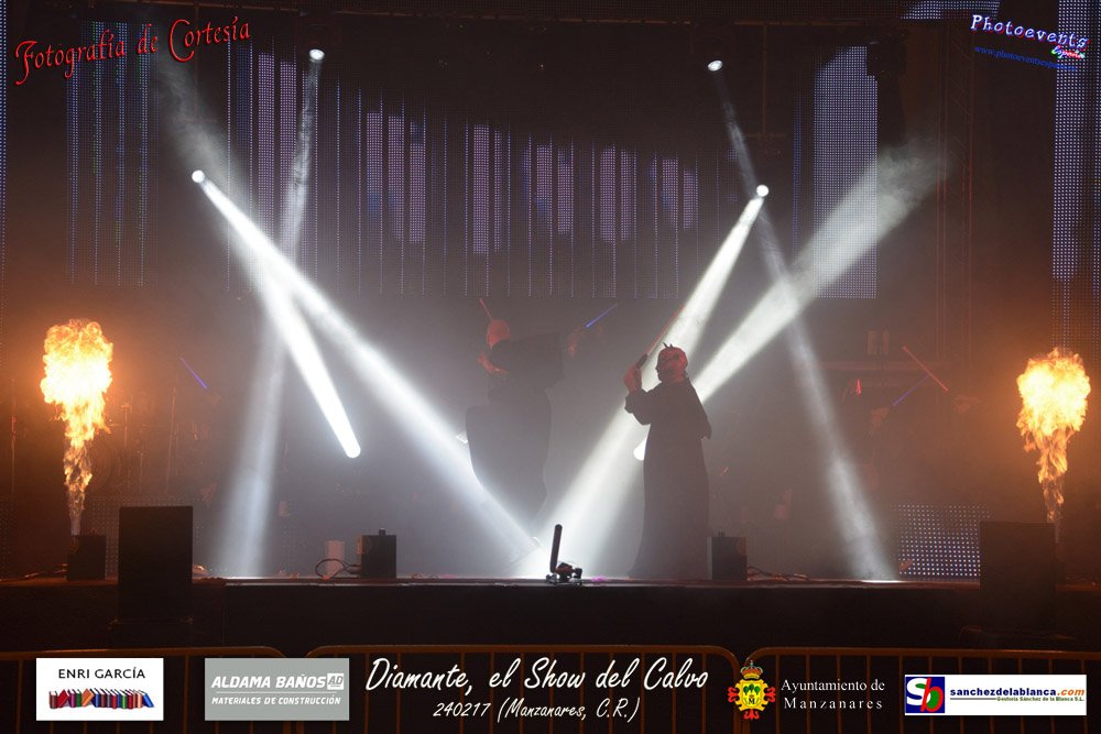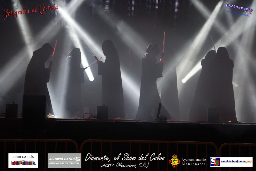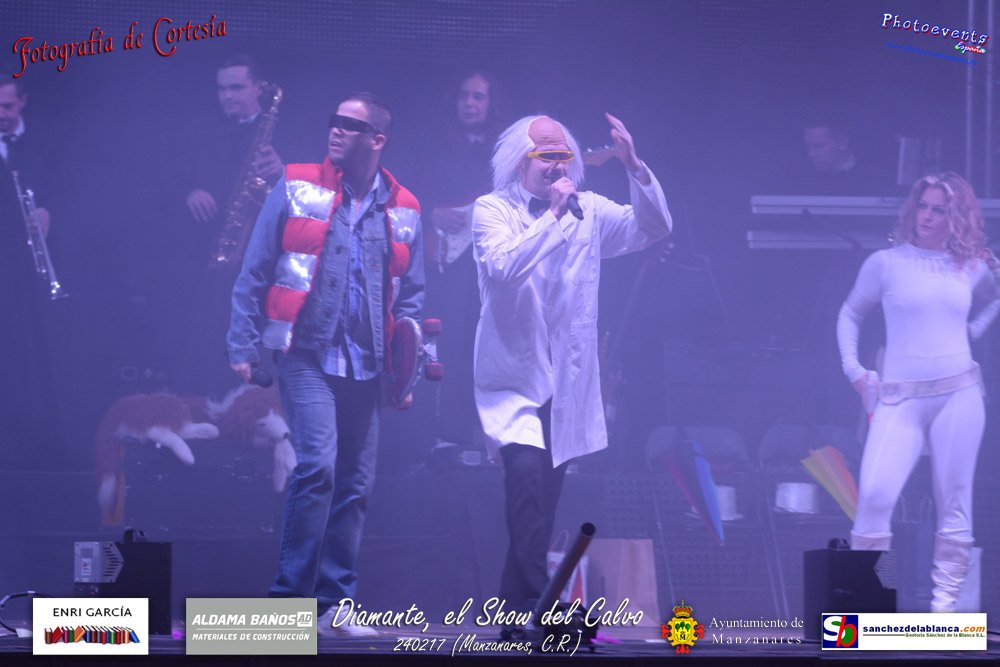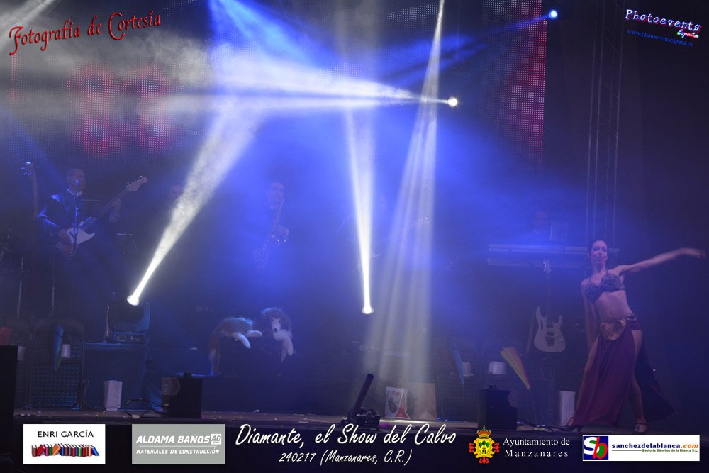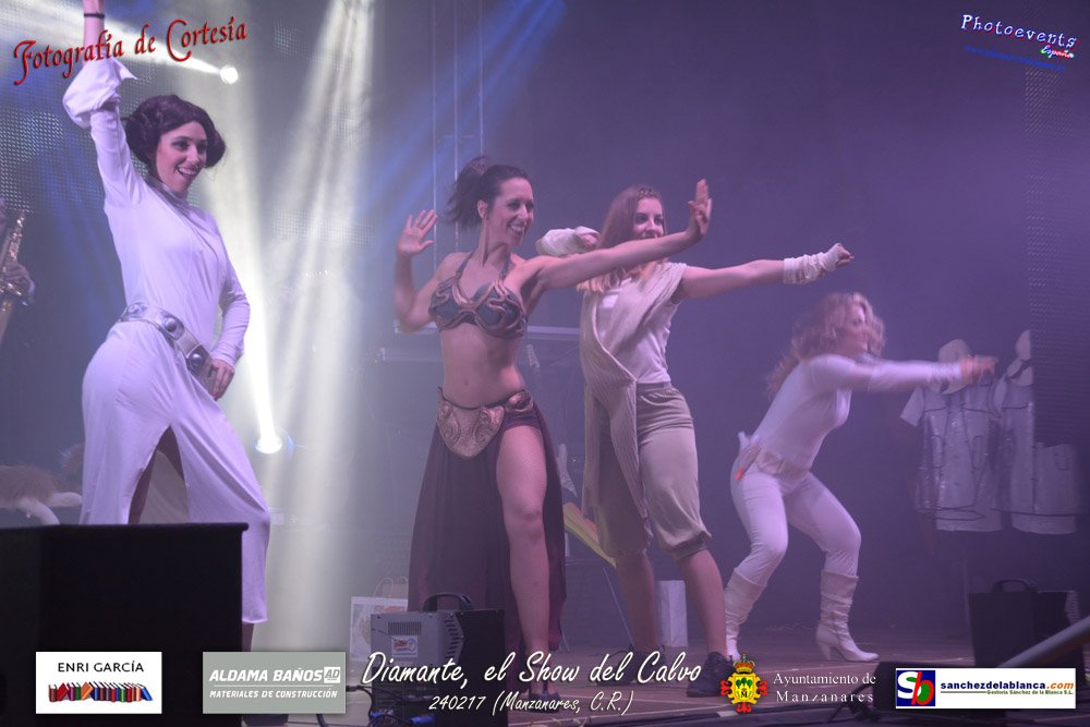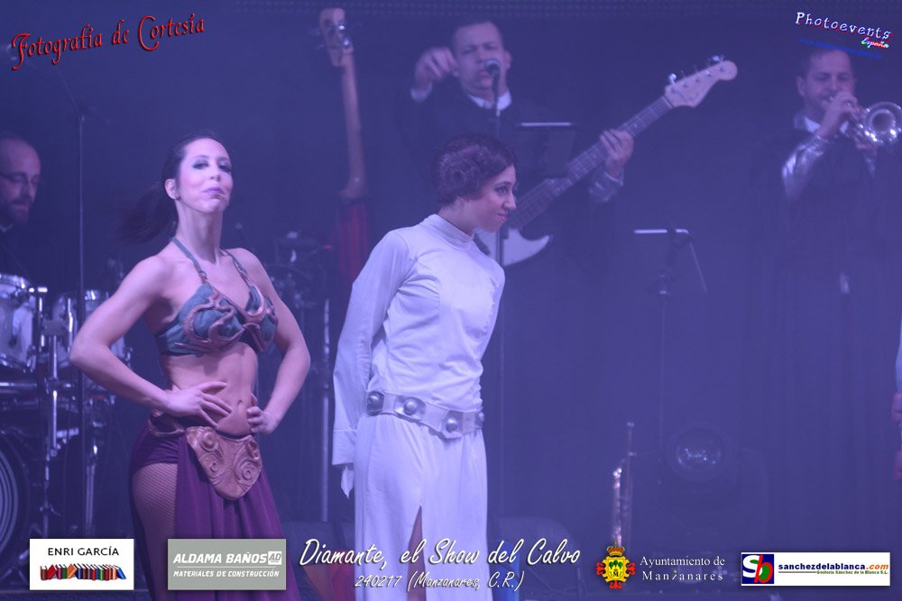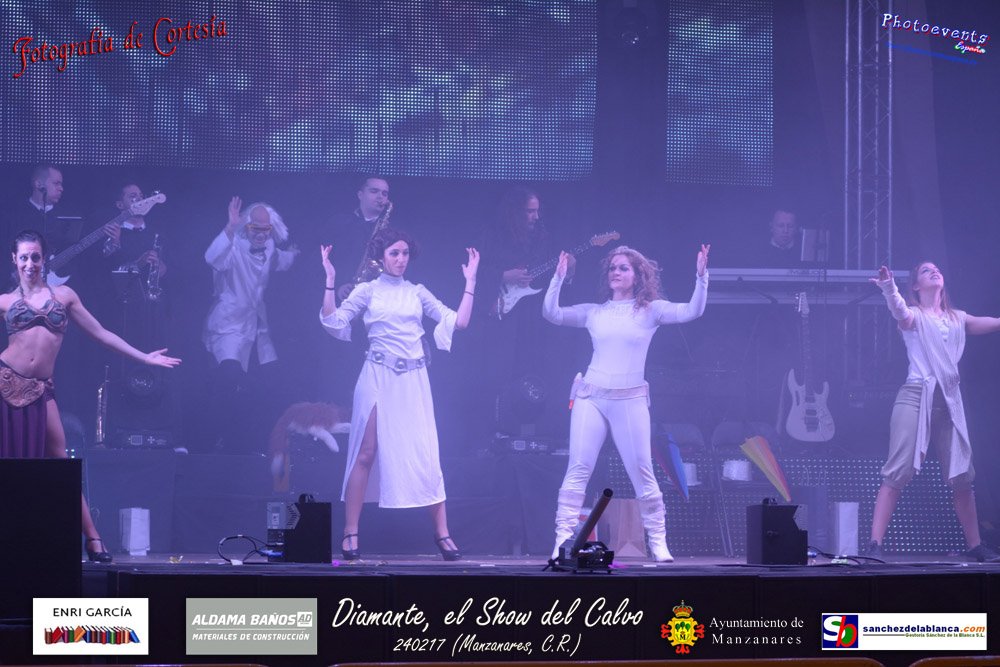 Fotografías realizadas durante parte de la actuación de la orquesta Diamante con el Show del Calvo, haciendo un recorrido sobre las distintas bandas sonoras de peliculas conocidas como La Guerra de las Galaxias, Cantando bajo la lluvia o Pretty Woman entre otras, haciendo bailar y disfrutar a los asistentes. El espectáculo tenía lugar pasado el 24 de febrero en la localidad de Manzanares , (Ciudad Real).