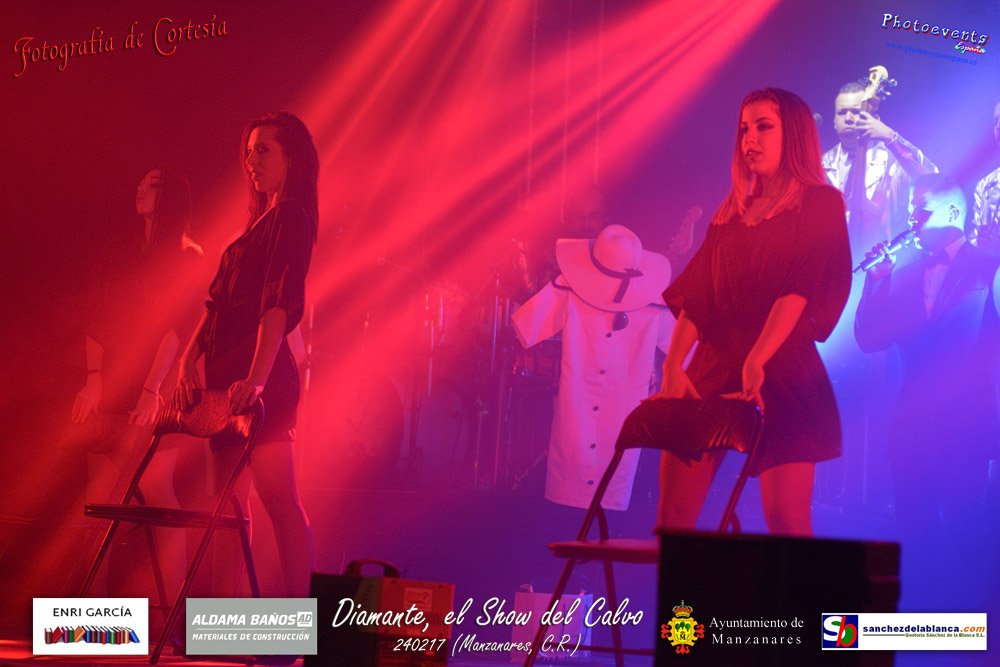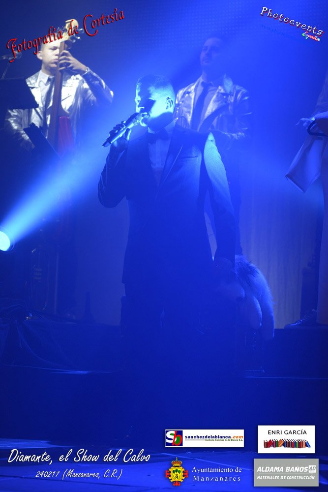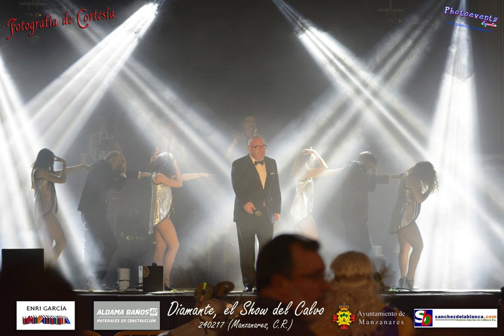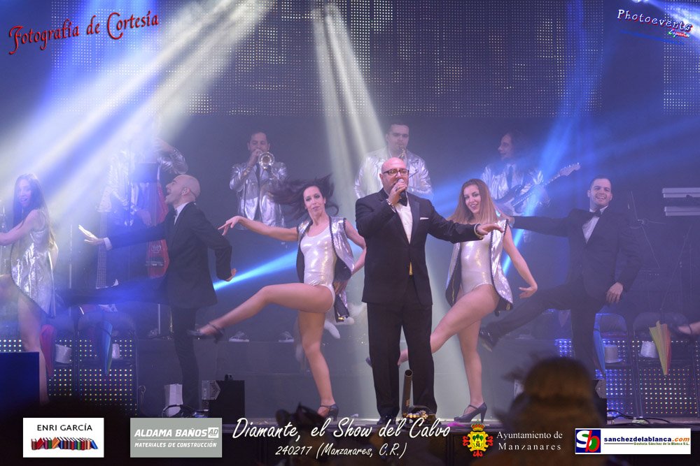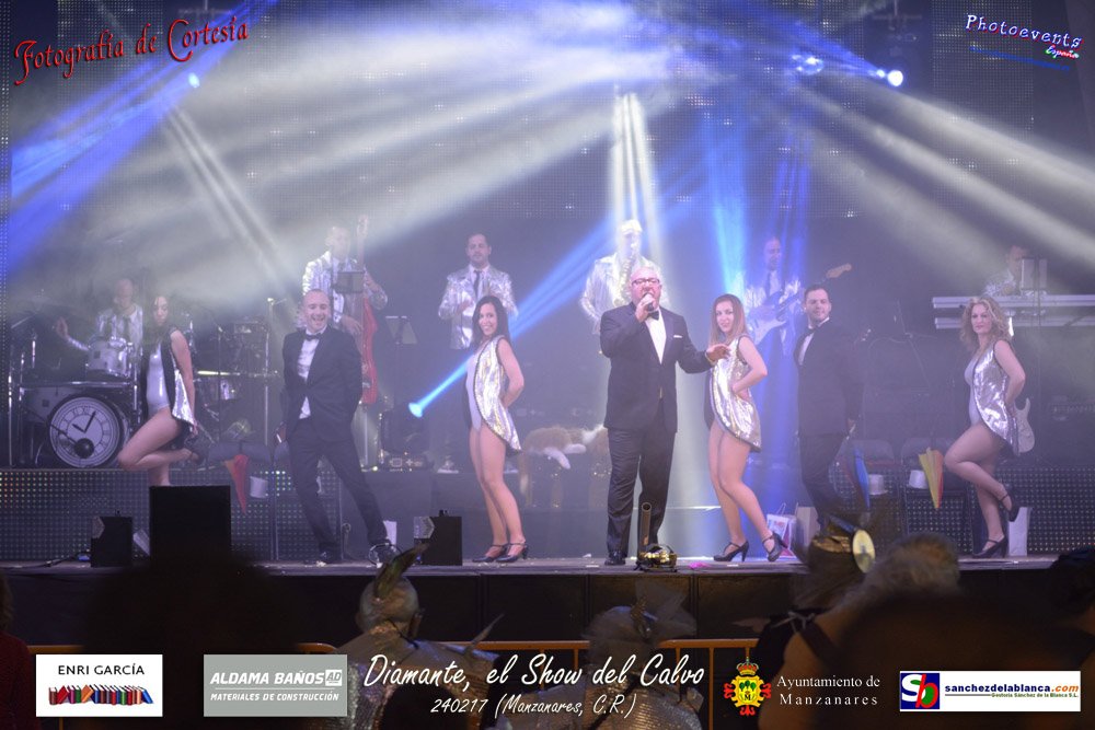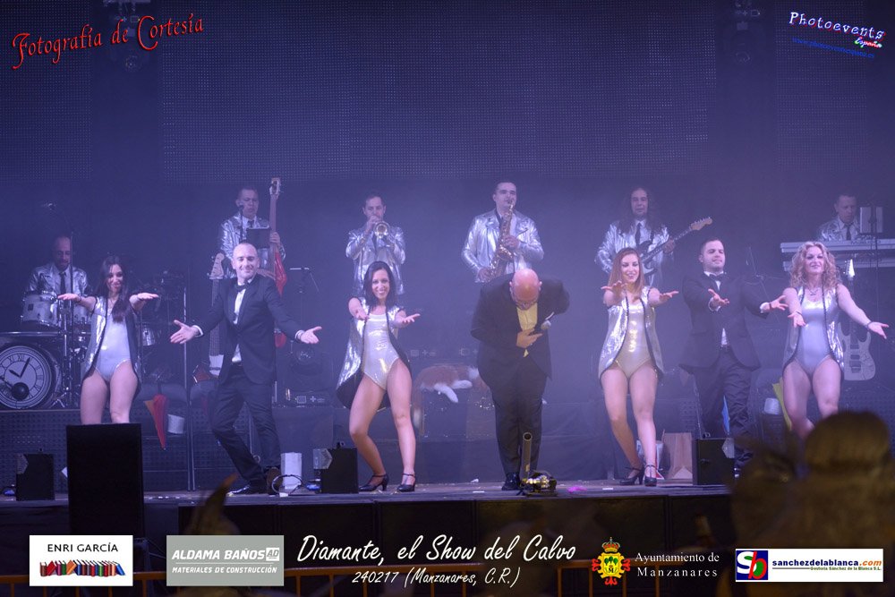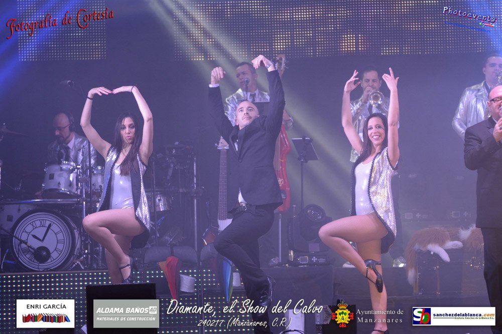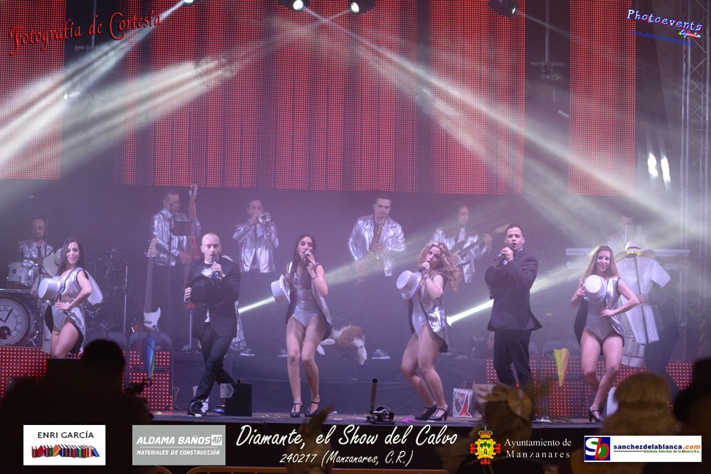 Fotografías realizadas durante parte de la actuación de la orquesta Diamante con el Show del Calvo, haciendo un recorrido sobre las distintas bandas sonoras de peliculas conocidas como La Guerra de las Galaxias, Cantando bajo la lluvia o Pretty Woman entre otras, haciendo bailar y disfrutar a los asistentes. El espectáculo tenía lugar pasado el 24 de febrero en la localidad de Manzanares , (Ciudad Real).