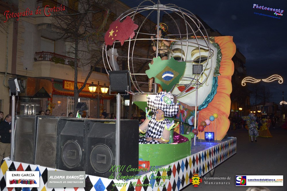 Fotografías realizadas durante el XXVI Concurso Regional de Comparsas y Carrozas, que este año ha alcanzado la participación de 24 grupos y 30 carrozas , con cerca de unos 1700 participantes. El concurso tenia lugar la tarde del lunes 27 de Febrero en la localidad de Manzanares, (Ciudad Real).
