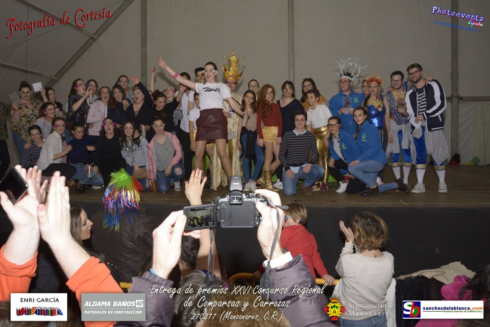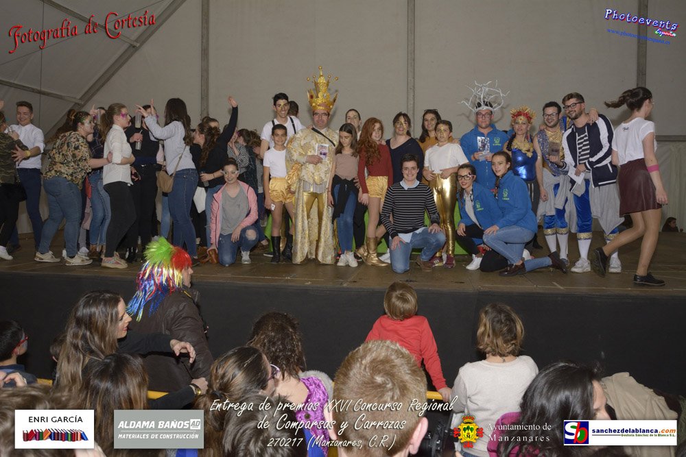 Fotografías realizadas durante la entrega de premios del XXVI Concurso Regional de Comparsas y Carrozas, alcanzando este año un total de 30 carrozas y 24 grupos, poniendo dificil al jurado su elección de ganadores. El concurso tenia lugar la tarde del lunes 27 de Febrero en la carpa municipal de la localidad de Manzanares, (Ciudad Real).
