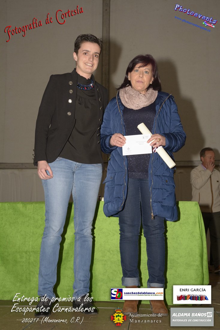 Fotografías realizadas durante la entrega de premios del concurso del Mascarón, que estuvo acompañado tambien por la entrega de premios a los agraciados con los escaparates mejor decorados del Carnaval. El acto tenía lugar el pasado 28 de Febrero en la localidad de Manzanares, (Ciudad Real).