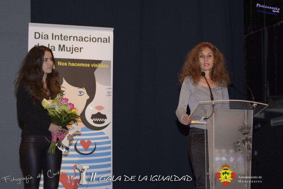 Fotografías realizadas con motivo de la celebración de la II Gala de la Igualdad, donde se han entregado los premios correspondientes a Cristina Camacho Saanedra, Vicente Gigante Sanchez de Pablo, Manuel Samchez-Migallón López de la Rica , Miguel Lorente Acosta y al programa de Televisión Amores que matan (recogiendo el galardón Sonia y su hija, una de las protagonistas del programa y víctimas de violencia de género). El acto tenía lugar el 25 de Marzo, estando enmarcado dentro del amplio program de actividades con motivo de las XXII Jornadas de la mujer, celebradas en Manzanares, Ciudad Real.