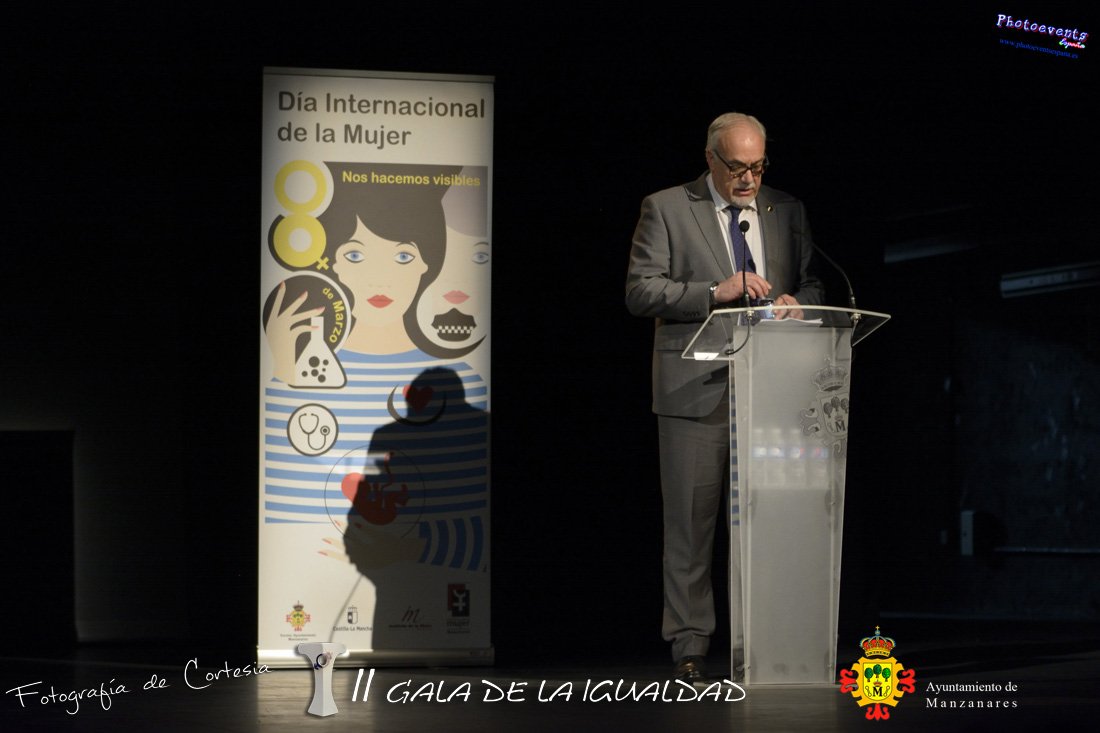 Fotografías realizadas con motivo de la celebración de la II Gala de la Igualdad, donde se han entregado los premios correspondientes a Cristina Camacho Saanedra, Vicente Gigante Sanchez de Pablo, Manuel Samchez-Migallón López de la Rica , Miguel Lorente Acosta y al programa de Televisión Amores que matan (recogiendo el galardón Sonia y su hija, una de las protagonistas del programa y víctimas de violencia de género). El acto tenía lugar el 25 de Marzo, estando enmarcado dentro del amplio program de actividades con motivo de las XXII Jornadas de la mujer, celebradas en Manzanares, Ciudad Real.