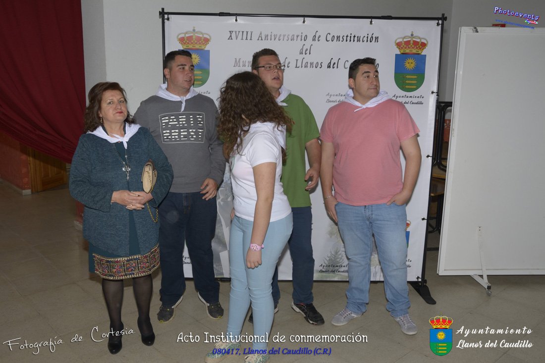 Fotografías realizadas con motivo de la celebración del XVIII aniversario de Constitución del Municipio de Llanos del Caudillo , emotiva gala donde se homenajeo a una de las primeras familias llegadas al municipio, y conocidos como los Yeseros. Tambien hubo cavida para los jovenes que en este año celebran su 18 cumpleaños. El acto tenía lugar el pasado 8 de Abril, estando enmarcado dentro del programa presentado con motivo de dicho aniversario, celebradas en Llanos del Caudillo, Ciudad Real.