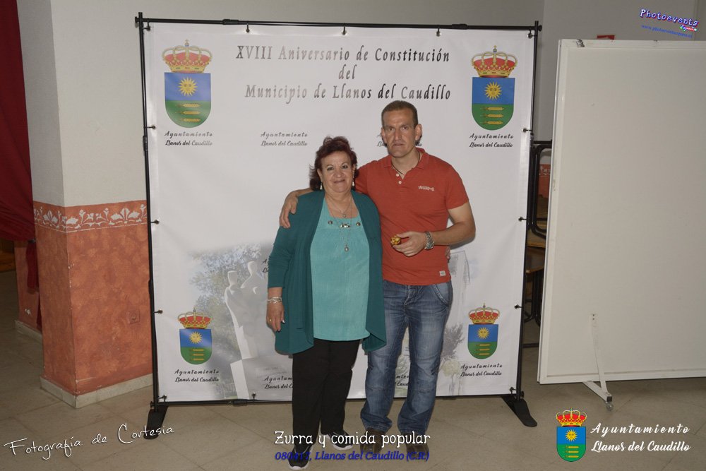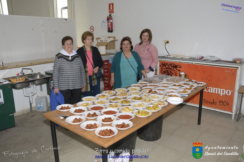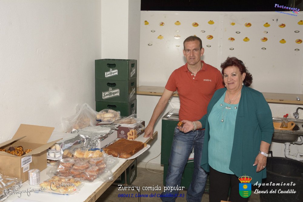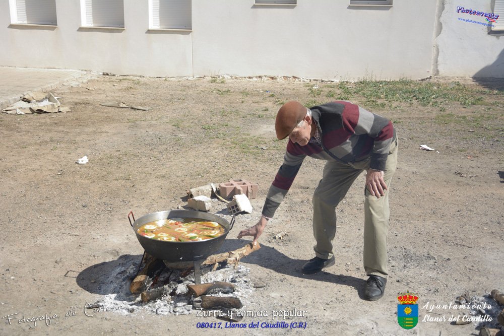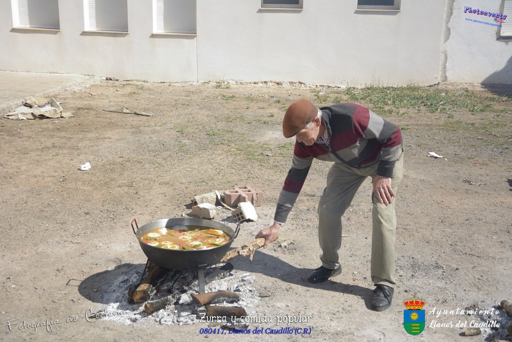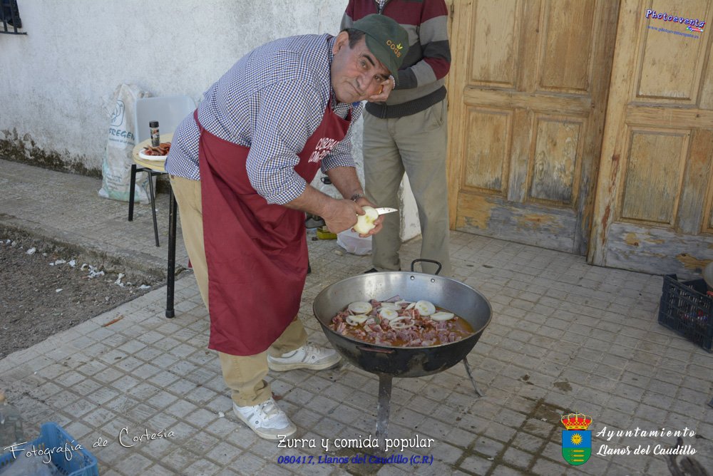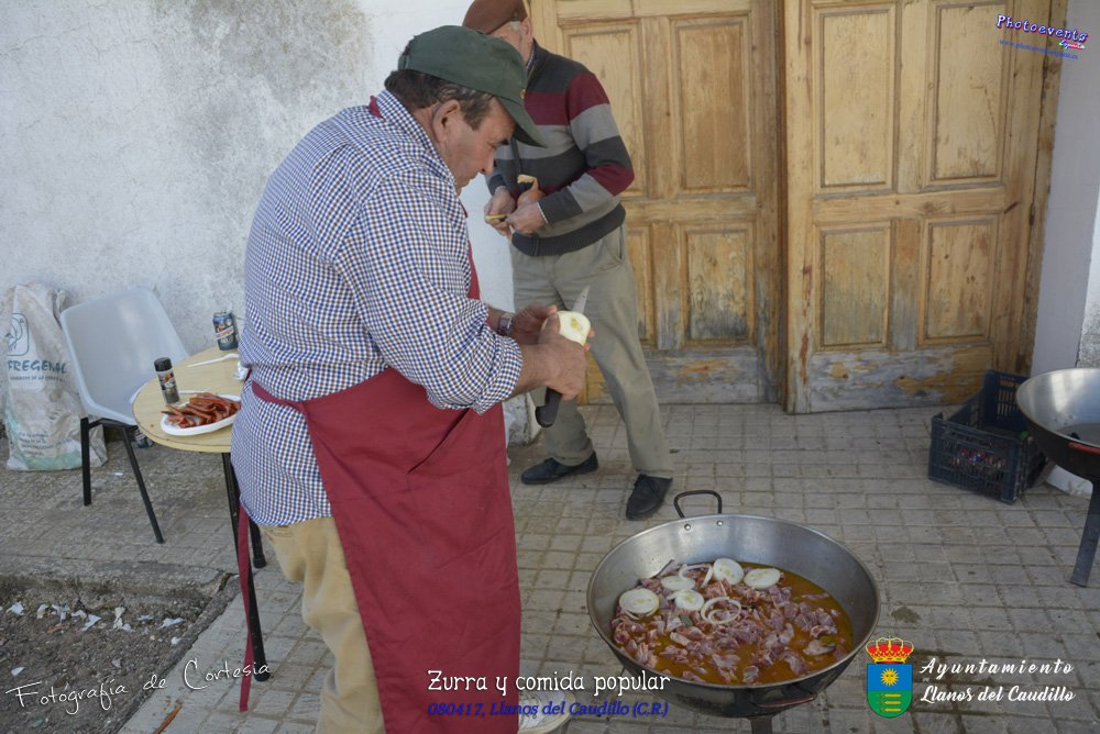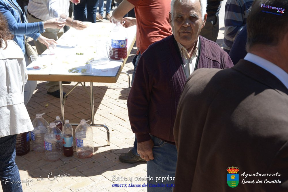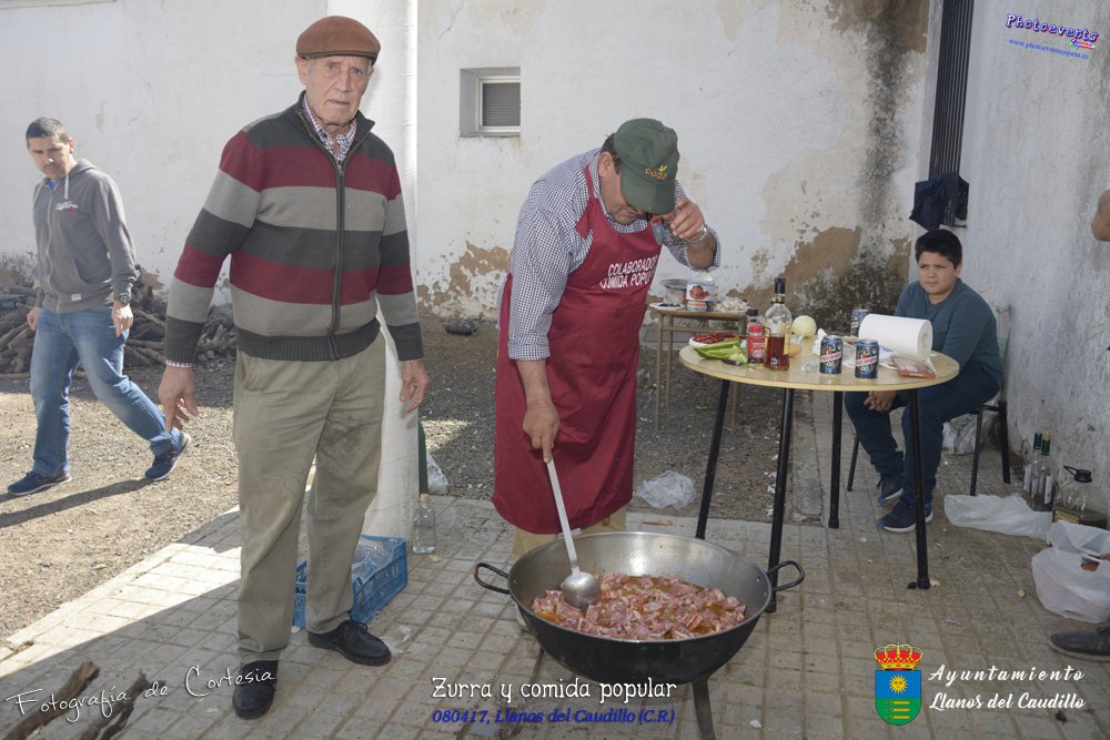 Fotografías realizadas durante la desgustación de Zurra que ha sido realizada por los mayores, y a continuacion se realiza una comida popular con productos realizados por la propia gente del pueblo y que los llevan para ser degustados por todos los asistentes a dicha comida. Tambien se realiza una caldereta de cordero y una gran paella que igualmente es degustada por todos los asistentes, ya sean pequeños o mayores. Dicha desgustación y comida se realizo el día 8 de Abril y está enmarcada dentro del programa presentado con motivo del Aniversario de constitución del Municipio de Llanos del Caudillo, Ciudad Real.