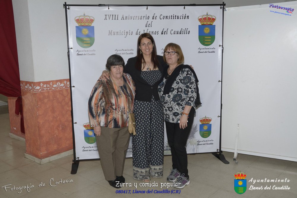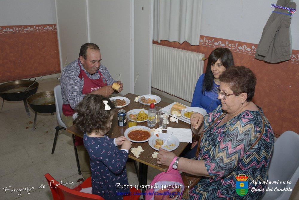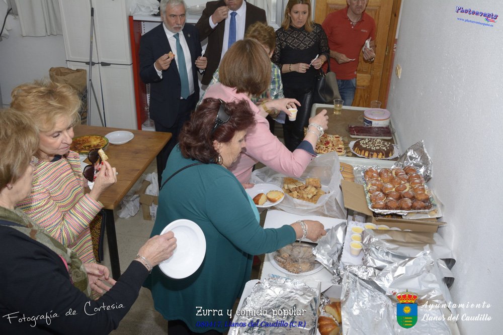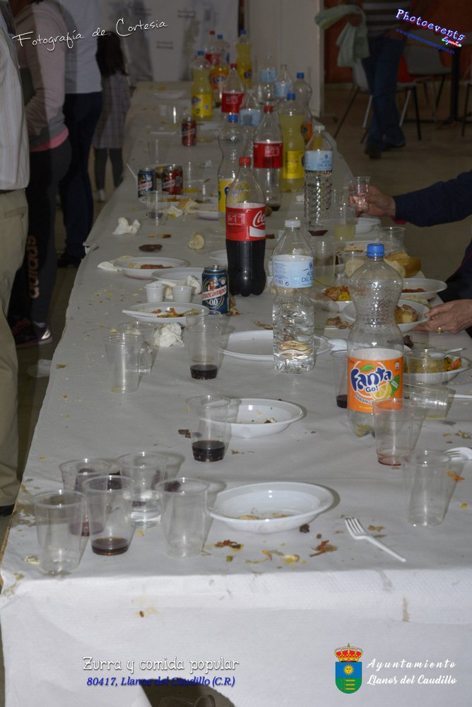 Fotografías realizadas durante la desgustación de Zurra que ha sido realizada por los mayores, y a continuacion se realiza una comida popular con productos realizados por la propia gente del pueblo y que los llevan para ser degustados por todos los asistentes a dicha comida. Tambien se realiza una caldereta de cordero y una gran paella que igualmente es degustada por todos los asistentes, ya sean pequeños o mayores. Dicha desgustación y comida se realizo el día 8 de Abril y está enmarcada dentro del programa presentado con motivo del Aniversario de constitución del Municipio de Llanos del Caudillo, Ciudad Real.