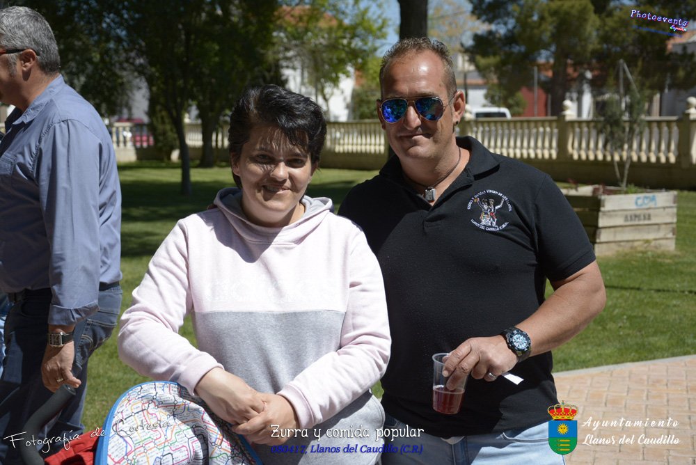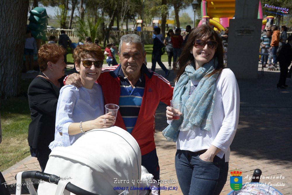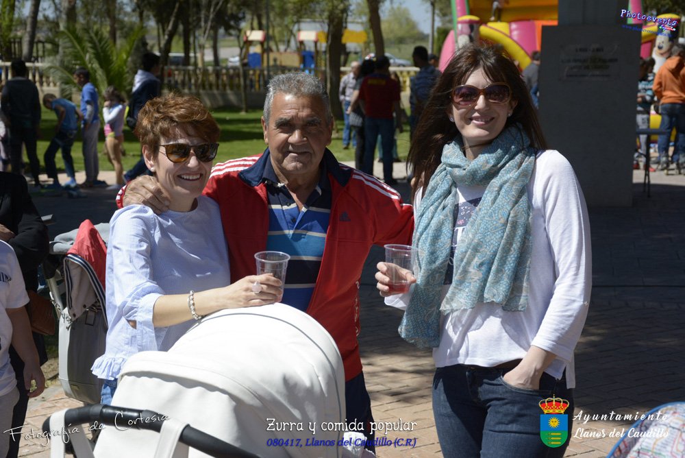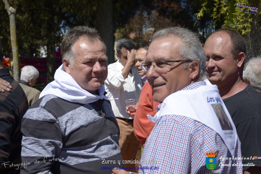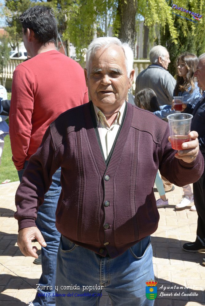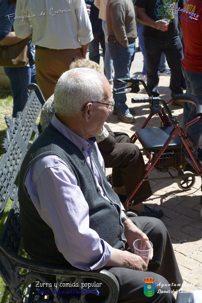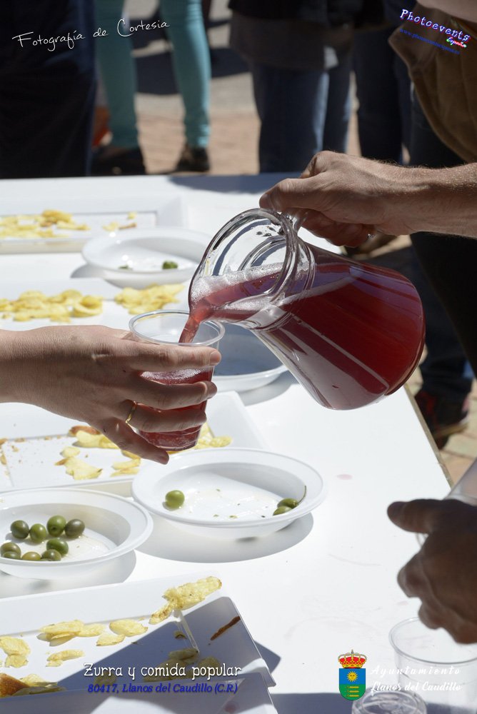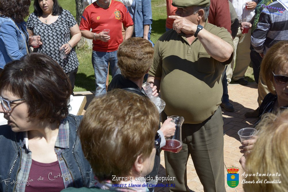 Fotografías realizadas durante la desgustación de Zurra que ha sido realizada por los mayores, y a continuacion se realiza una comida popular con productos realizados por la propia gente del pueblo y que los llevan para ser degustados por todos los asistentes a dicha comida. Tambien se realiza una caldereta de cordero y una gran paella que igualmente es degustada por todos los asistentes, ya sean pequeños o mayores. Dicha desgustación y comida se realizo el día 8 de Abril y está enmarcada dentro del programa presentado con motivo del Aniversario de constitución del Municipio de Llanos del Caudillo, Ciudad Real.