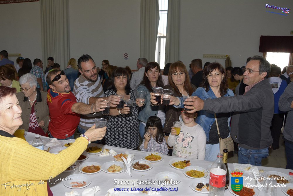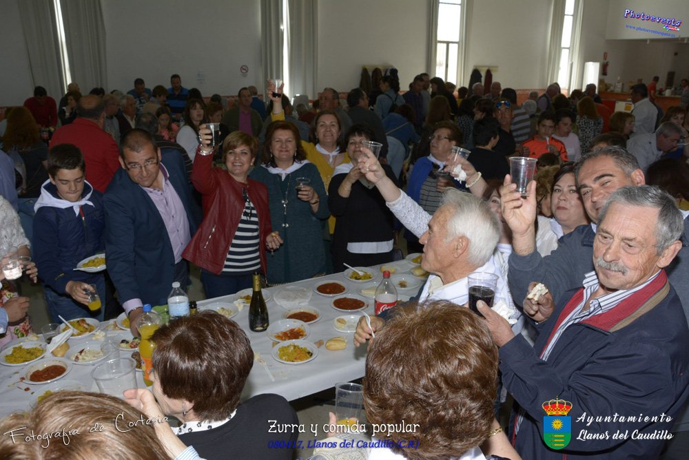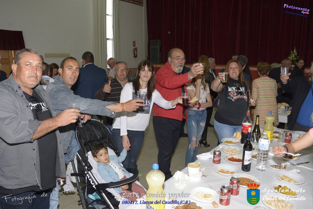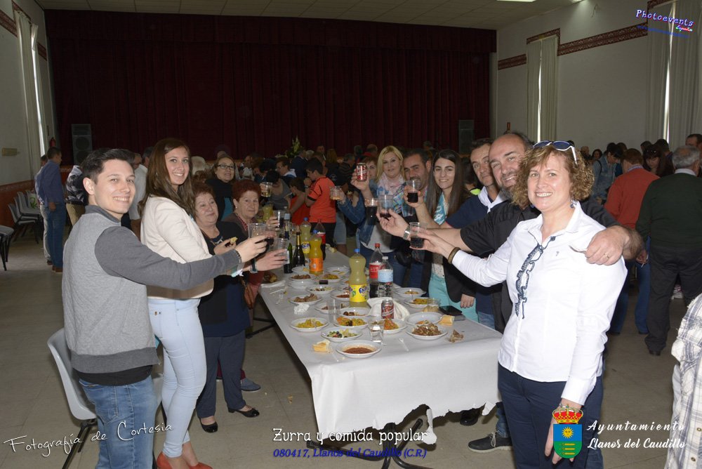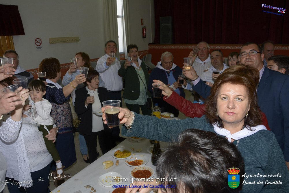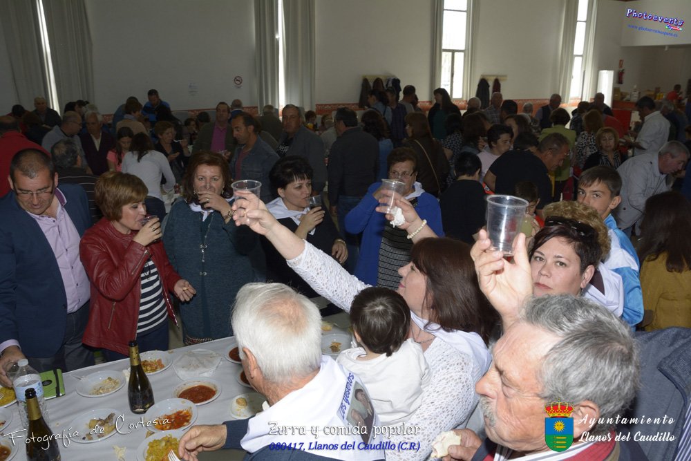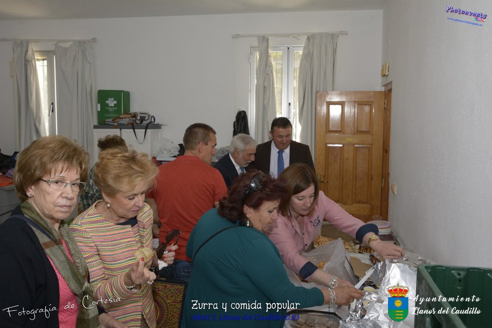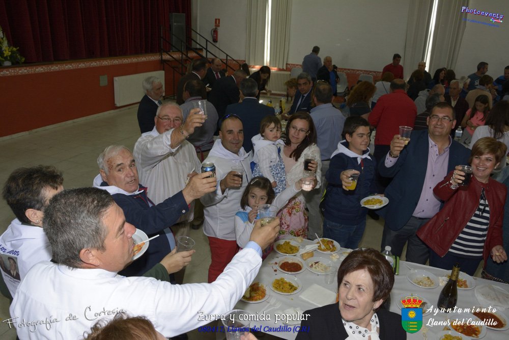 Fotografías realizadas durante la desgustación de Zurra que ha sido realizada por los mayores, y a continuacion se realiza una comida popular con productos realizados por la propia gente del pueblo y que los llevan para ser degustados por todos los asistentes a dicha comida. Tambien se realiza una caldereta de cordero y una gran paella que igualmente es degustada por todos los asistentes, ya sean pequeños o mayores. Dicha desgustación y comida se realizo el día 8 de Abril y está enmarcada dentro del programa presentado con motivo del Aniversario de constitución del Municipio de Llanos del Caudillo, Ciudad Real.