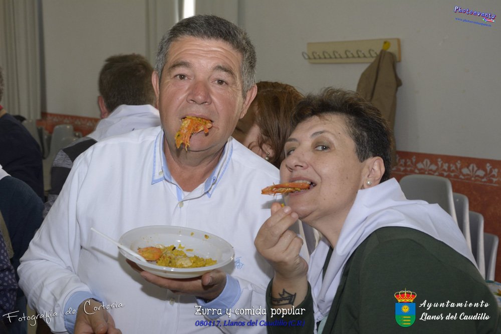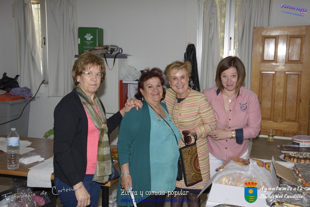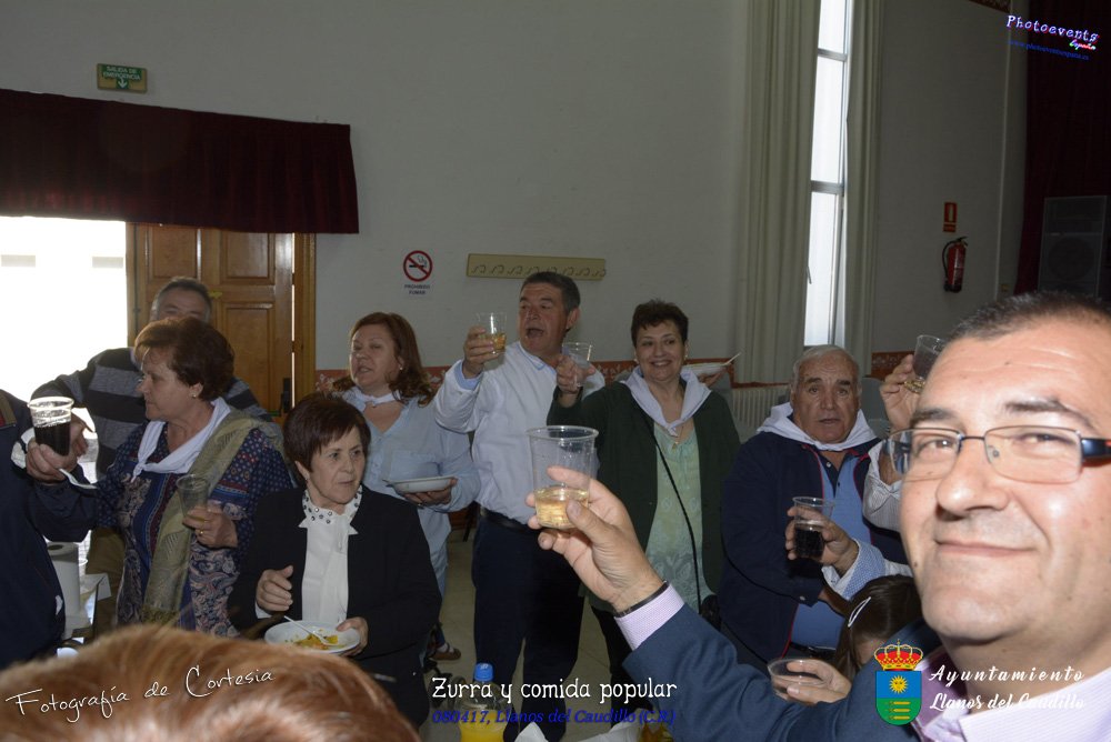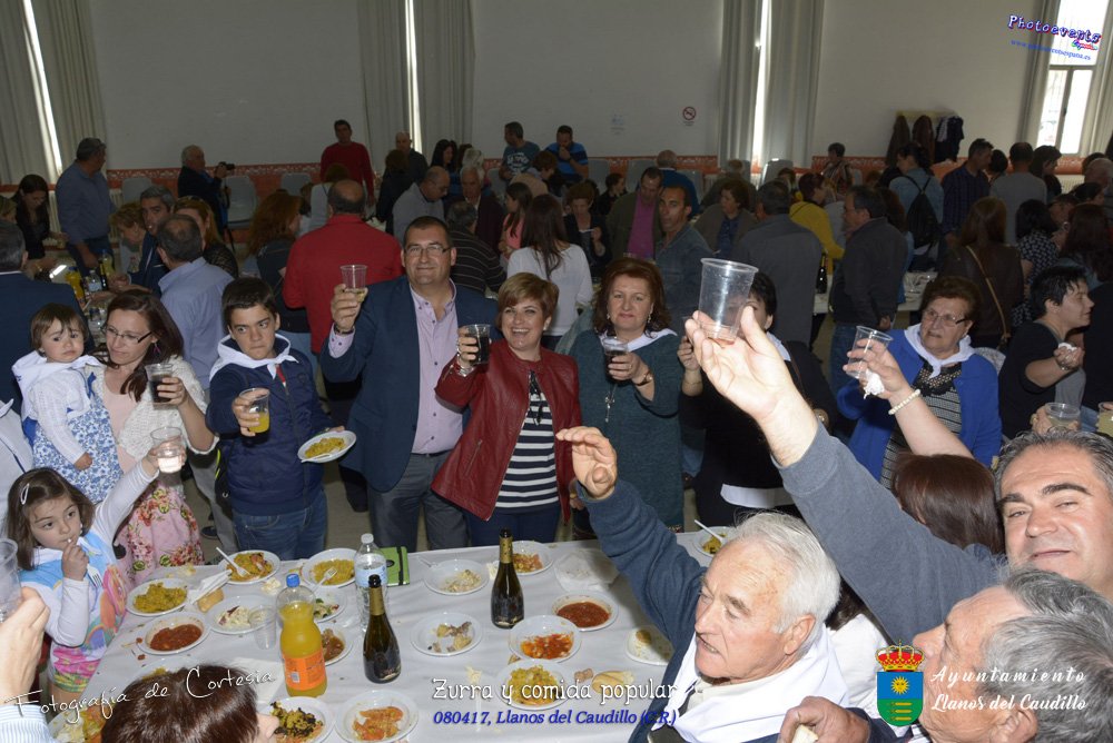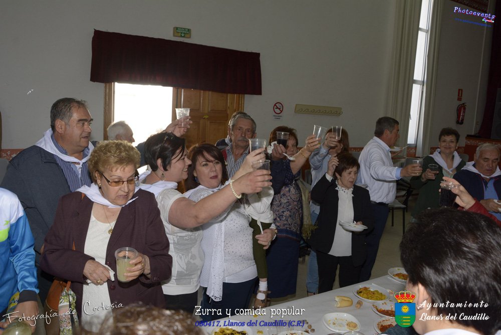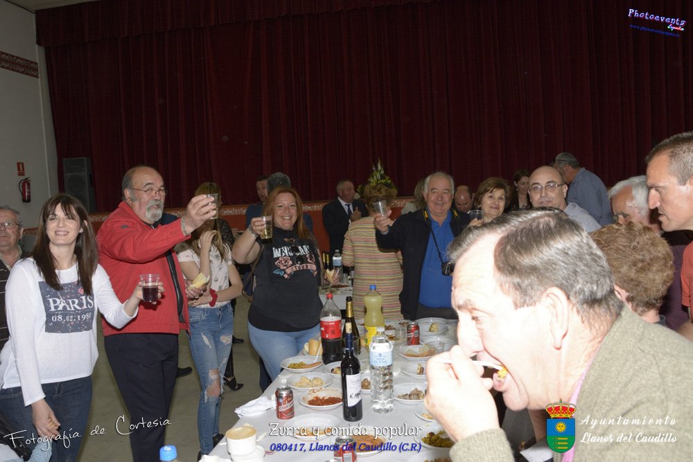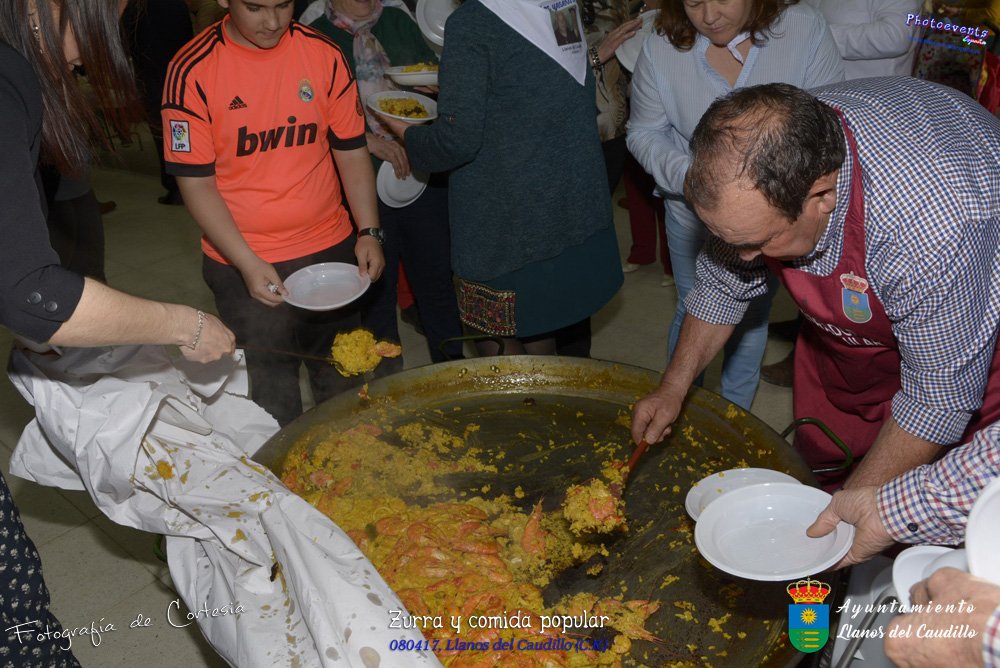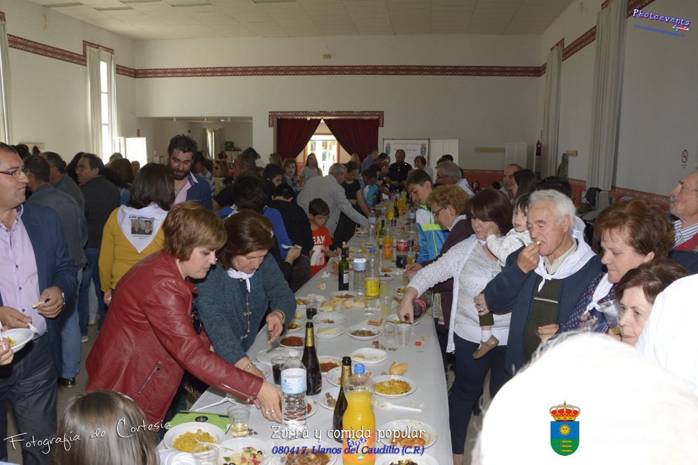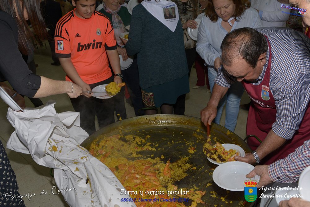 Fotografías realizadas durante la desgustación de Zurra que ha sido realizada por los mayores, y a continuacion se realiza una comida popular con productos realizados por la propia gente del pueblo y que los llevan para ser degustados por todos los asistentes a dicha comida. Tambien se realiza una caldereta de cordero y una gran paella que igualmente es degustada por todos los asistentes, ya sean pequeños o mayores. Dicha desgustación y comida se realizo el día 8 de Abril y está enmarcada dentro del programa presentado con motivo del Aniversario de constitución del Municipio de Llanos del Caudillo, Ciudad Real.