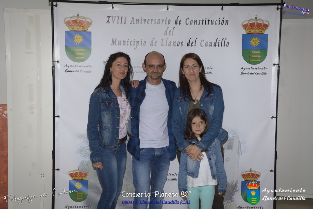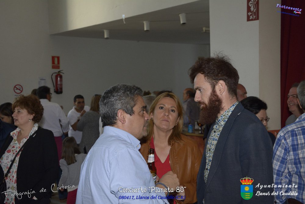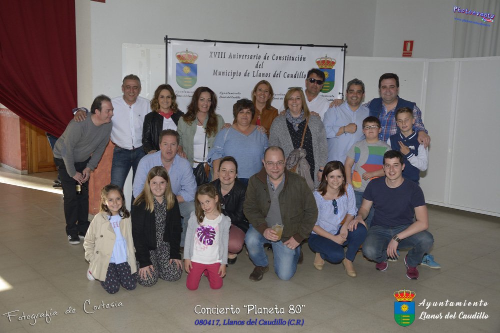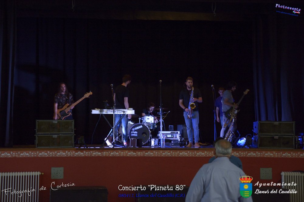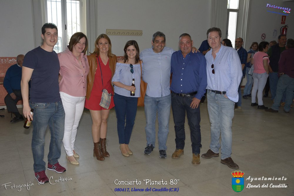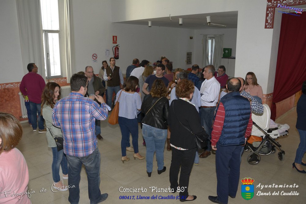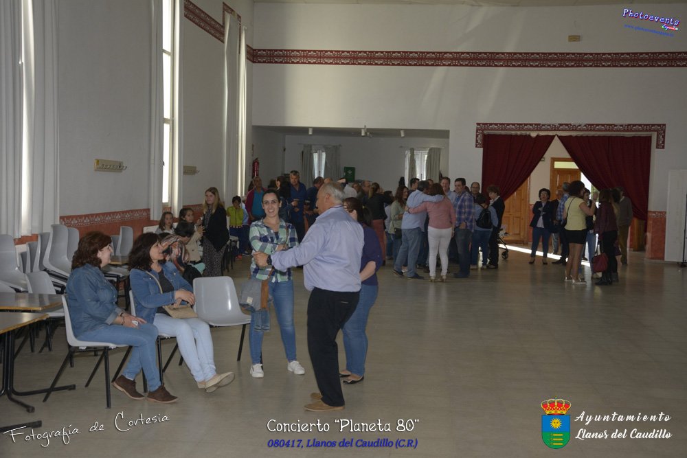 Fotografías realizadas durante el concierto realizado por el grupo Cordobes Planeta 80¨, que realiza un repaso musical Pock -Rock total de la movida de los grupos y canciones que han marcado en epoca de los 80-90, versionando a grupos conocidos como Polis, Queen, EL último de la fila y muchos más. Haciendo bailar a toda la gente que se congrgo en el Salón Cultural pasadas las 7 de la tarde . Dicho concierto se realizo el día 8 de Abril y está enmarcado dentro del programa presentado con motivo del Aniversario de constitución del Municipio de Llanos del Caudillo, Ciudad Real.