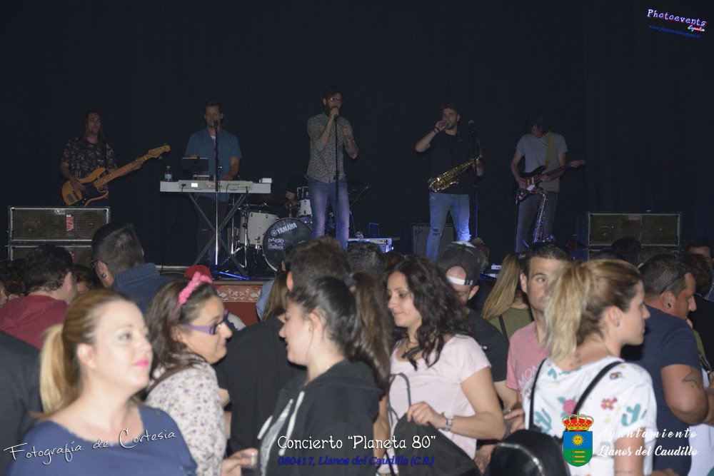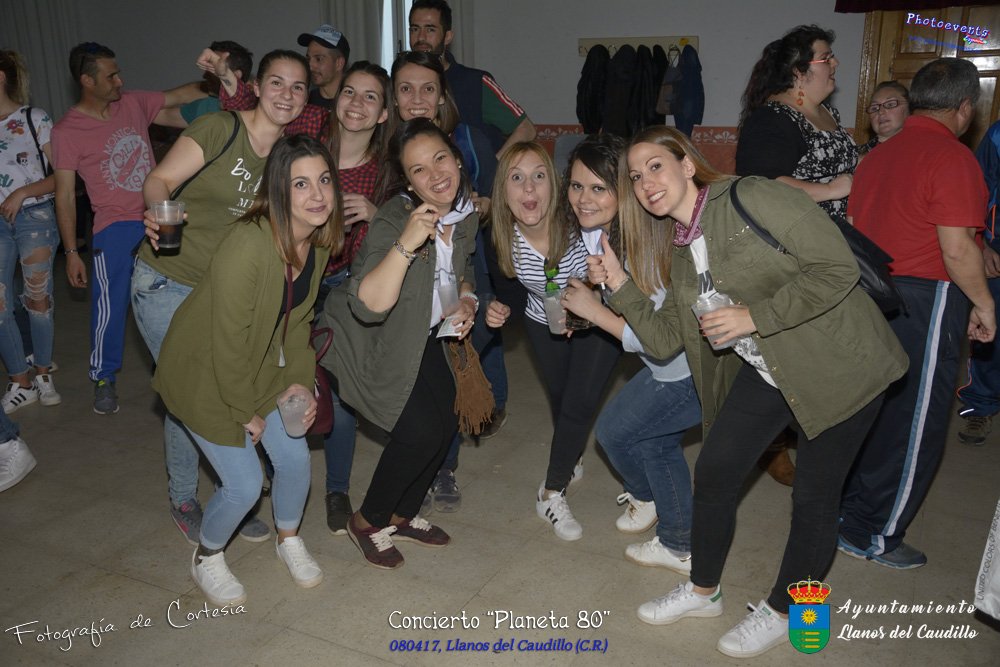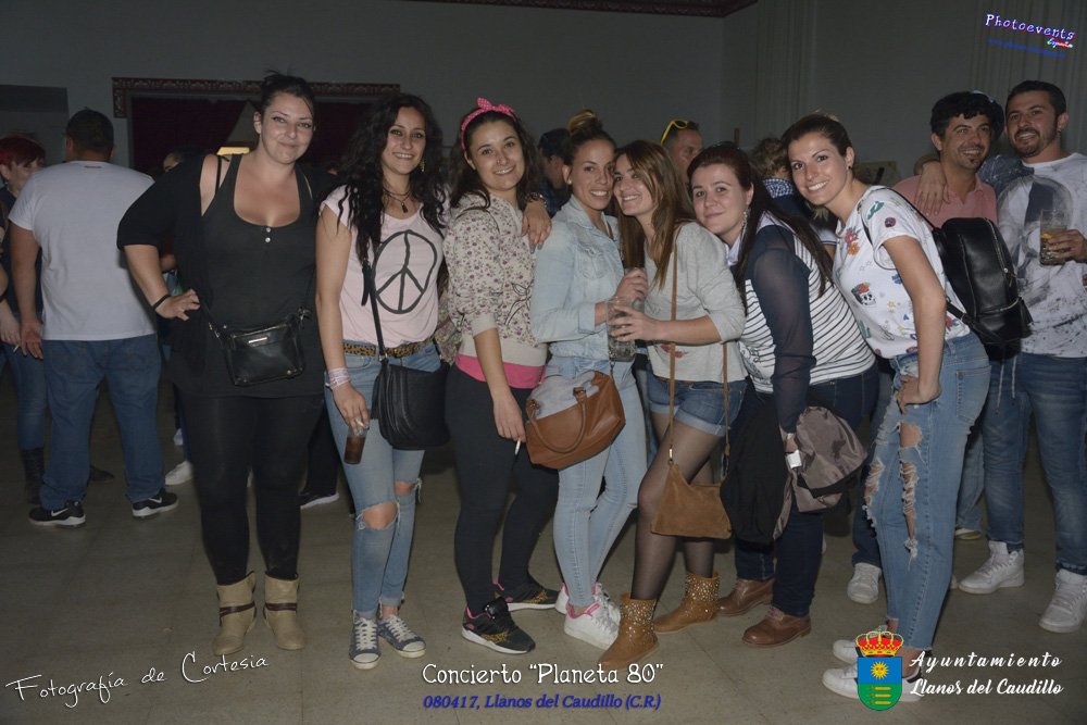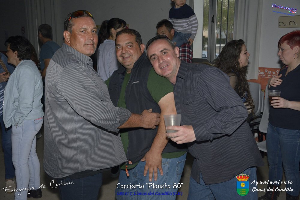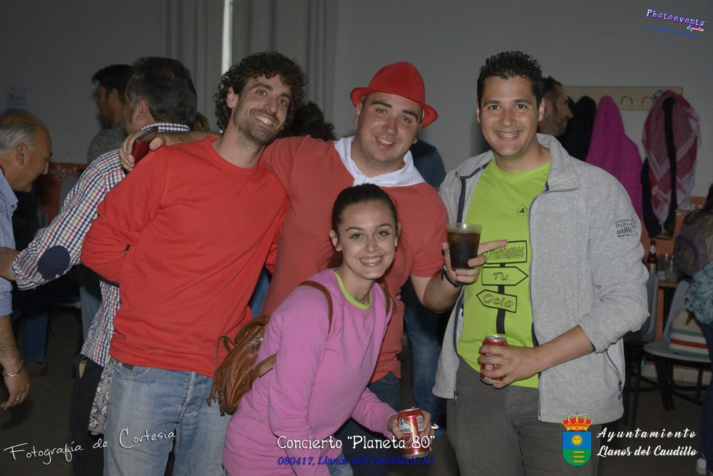 Fotografías realizadas durante el concierto realizado por el grupo Cordobes Planeta 80¨, que realiza un repaso musical Pock -Rock total de la movida de los grupos y canciones que han marcado en epoca de los 80-90, versionando a grupos conocidos como Polis, Queen, EL último de la fila y muchos más. Haciendo bailar a toda la gente que se congrgo en el Salón Cultural pasadas las 7 de la tarde . Dicho concierto se realizo el día 8 de Abril y está enmarcado dentro del programa presentado con motivo del Aniversario de constitución del Municipio de Llanos del Caudillo, Ciudad Real.