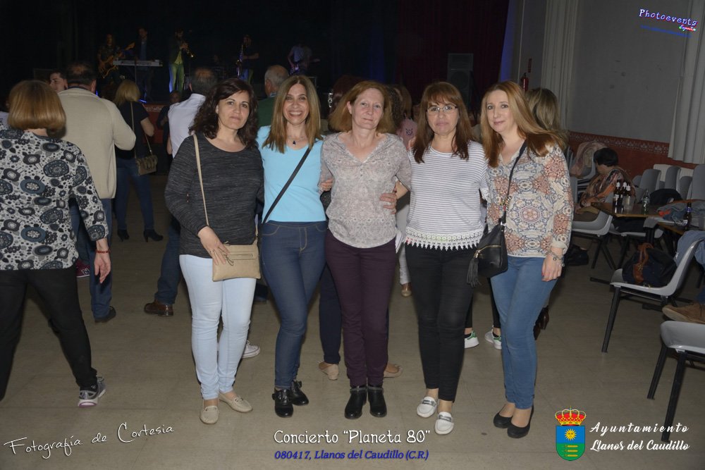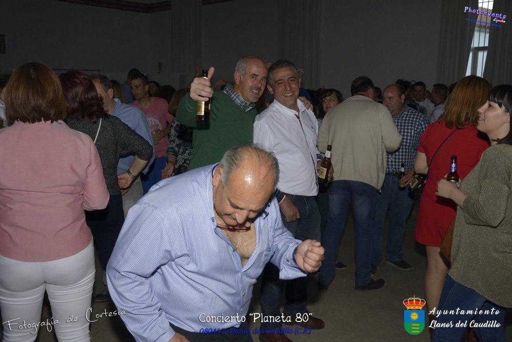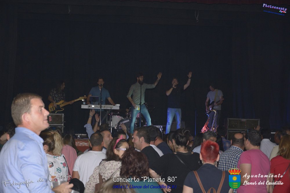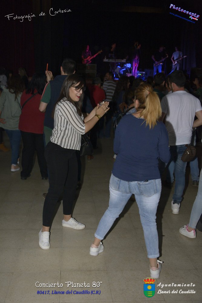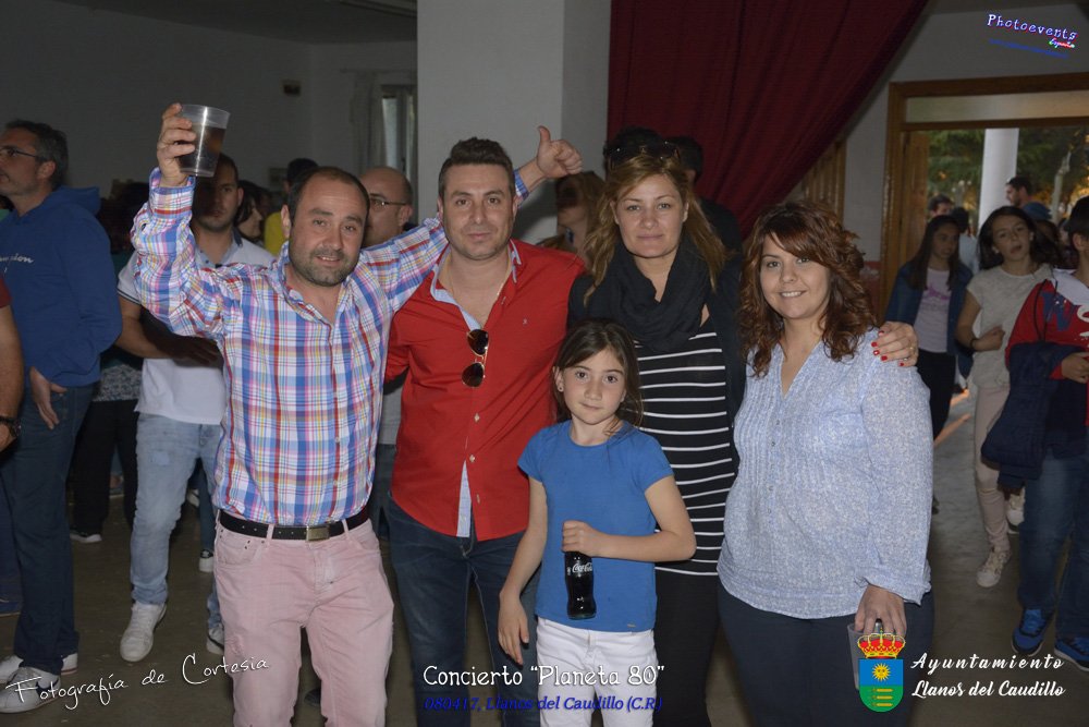 Fotografías realizadas durante el concierto realizado por el grupo Cordobes Planeta 80¨, que realiza un repaso musical Pock -Rock total de la movida de los grupos y canciones que han marcado en epoca de los 80-90, versionando a grupos conocidos como Polis, Queen, EL último de la fila y muchos más. Haciendo bailar a toda la gente que se congrgo en el Salón Cultural pasadas las 7 de la tarde . Dicho concierto se realizo el día 8 de Abril y está enmarcado dentro del programa presentado con motivo del Aniversario de constitución del Municipio de Llanos del Caudillo, Ciudad Real.