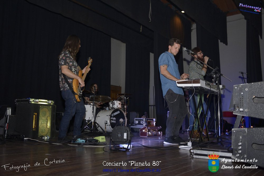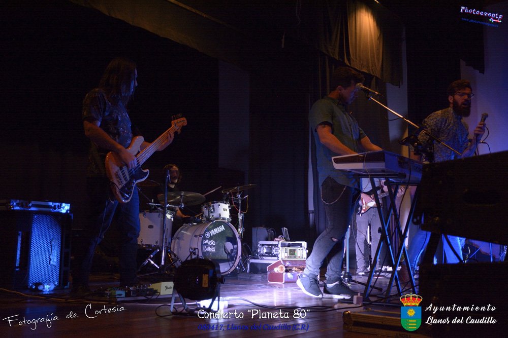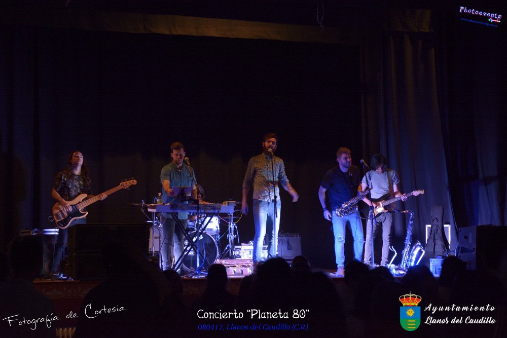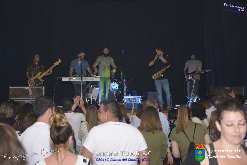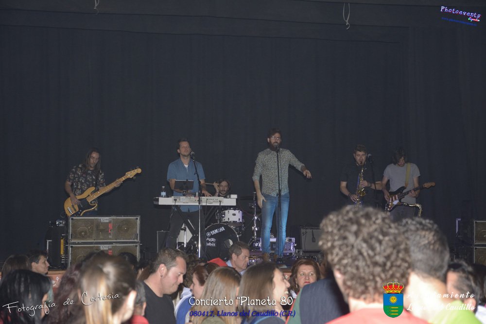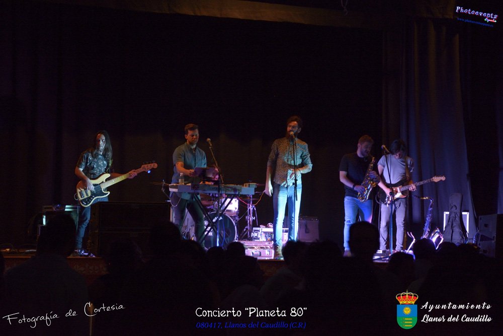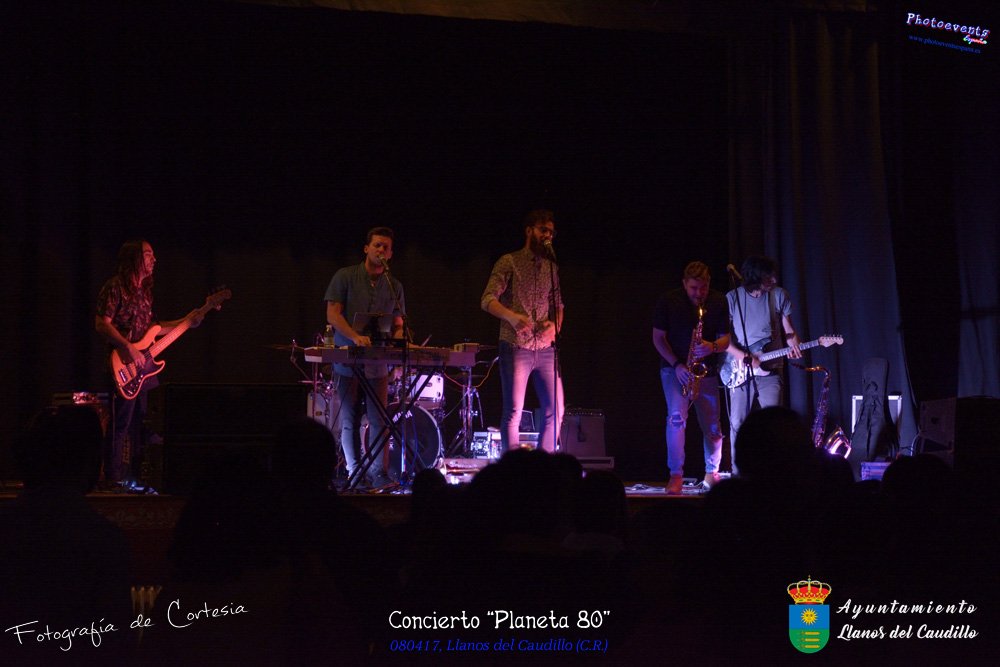 Fotografías realizadas durante el concierto realizado por el grupo Cordobes Planeta 80¨, que realiza un repaso musical Pock -Rock total de la movida de los grupos y canciones que han marcado en epoca de los 80-90, versionando a grupos conocidos como Polis, Queen, EL último de la fila y muchos más. Haciendo bailar a toda la gente que se congrgo en el Salón Cultural pasadas las 7 de la tarde . Dicho concierto se realizo el día 8 de Abril y está enmarcado dentro del programa presentado con motivo del Aniversario de constitución del Municipio de Llanos del Caudillo, Ciudad Real.
