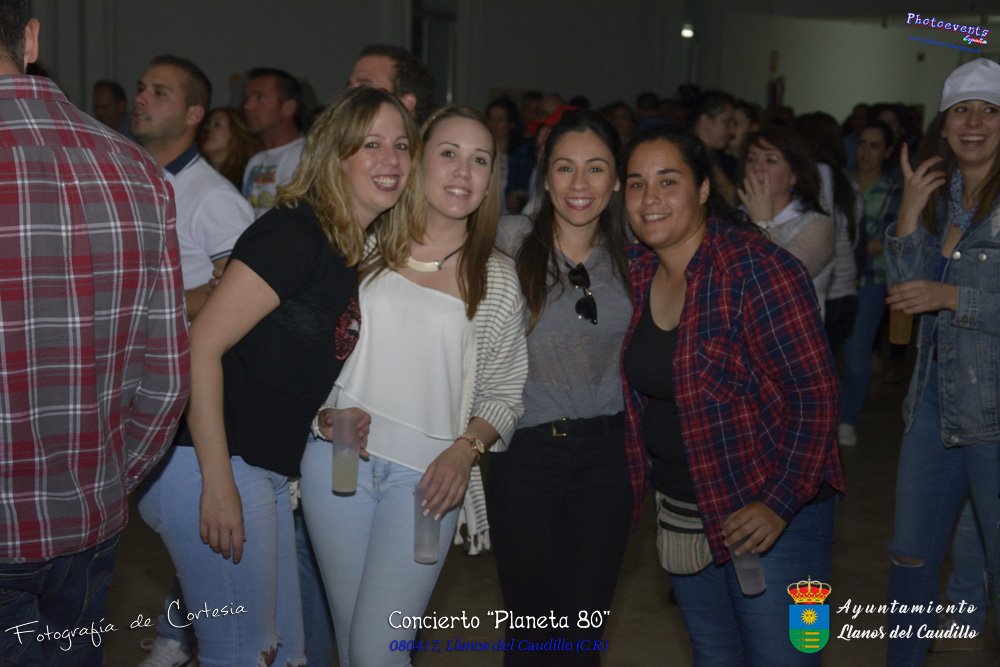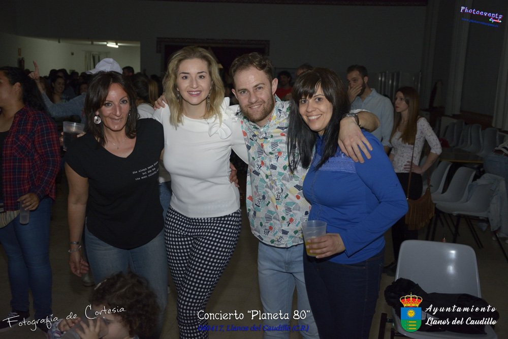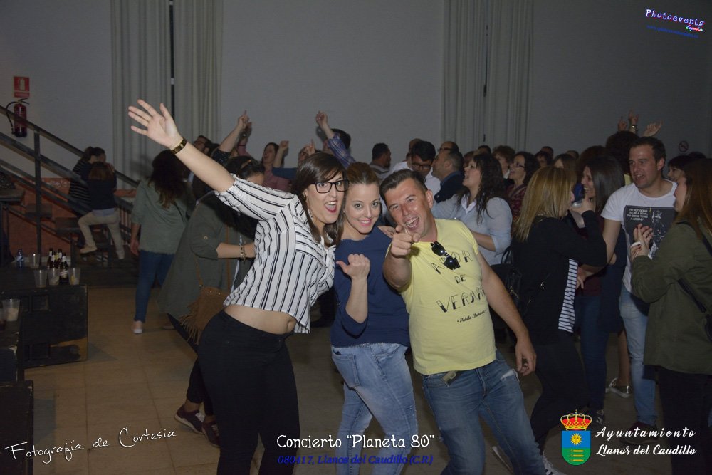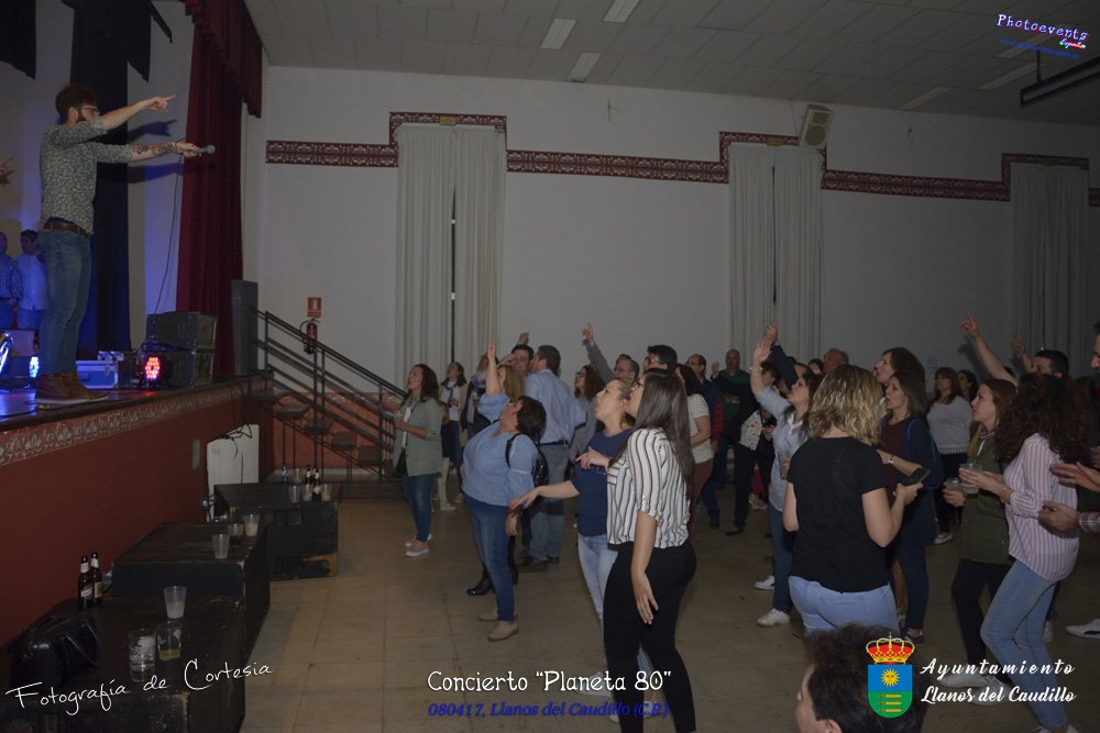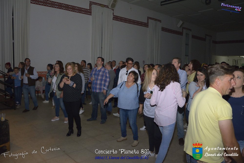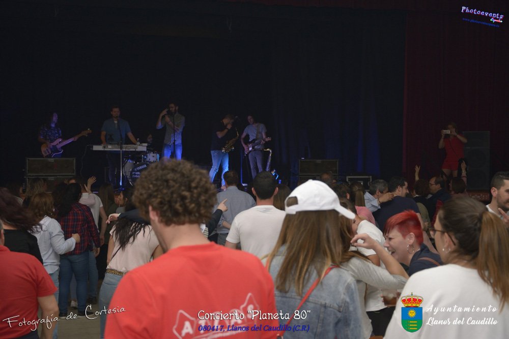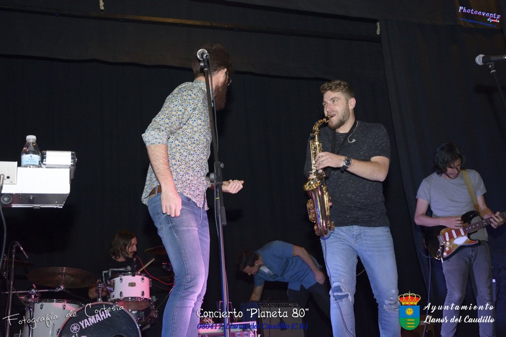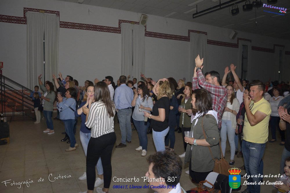 Fotografías realizadas durante el concierto realizado por el grupo Cordobes Planeta 80¨, que realiza un repaso musical Pock -Rock total de la movida de los grupos y canciones que han marcado en epoca de los 80-90, versionando a grupos conocidos como Polis, Queen, EL último de la fila y muchos más. Haciendo bailar a toda la gente que se congrgo en el Salón Cultural pasadas las 7 de la tarde . Dicho concierto se realizo el día 8 de Abril y está enmarcado dentro del programa presentado con motivo del Aniversario de constitución del Municipio de Llanos del Caudillo, Ciudad Real.